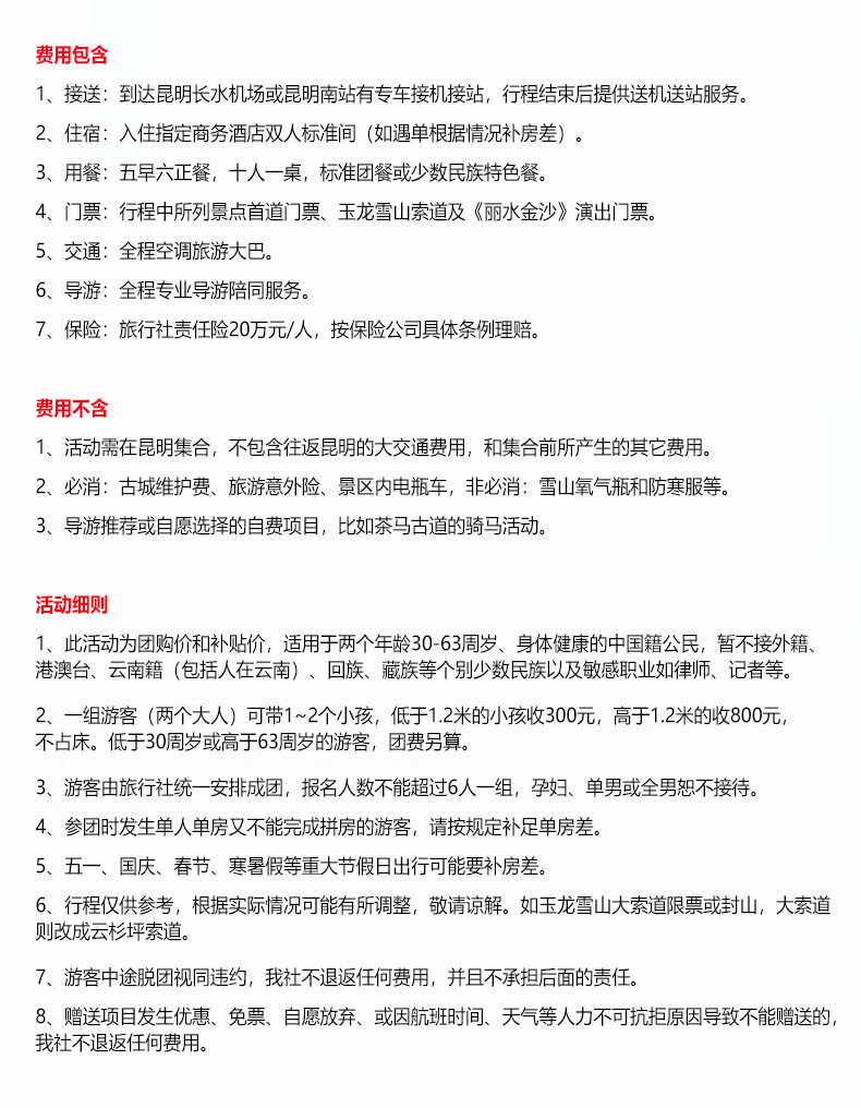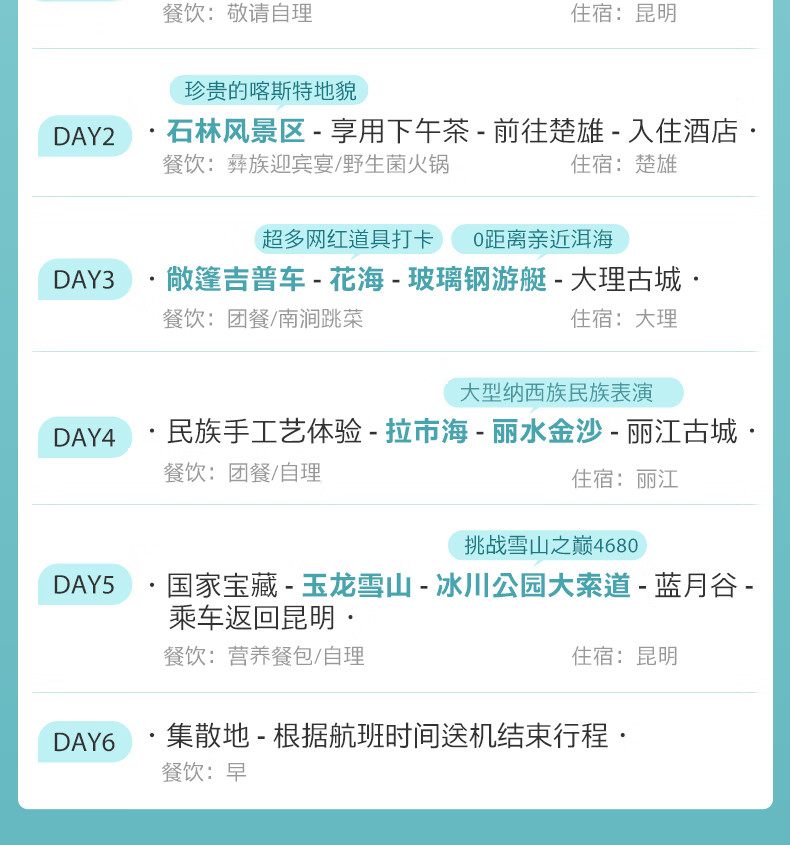 【超值双人价】云南旅游 昆明大理丽江6天5晚豪华双人跟团游 玉龙雪山 蓝月谷5 豪华双人游