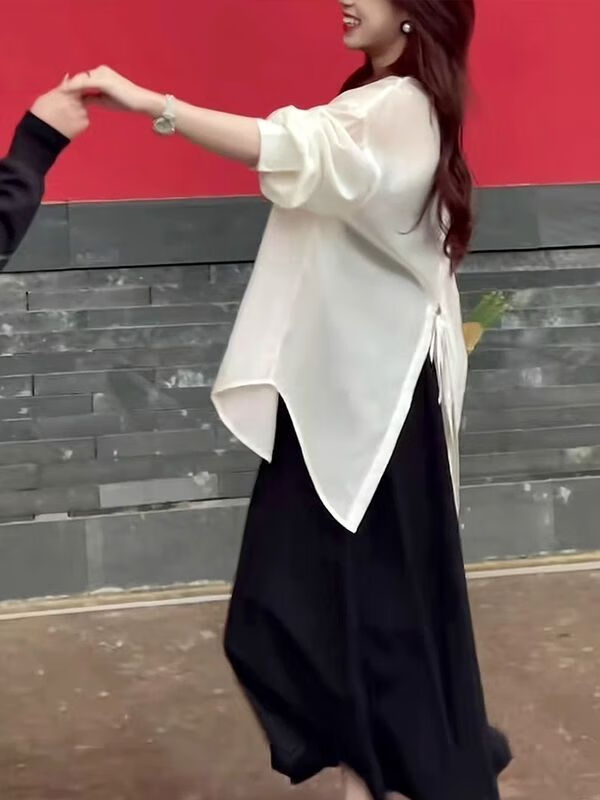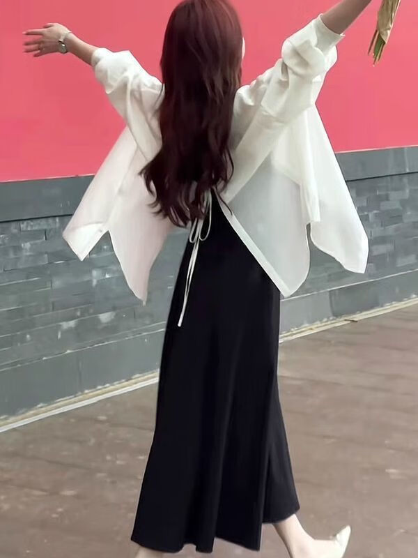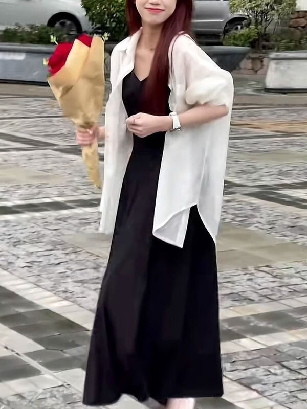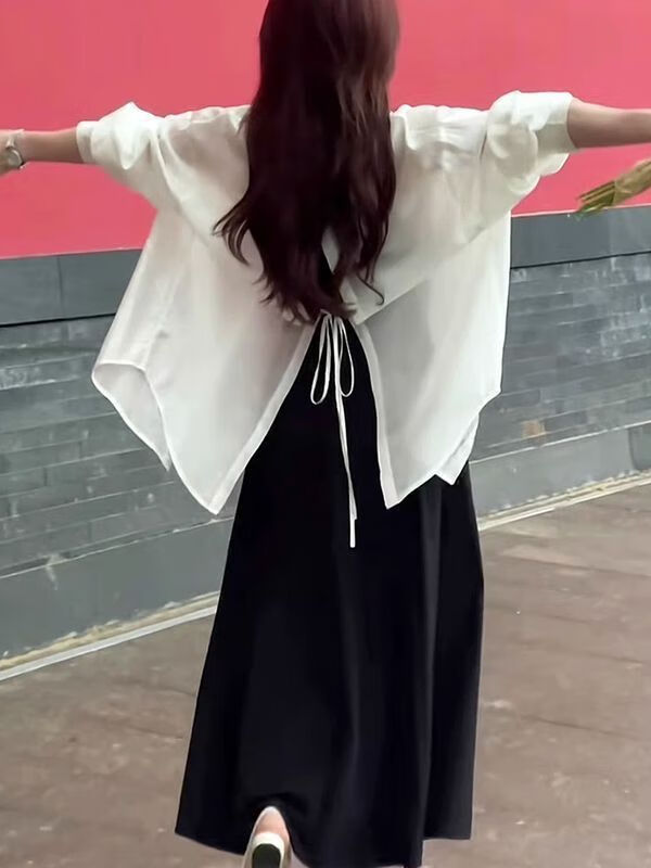 【优选好物】时尚休闲宽松雪纺防晒衣衬衫女夏新款配裙子外搭披肩 白色 S
