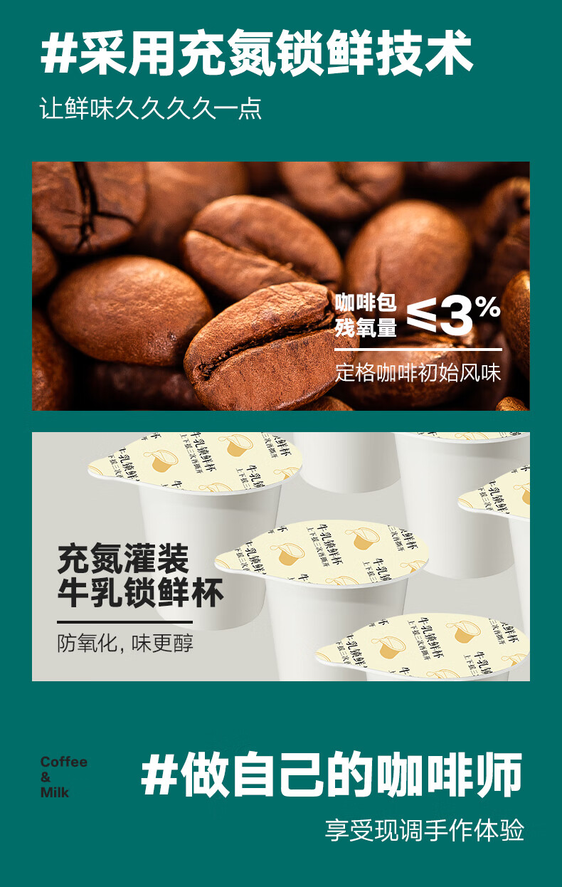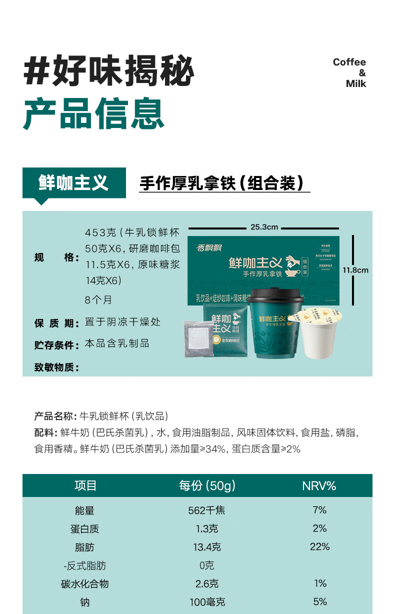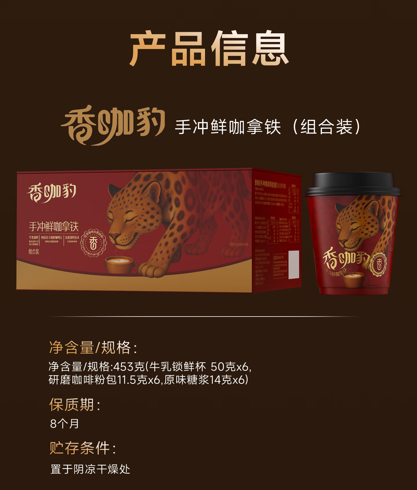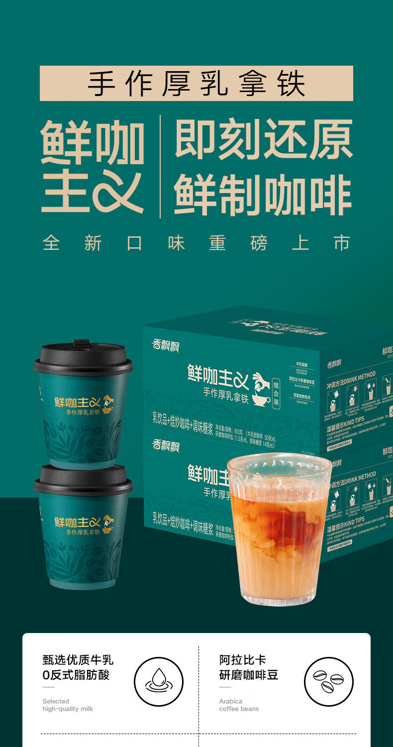 香飘飘鲜咖主义手作厚乳拿铁阿拉比卡咖啡豆0反式浓郁醇香牛乳礼盒453g 手冲鲜咖拿铁1箱(6杯)