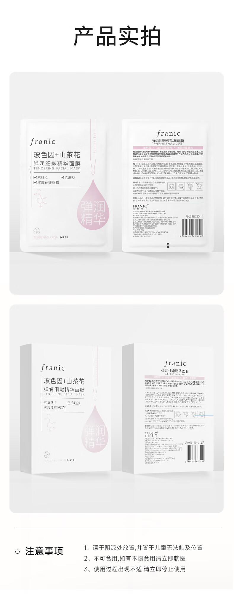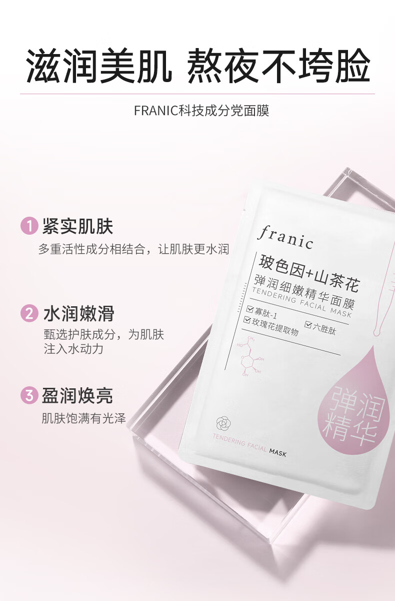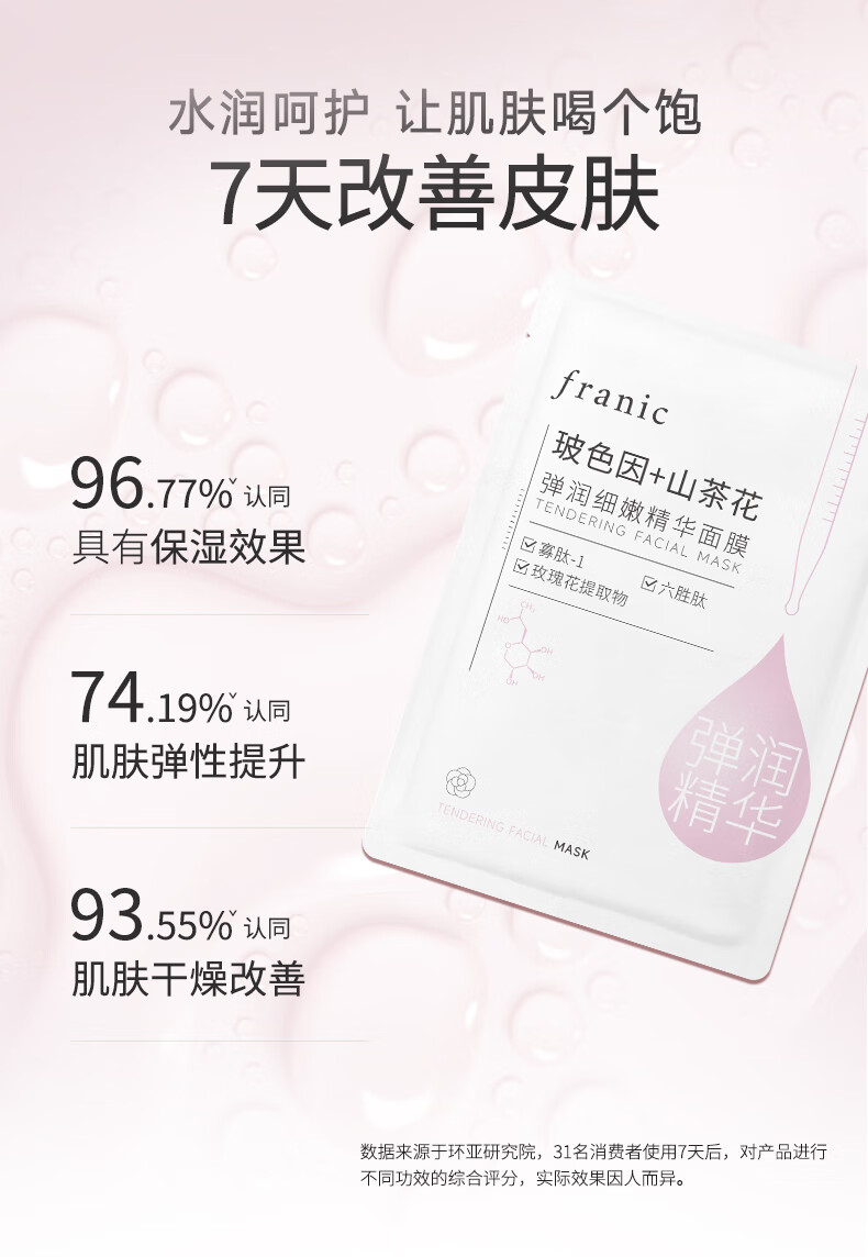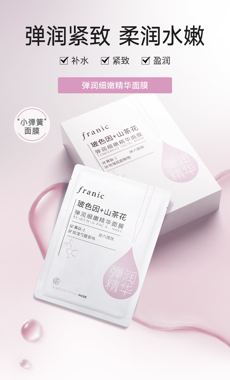法兰琳卡玻色因山茶花弹润细嫩精华面膜女补水保湿紧致出游季 弹润细嫩面膜10片