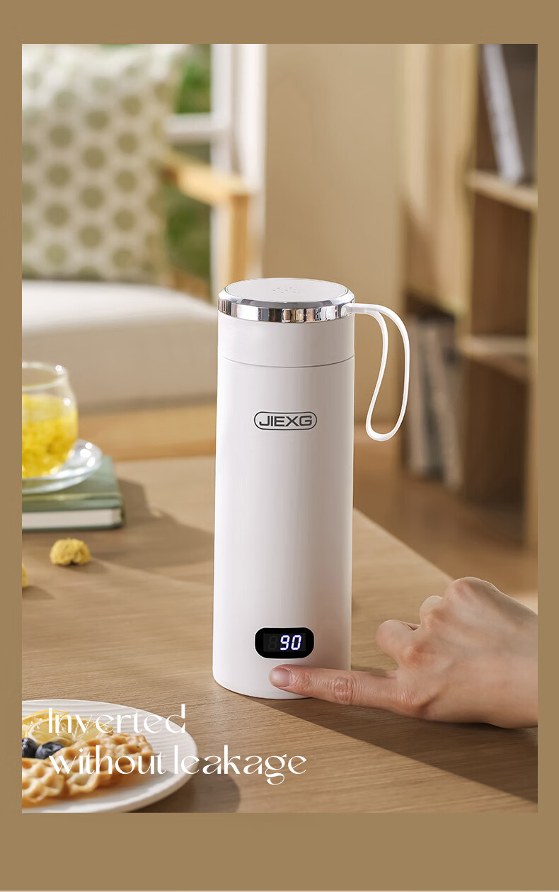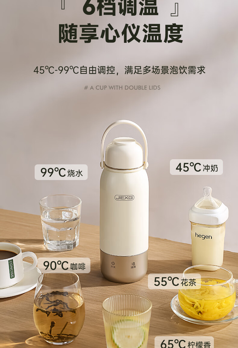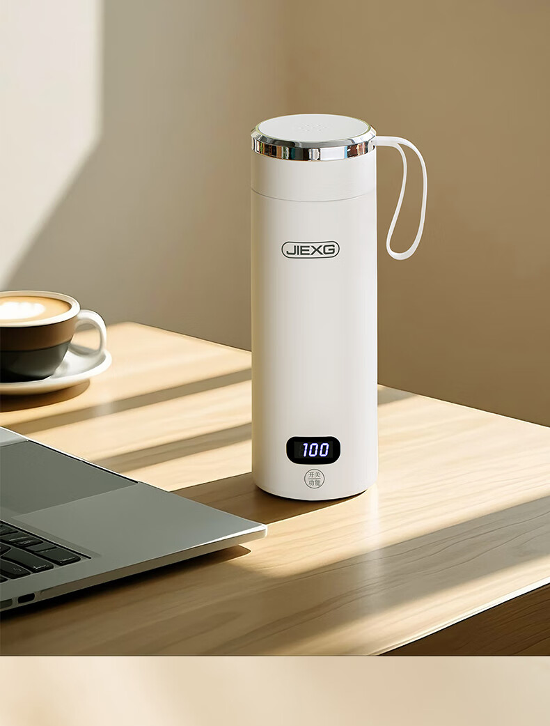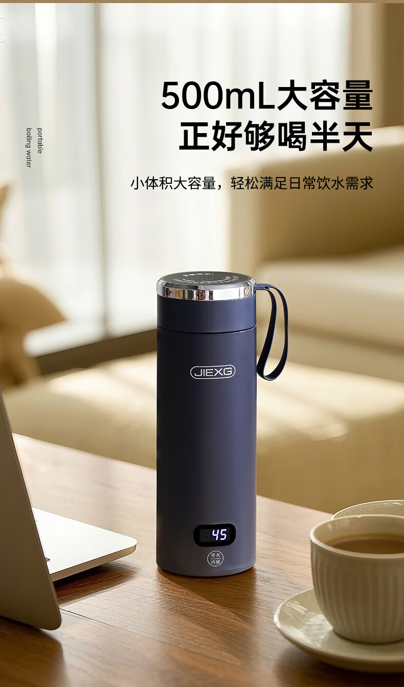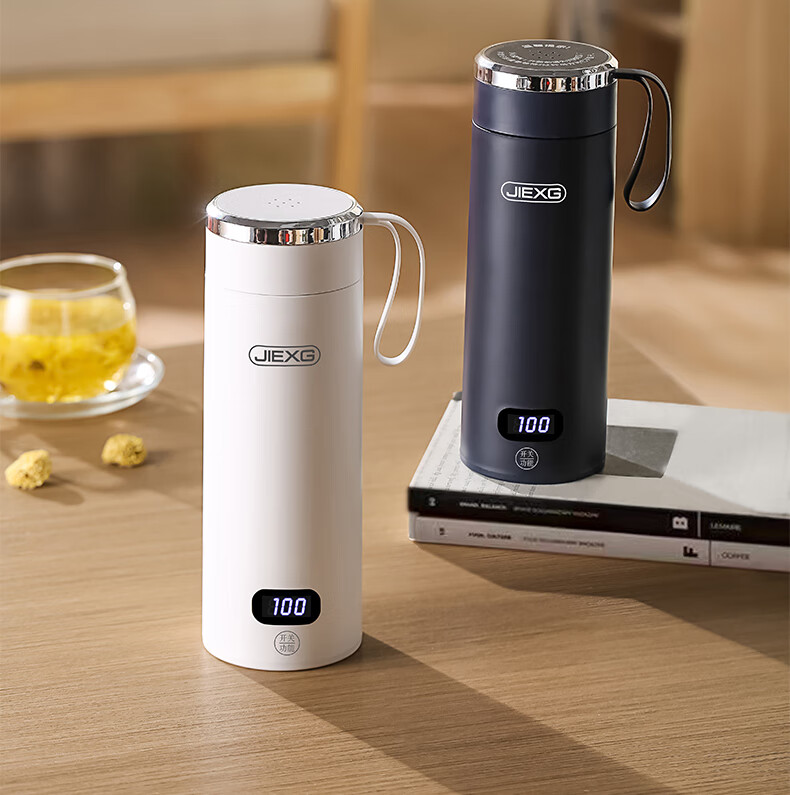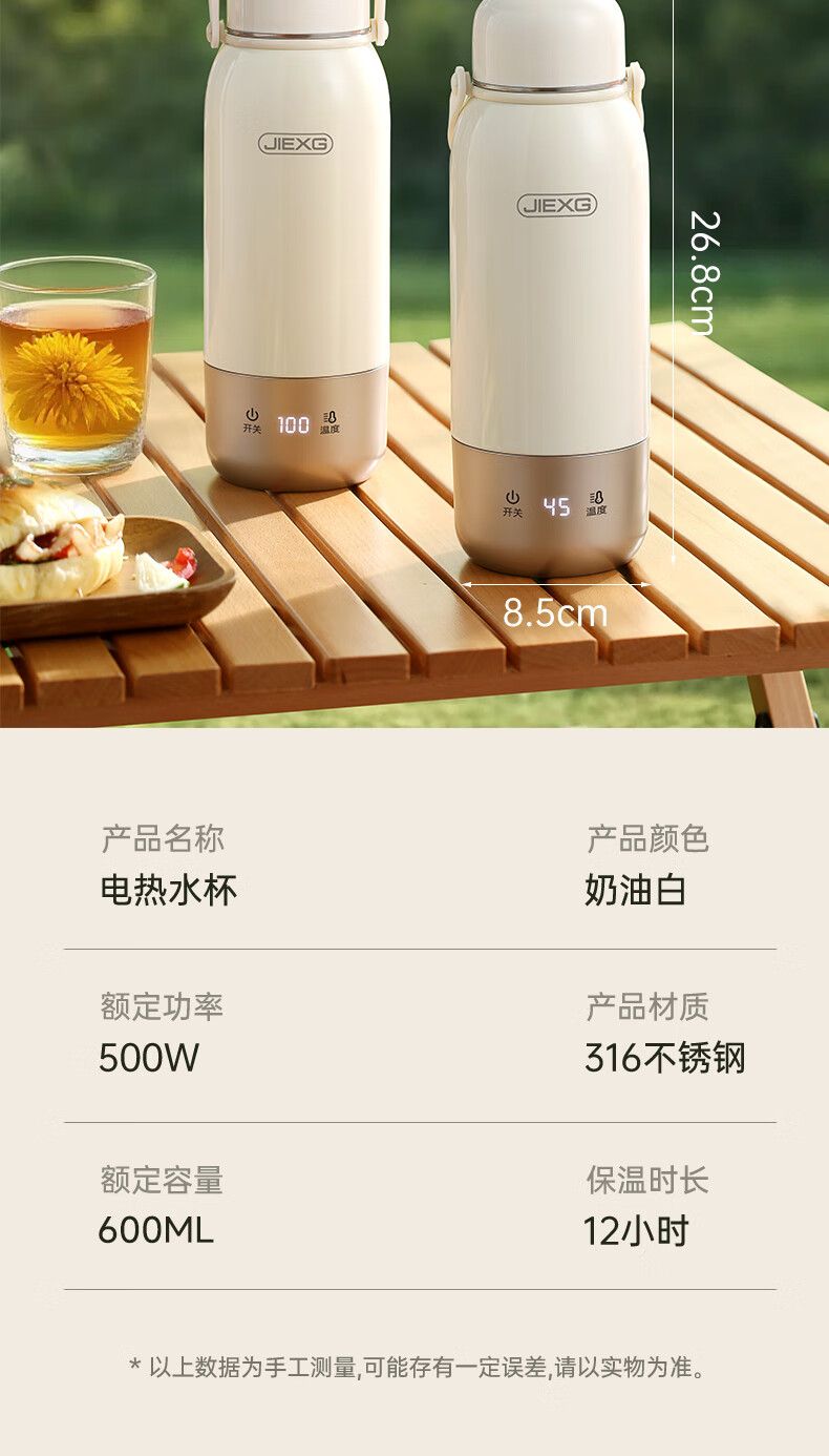 JIEXG德国烧水杯电热水杯 便携式烧水壶旅行加热水杯电热水壶户外烧水壶恒温保温加热杯 0.6L 【升级真空保温保冷】六档调温+316内胆