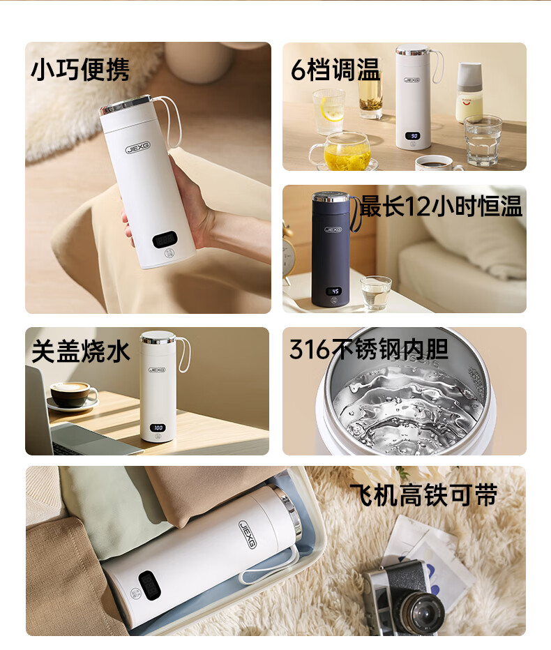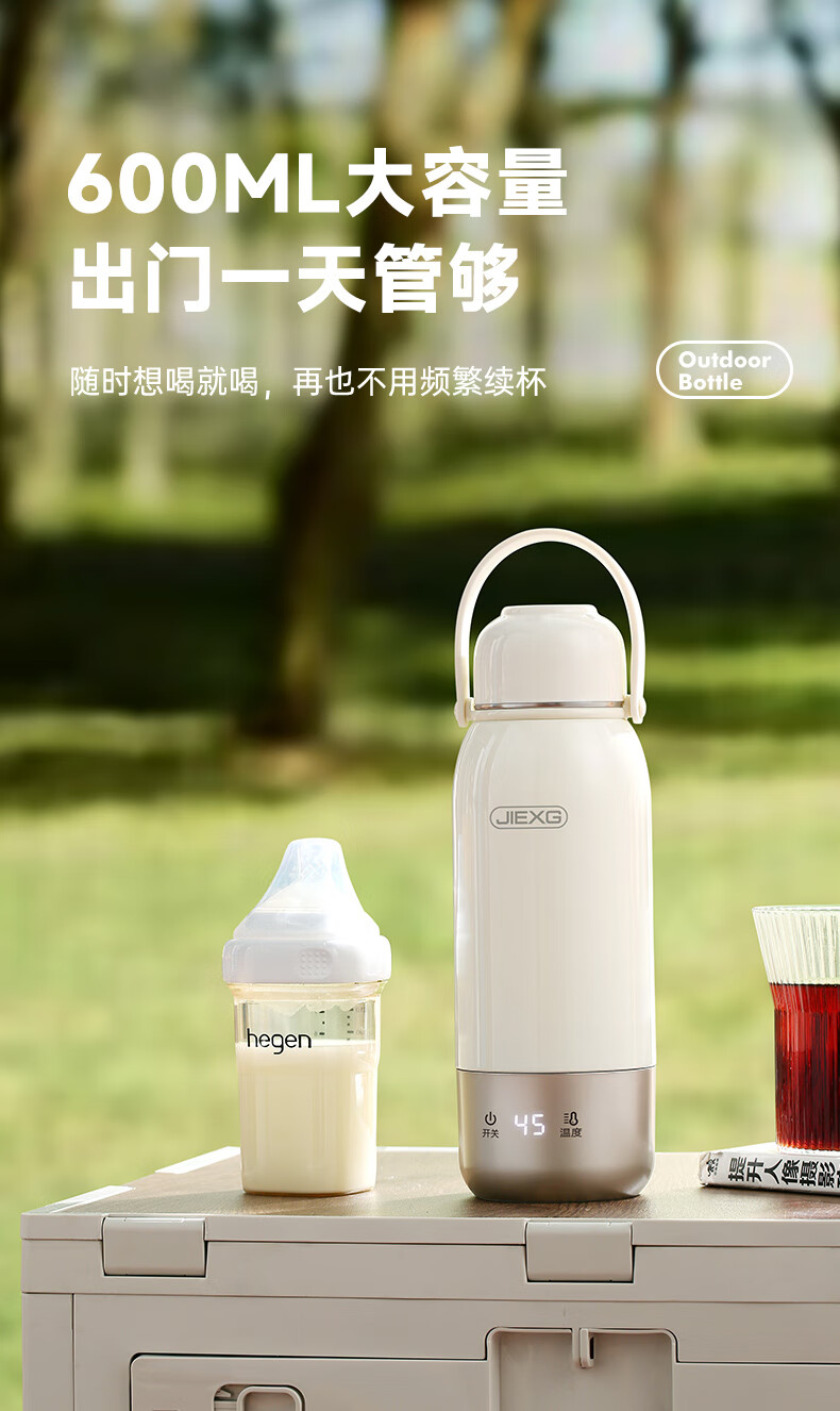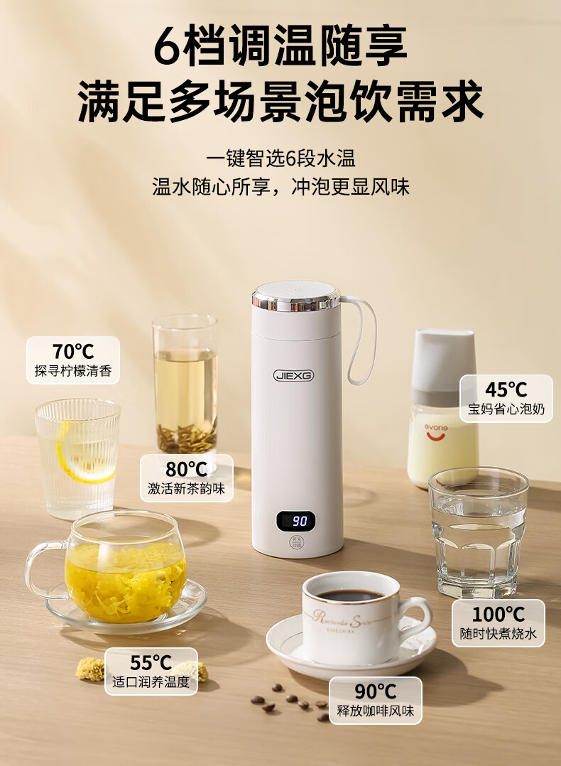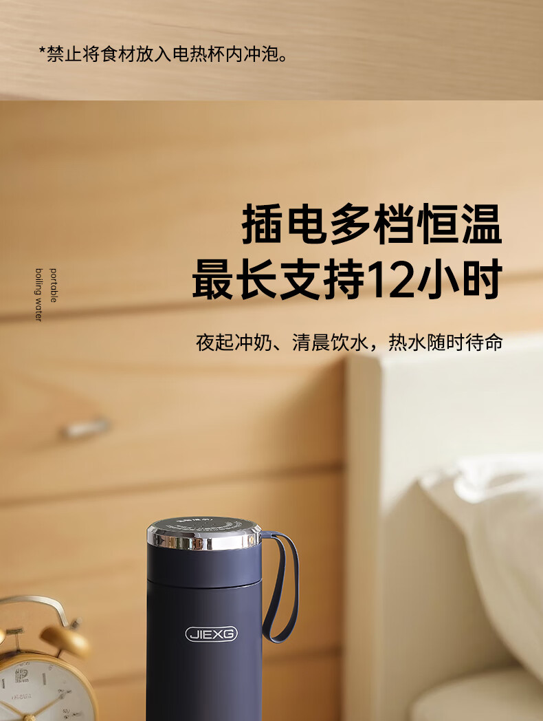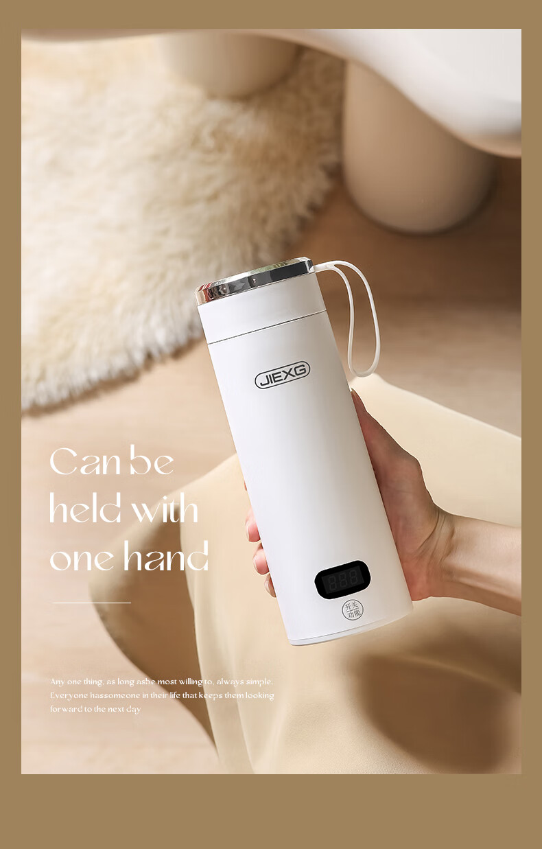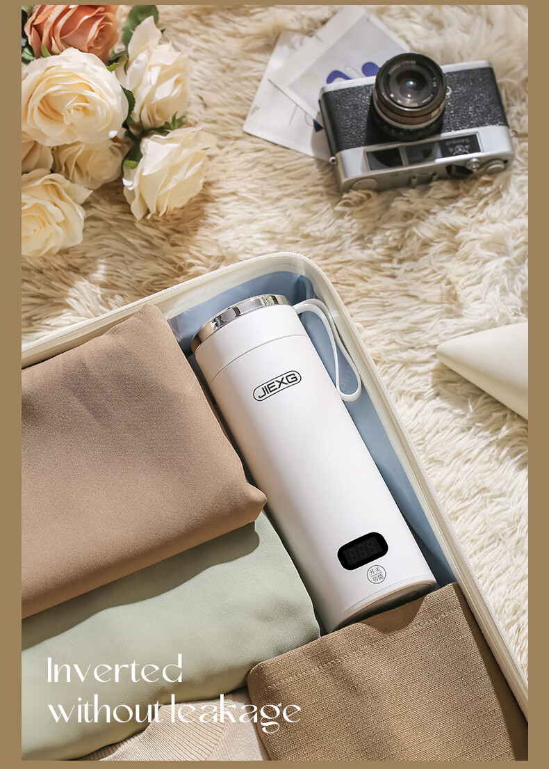 JIEXG德国烧水杯电热水杯 便携式烧水壶旅行加热水杯电热水壶户外烧水壶恒温保温加热杯 0.6L 【升级真空保温保冷】六档调温+316内胆