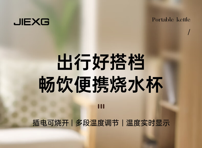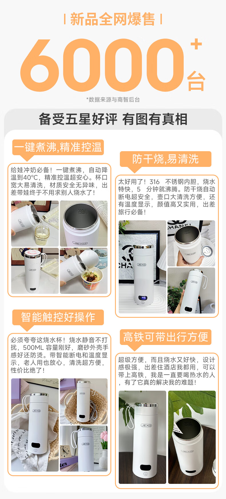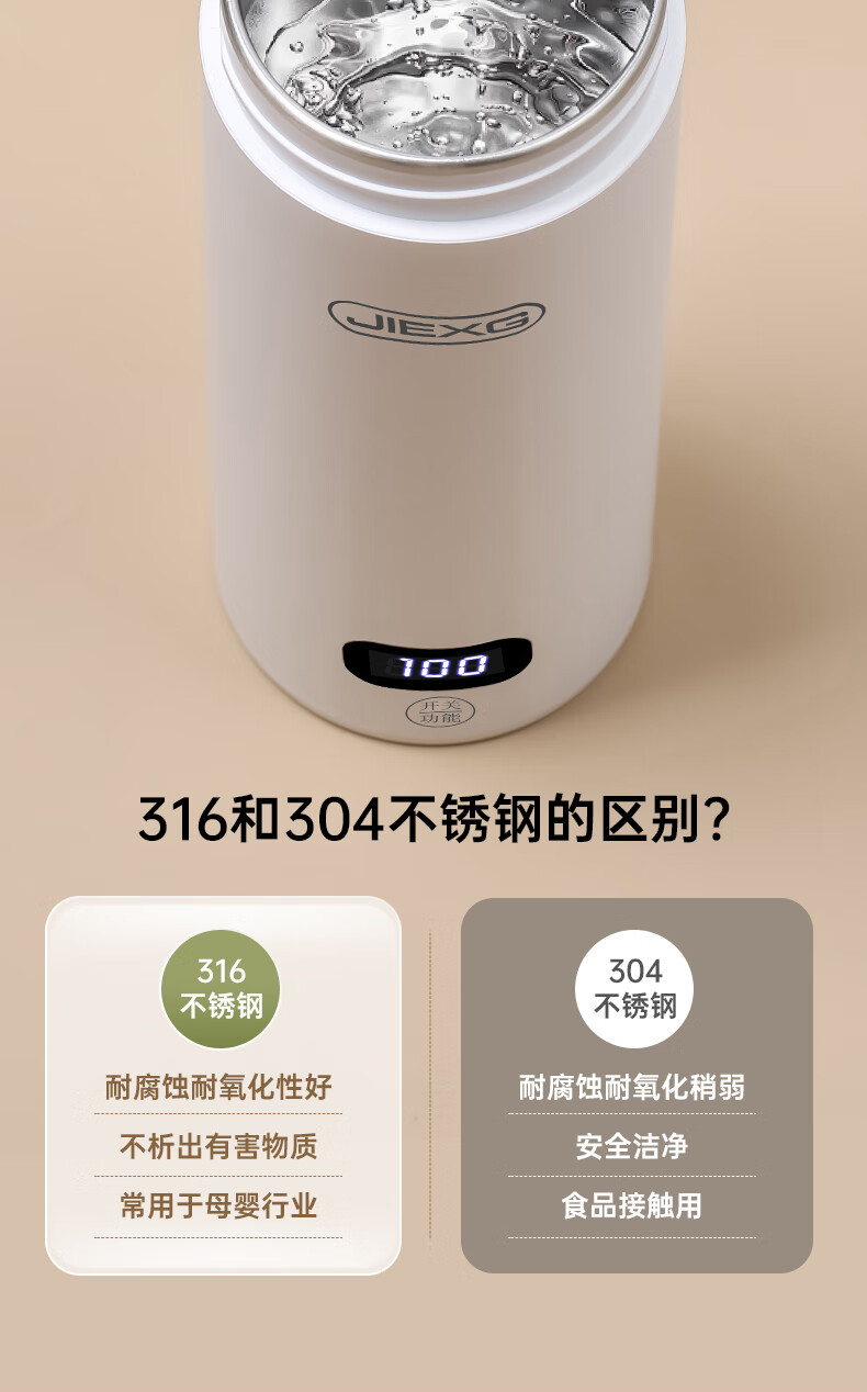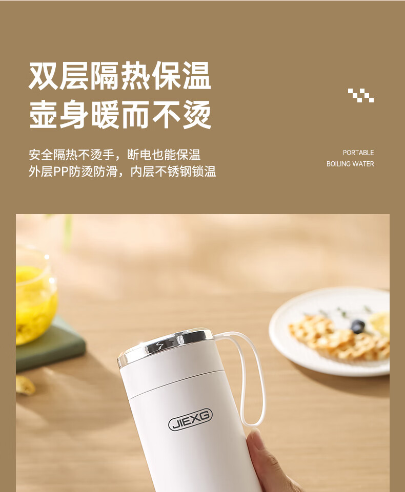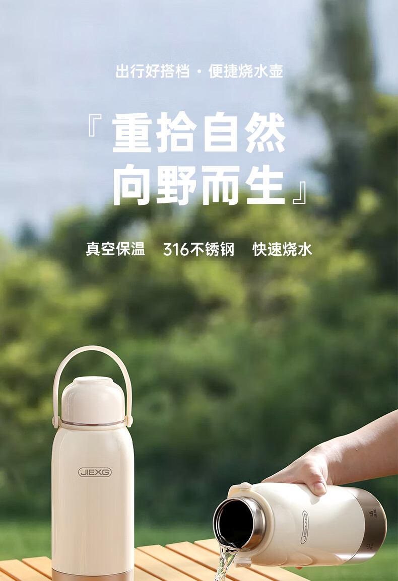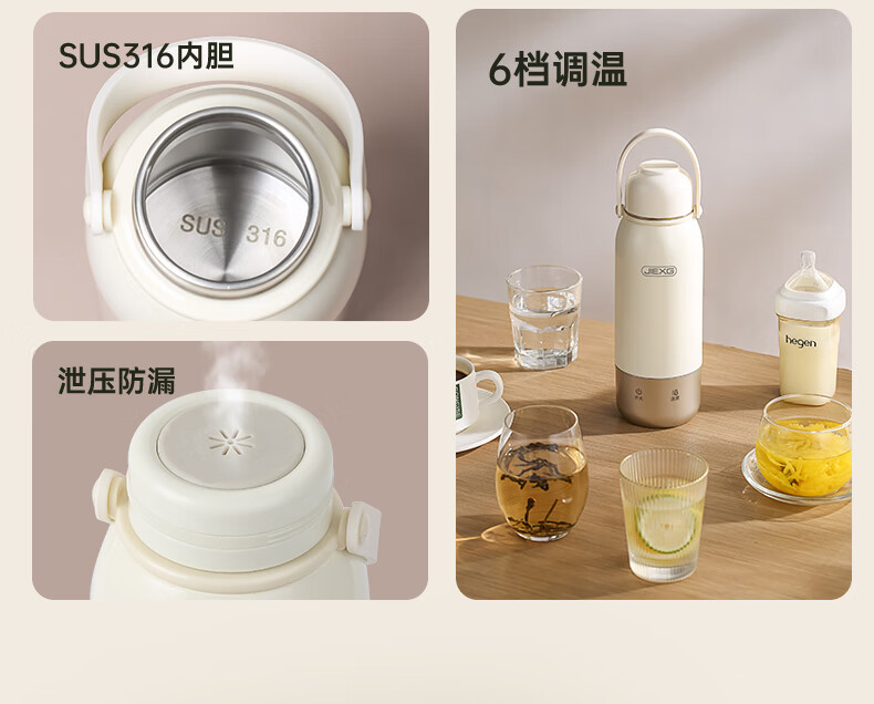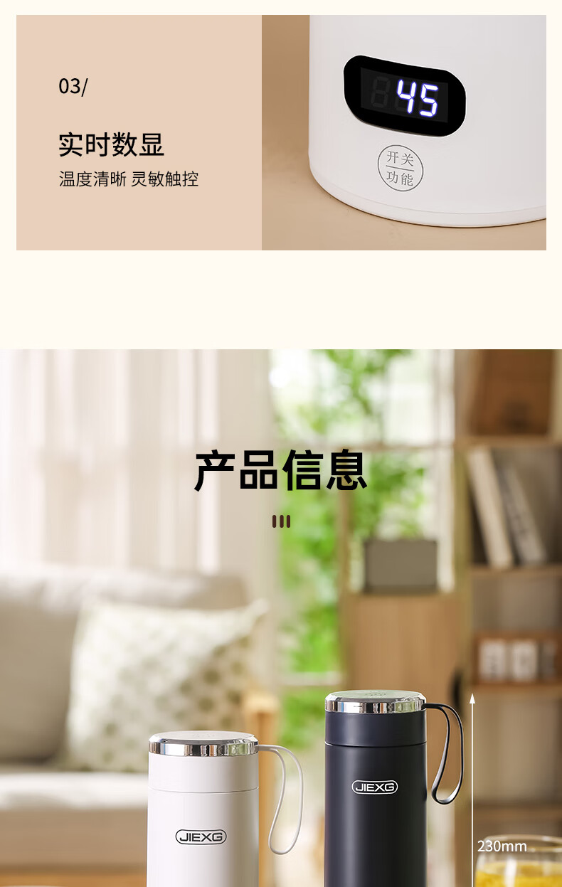 JIEXG德国烧水杯电热水杯 便携式烧水壶旅行加热水杯电热水壶户外烧水壶恒温保温加热杯 0.6L 【升级真空保温保冷】六档调温+316内胆