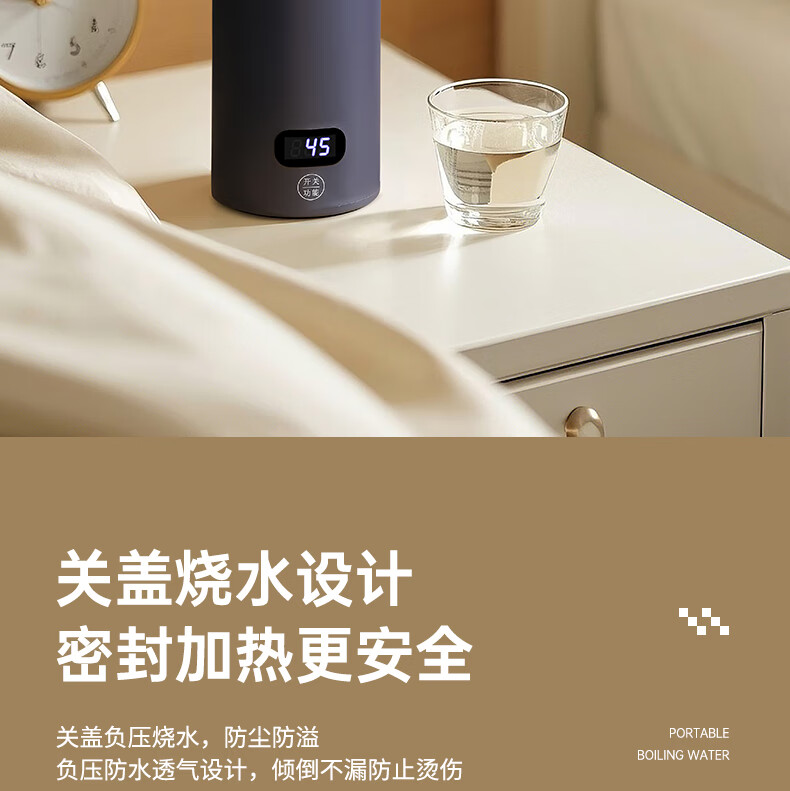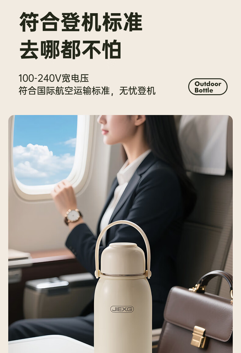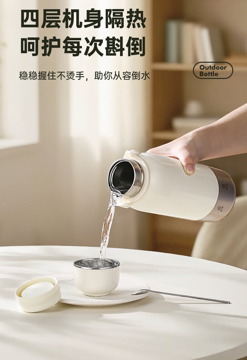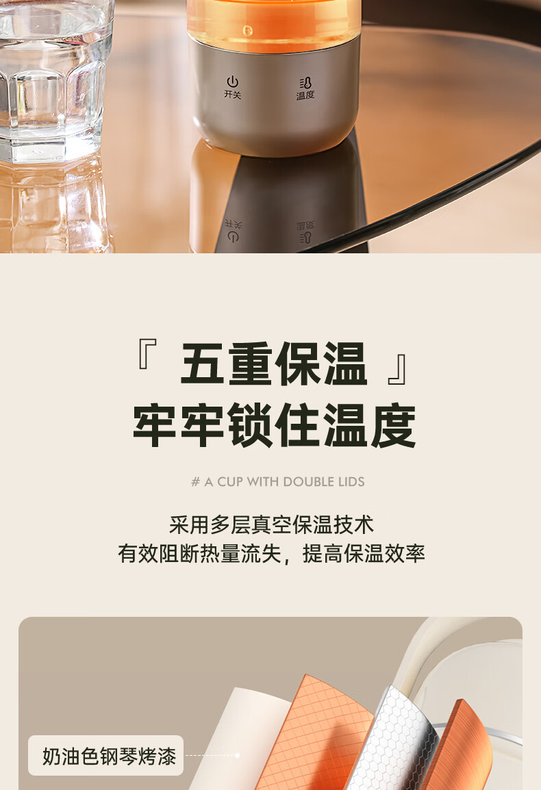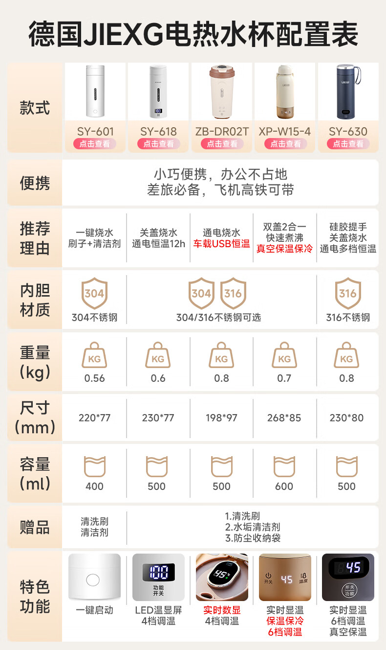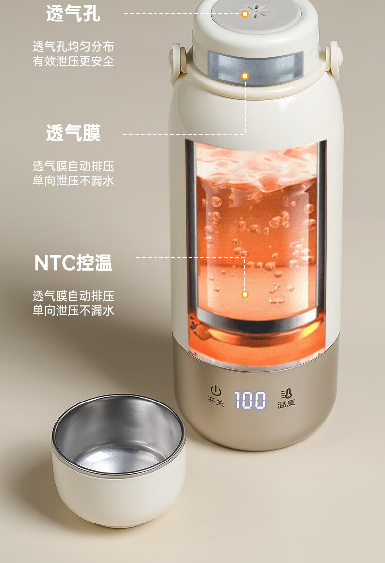 JIEXG德国烧水杯电热水杯 便携式烧水壶旅行加热水杯电热水壶户外烧水壶恒温保温加热杯 0.6L 【升级真空保温保冷】六档调温+316内胆