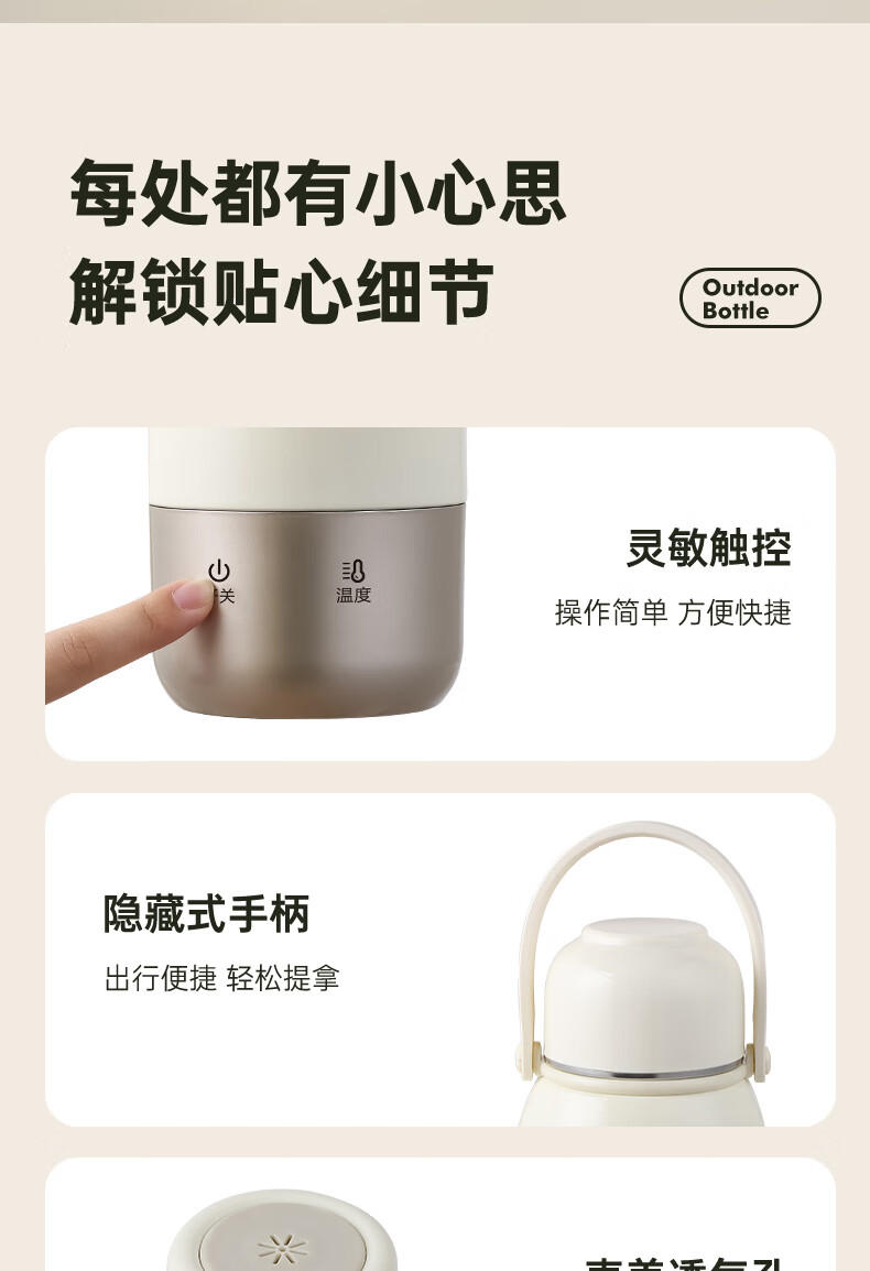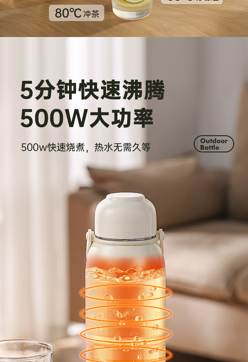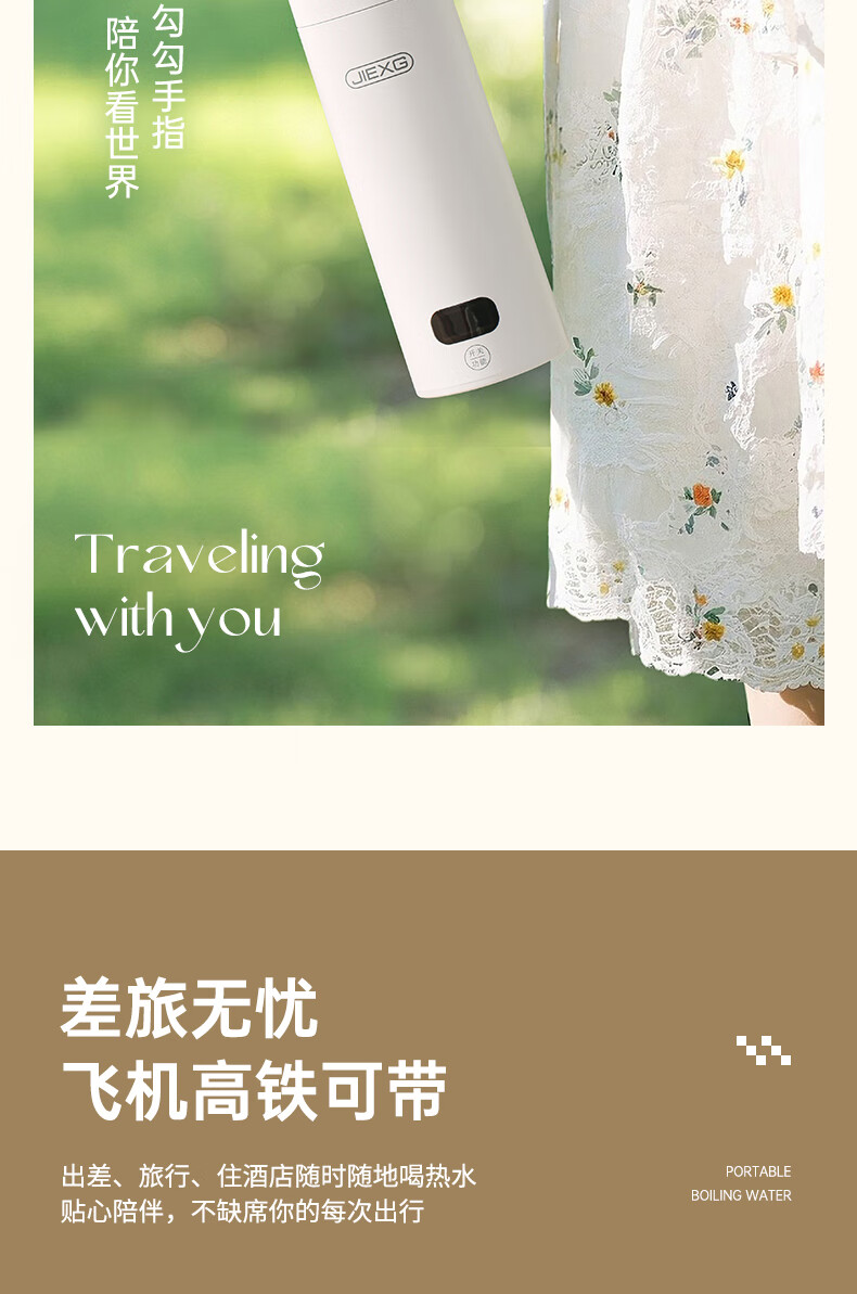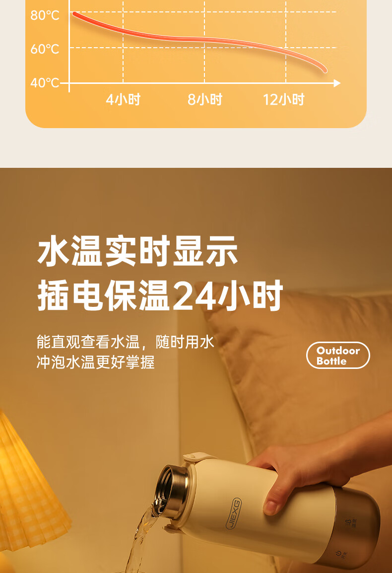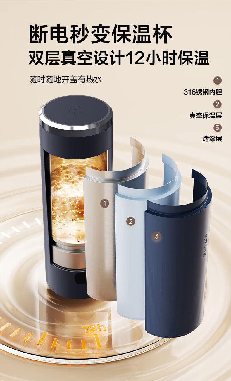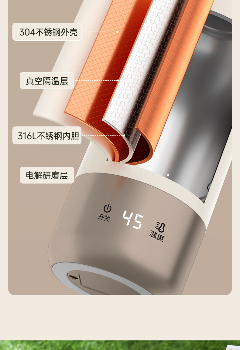 JIEXG德国烧水杯电热水杯 便携式烧水壶旅行加热水杯电热水壶户外烧水壶恒温保温加热杯 0.6L 【升级真空保温保冷】六档调温+316内胆