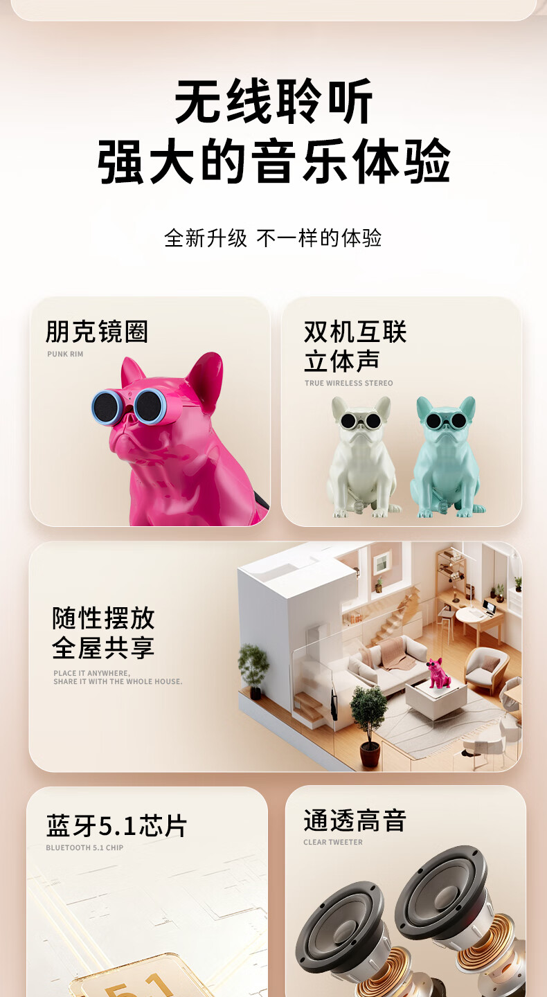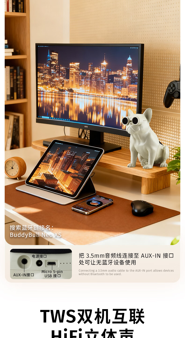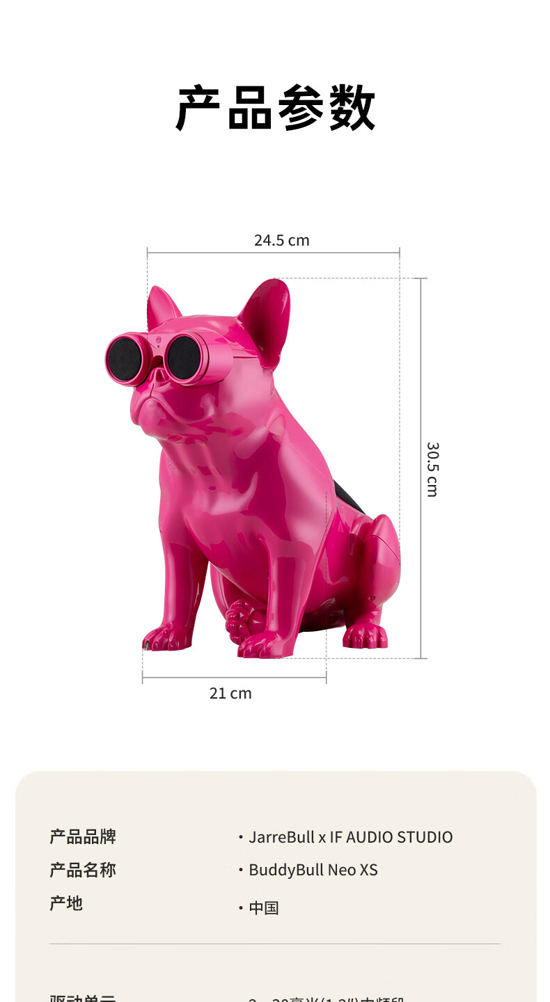 AERO SYSTEM法国官方斗牛犬无线蓝牙音响低音炮手机便携电脑桌面音箱音响(JARRE) AeroBull XS1斗牛犬音箱-红色