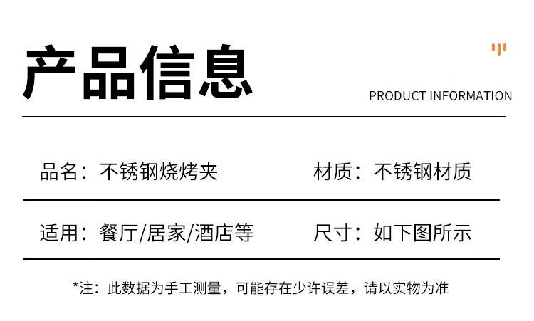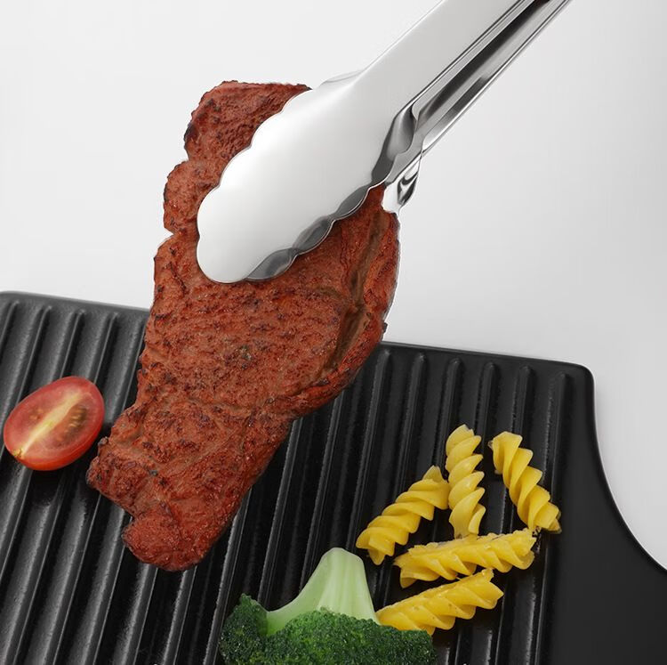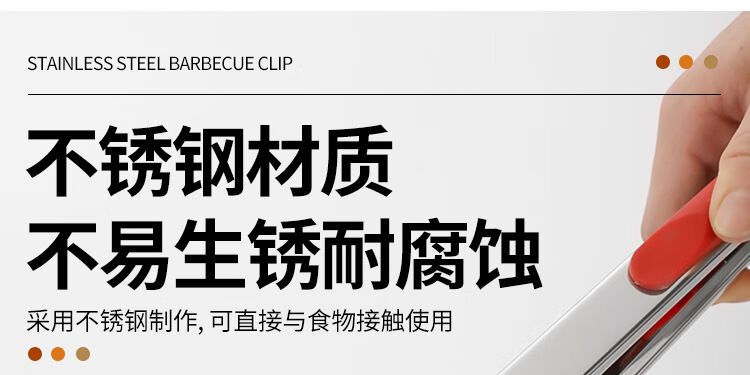 DEATKN【加粗铆钉】不锈钢夹子食品夹面包夹烧烤夹烘培防烫夹馍烤鱼商用 不锈钢烧烤夹-9寸/21.7厘米 一支装