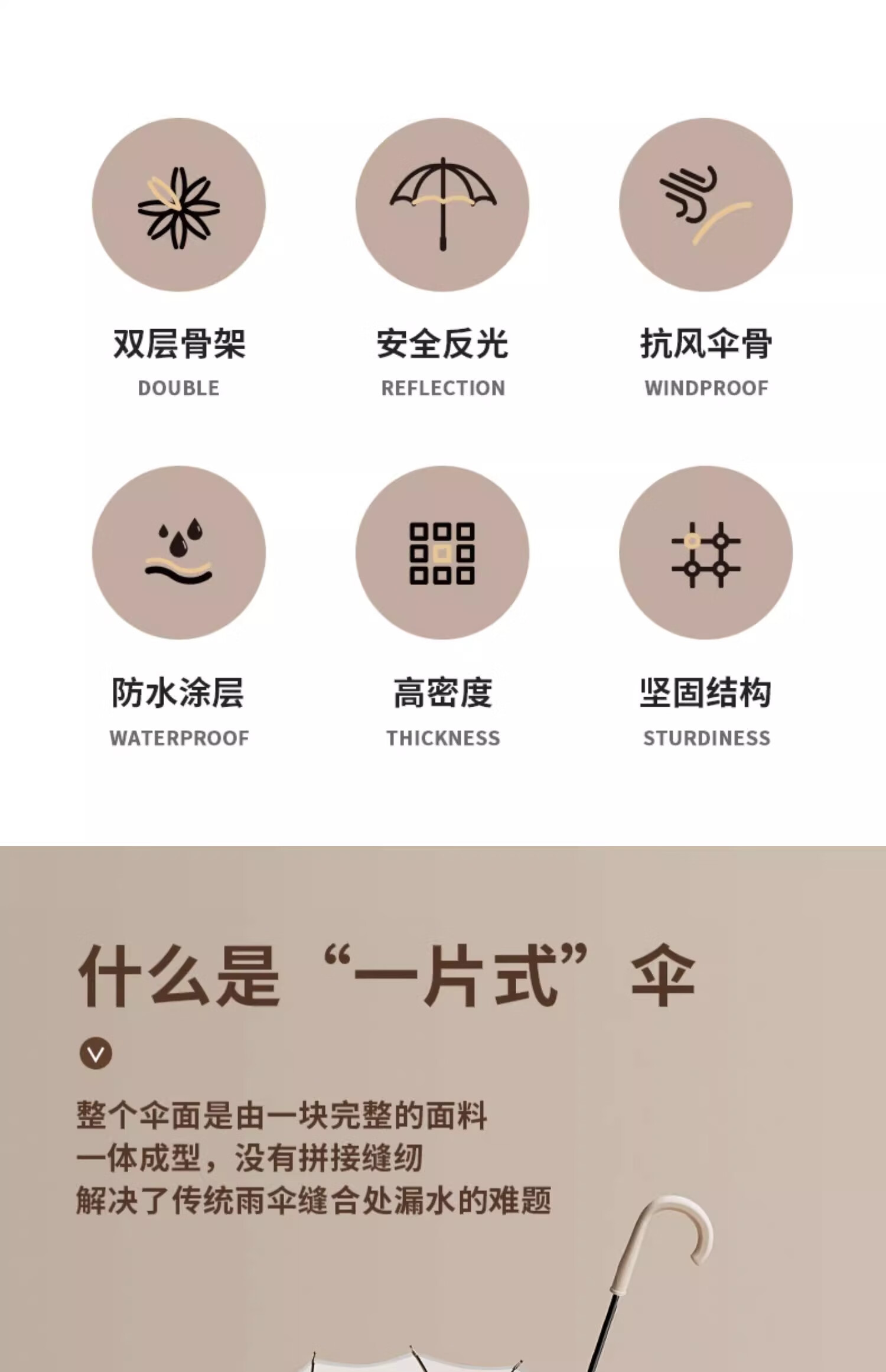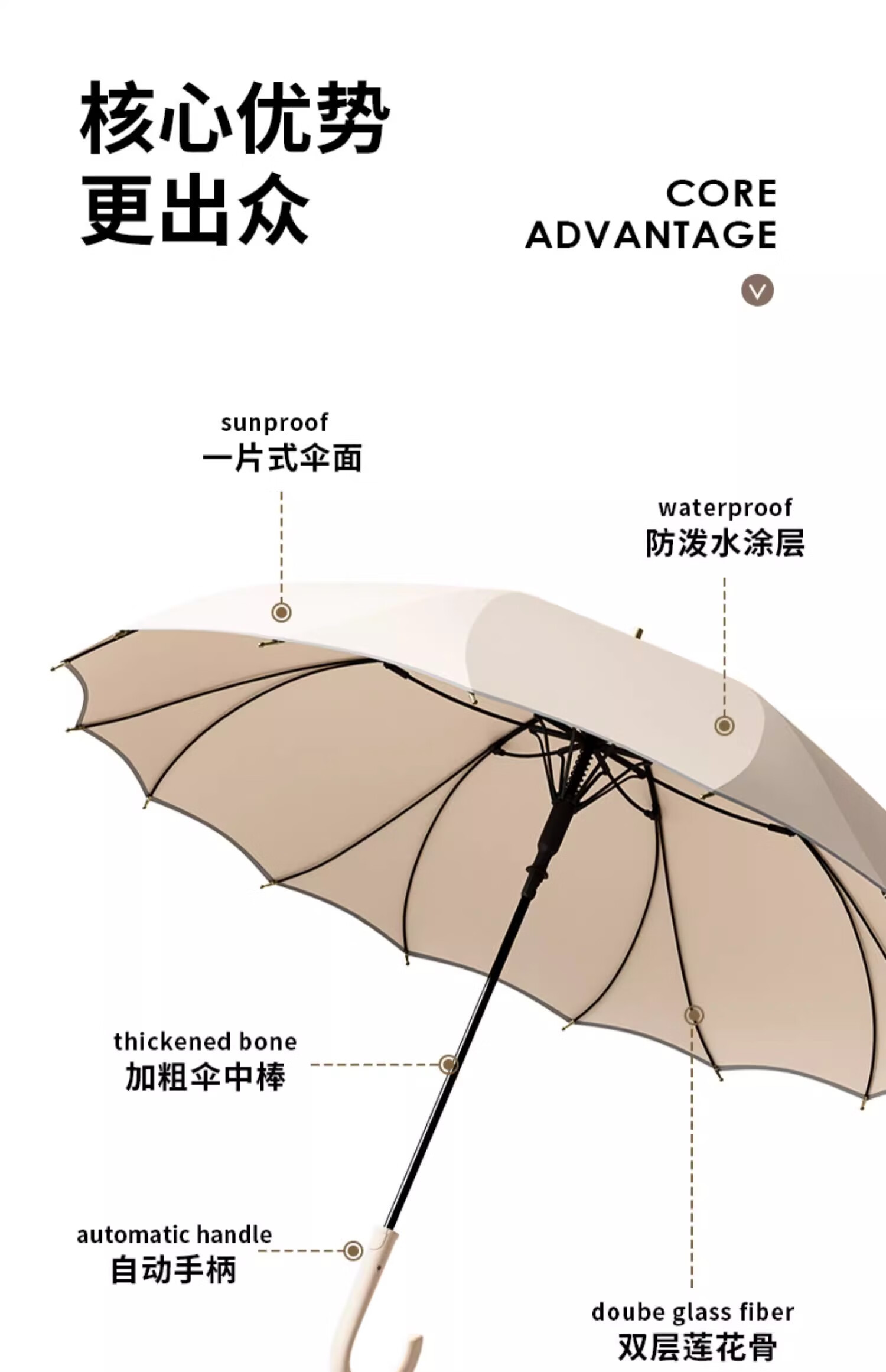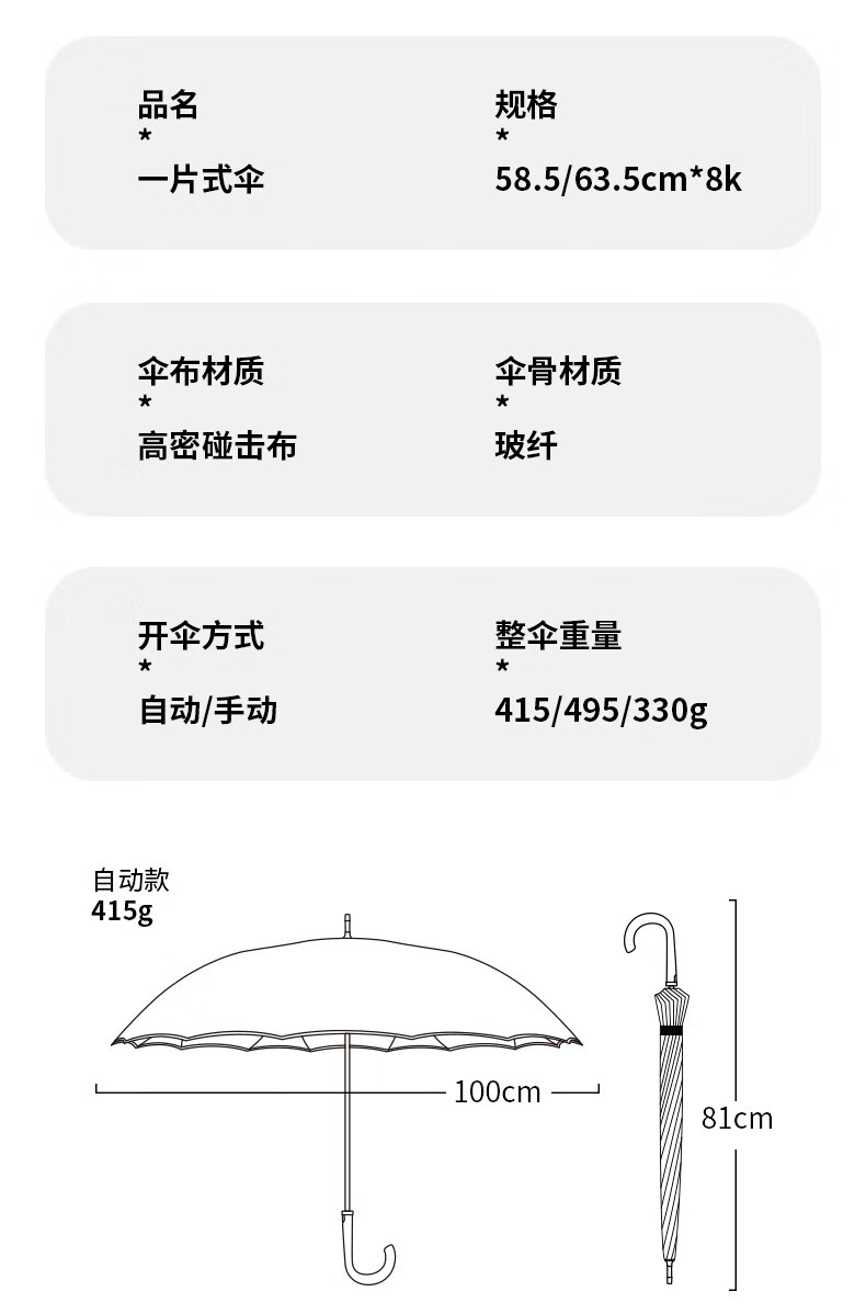 WCZ德国高端一片式防漏雨伞长柄抗风暴雨专用加大加厚加固男女晴雨两 迷雾蓝-自动款