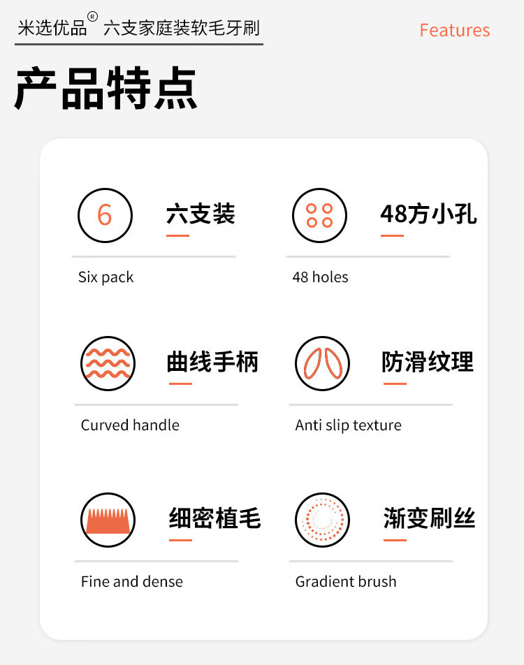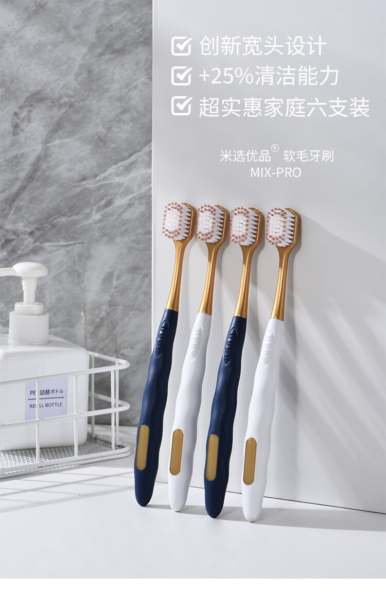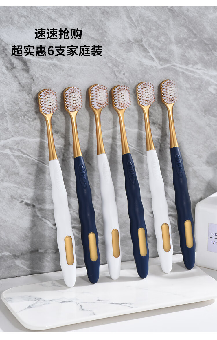 宽头超细洁齿软毛同款型品质护龈牙刷成人家庭密丝清洁卡装 软毛牙刷 6支 /家庭款 健康护龈
