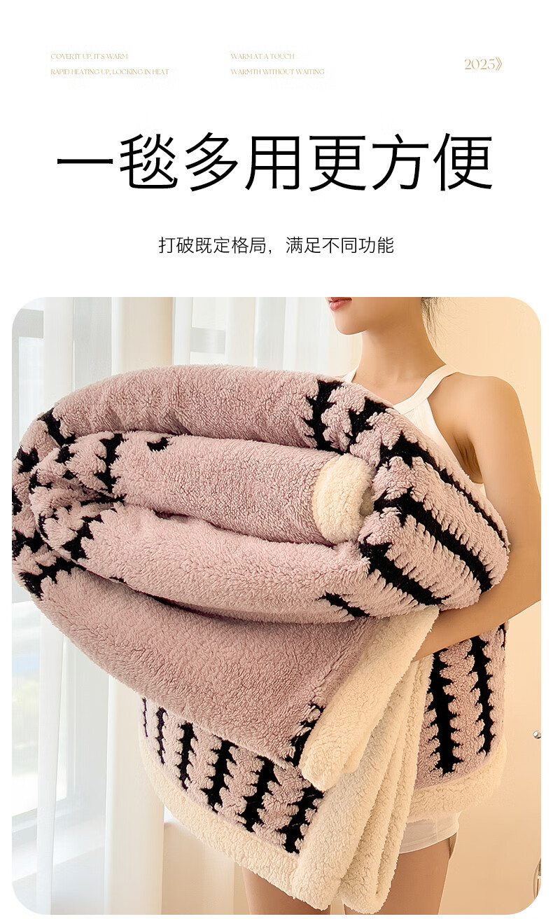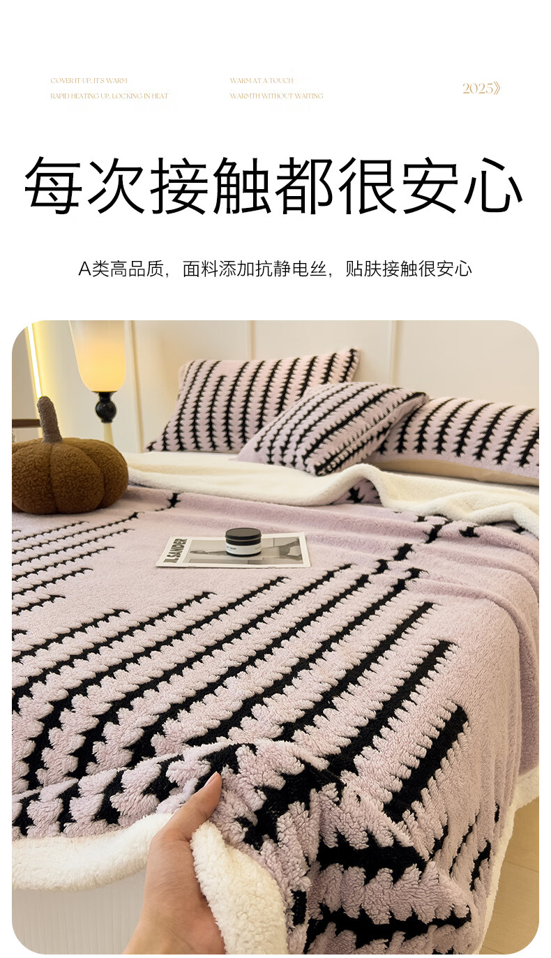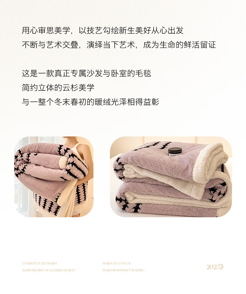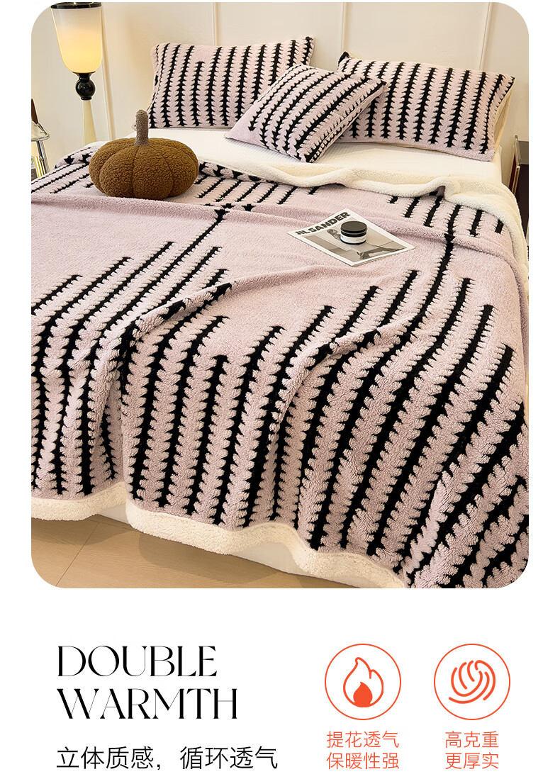 猫人(MiiOW)冬季加厚羊羔绒毛毯盖毯被子珊瑚塔芙绒毯子办公室午睡毯沙发毯 杉影毯深灰【双面加厚毛毯】 180X200cm【加大单人毛毯】