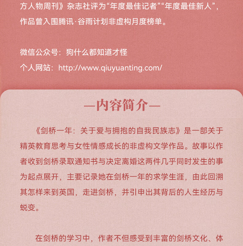 【万有引力书系】剑桥一年 关于爱与拥抱的自我民族志 一部女性成长史 精英教育思考女性情感成长中国文学女性文学非虚构文学 广东人民出版社 剑桥一年: 关于爱与拥抱的自我民族志