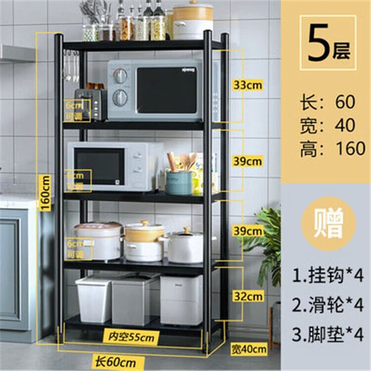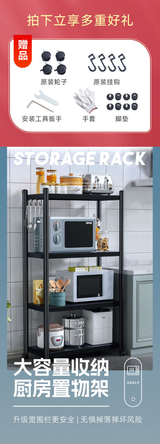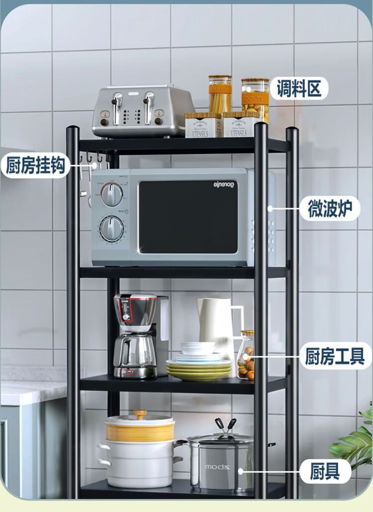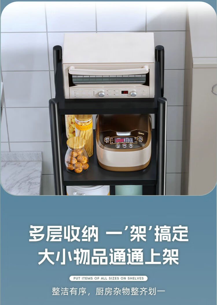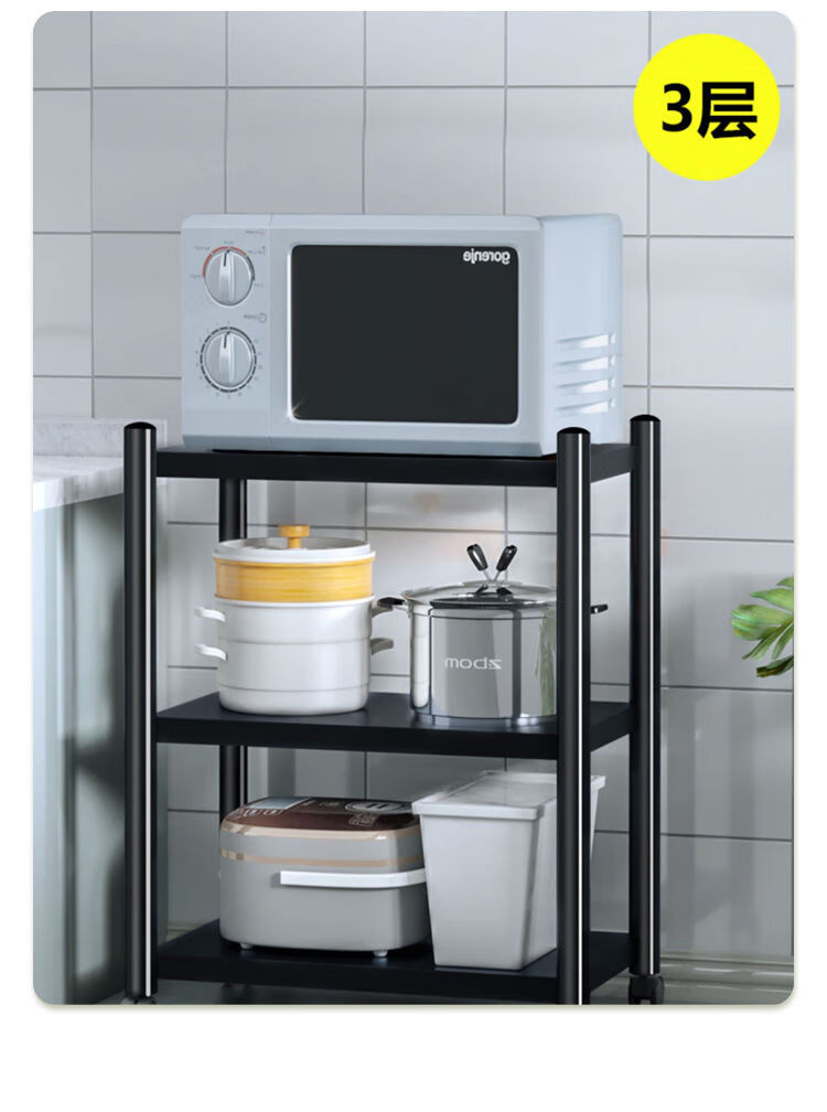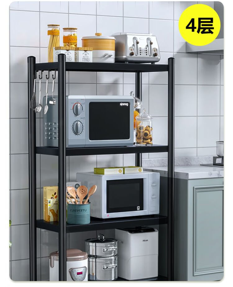 海诗圣堡厨房落地置物架小家电微波炉锅具杂物收纳储物架出租屋必备置物架 50*35*46超承重碳钢一层