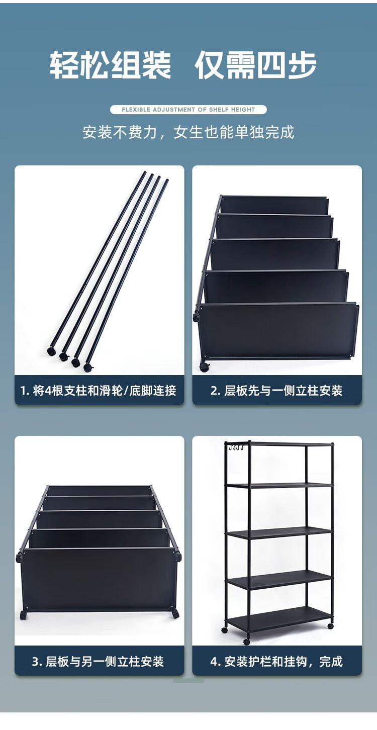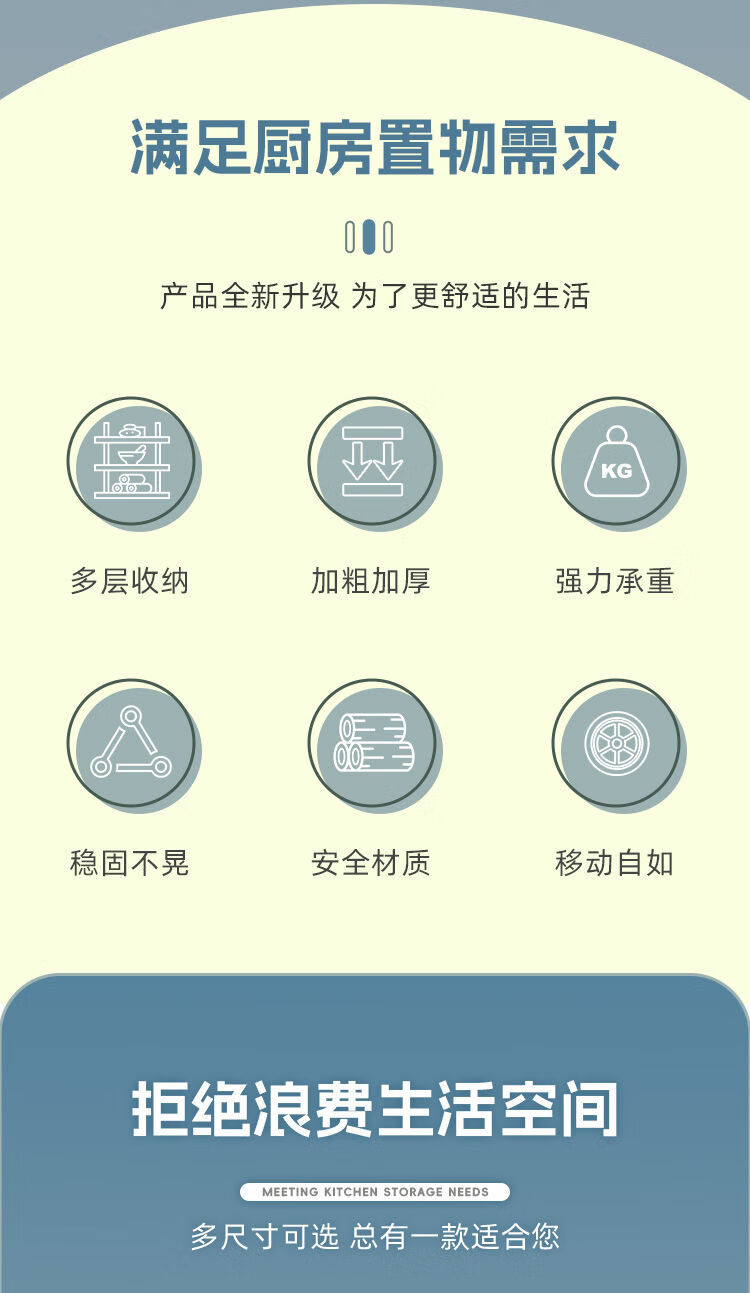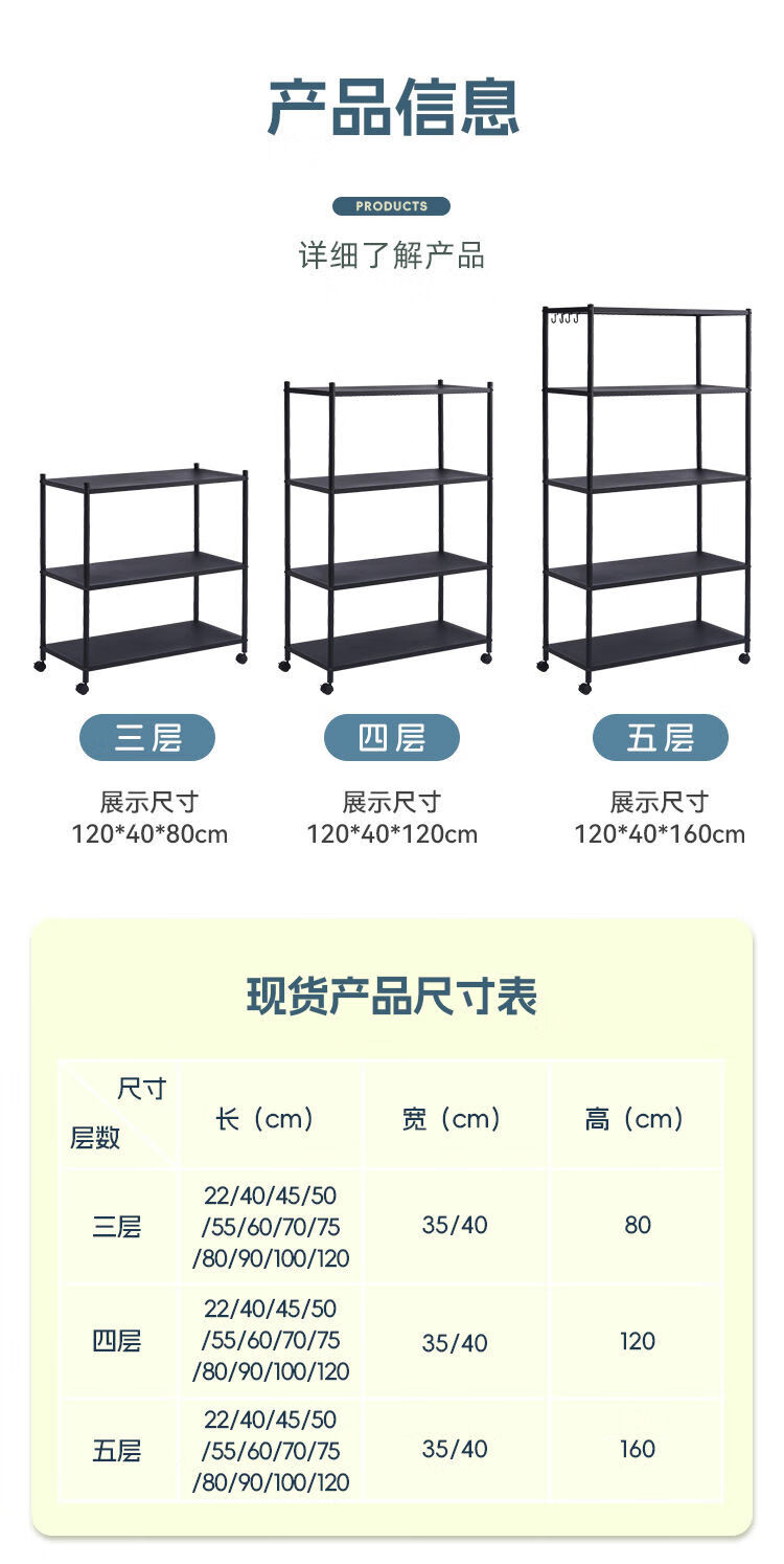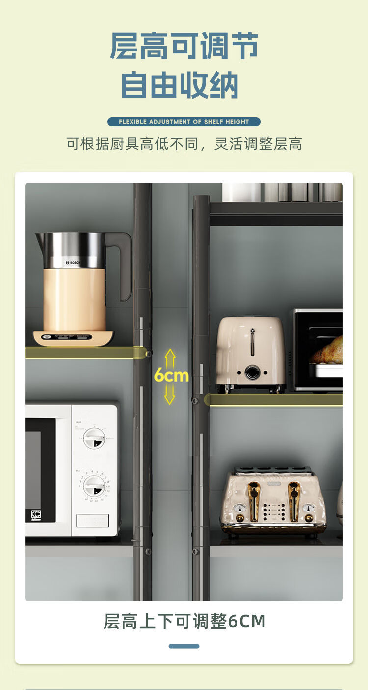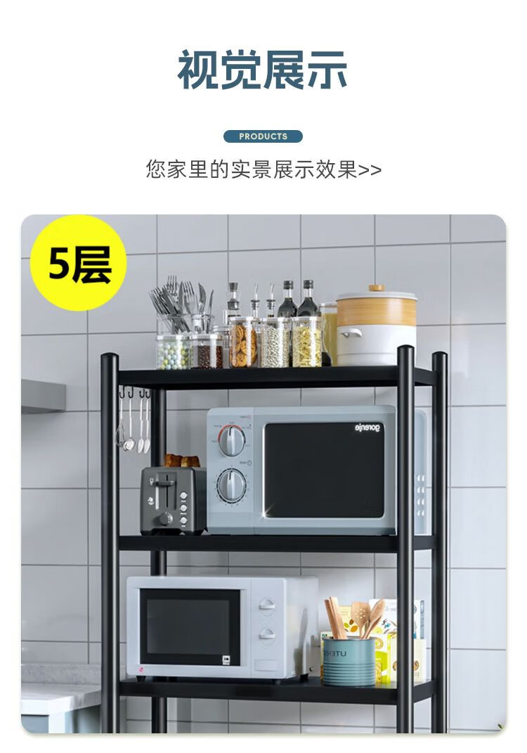 海诗圣堡厨房落地置物架小家电微波炉锅具杂物收纳储物架出租屋必备置物架 50*35*46超承重碳钢一层