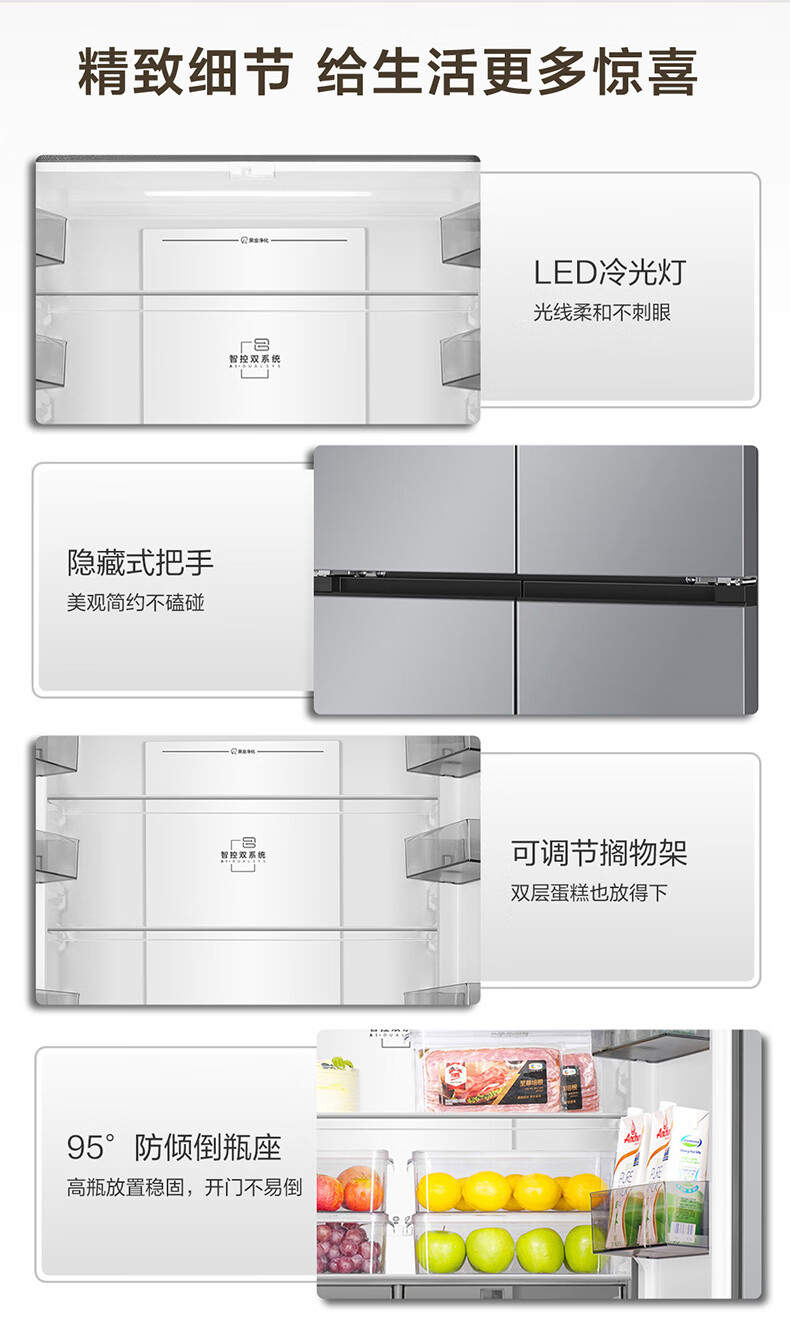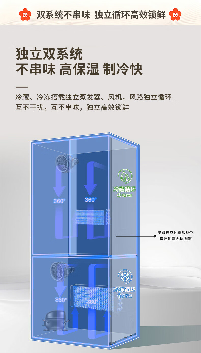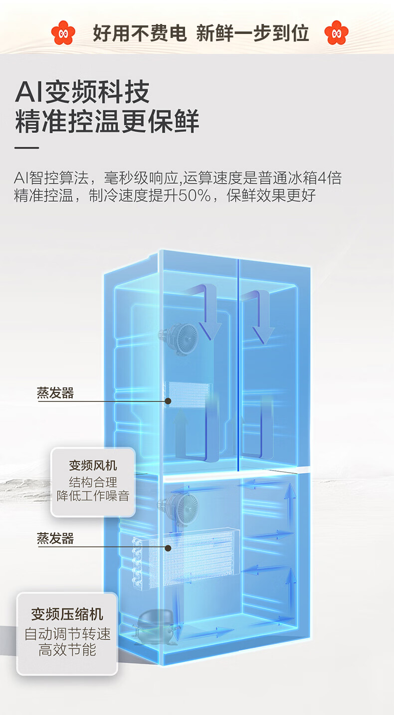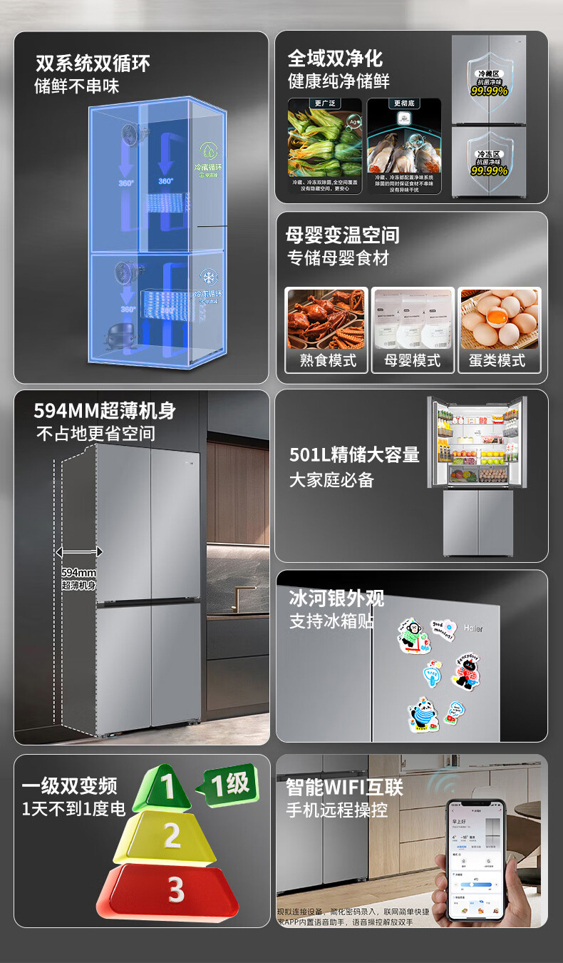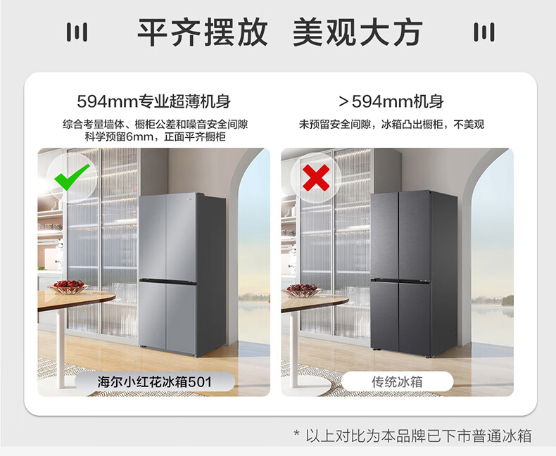 海尔(Haier)冰箱「小红花2.0升级款」501升双系统双循环超薄十字四开门一级能效国家补贴家用嵌入式冰箱山茶花 501升双系统双循环丨594mm超薄丨全空间净化