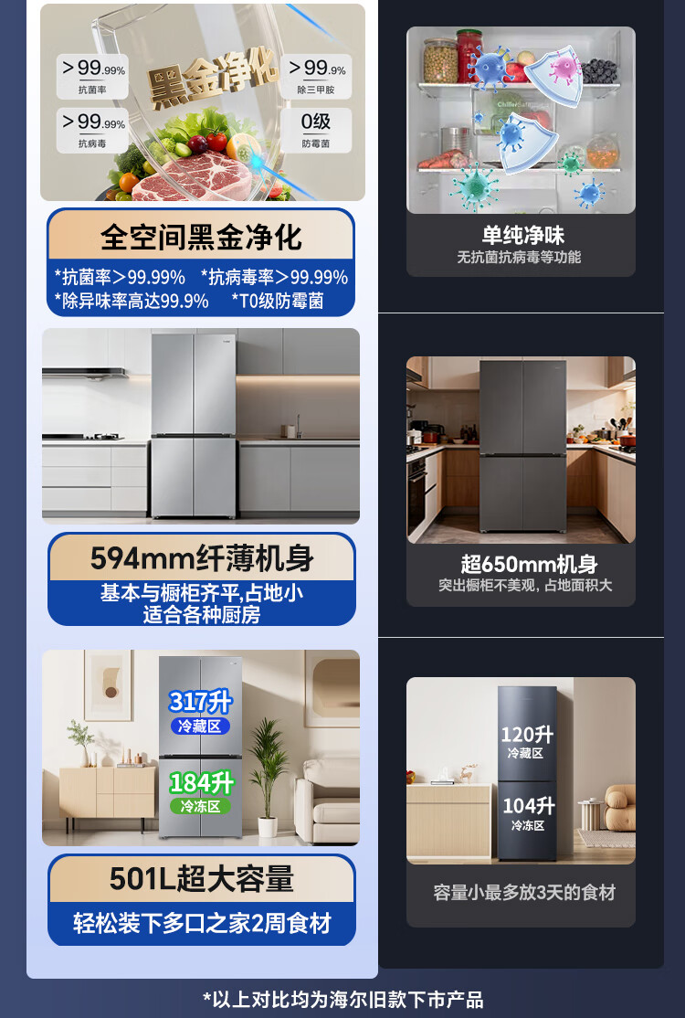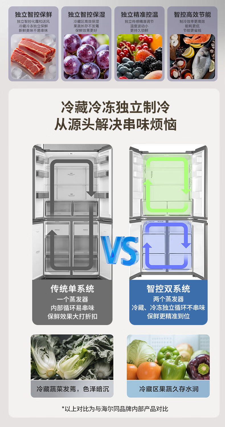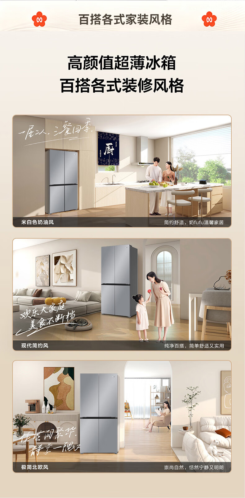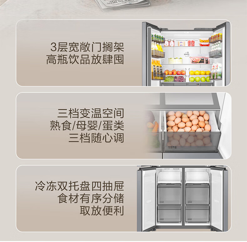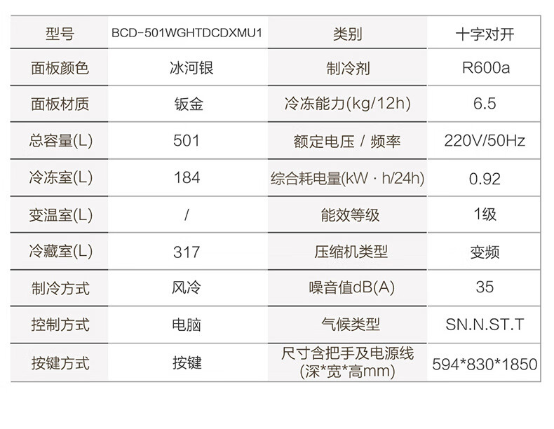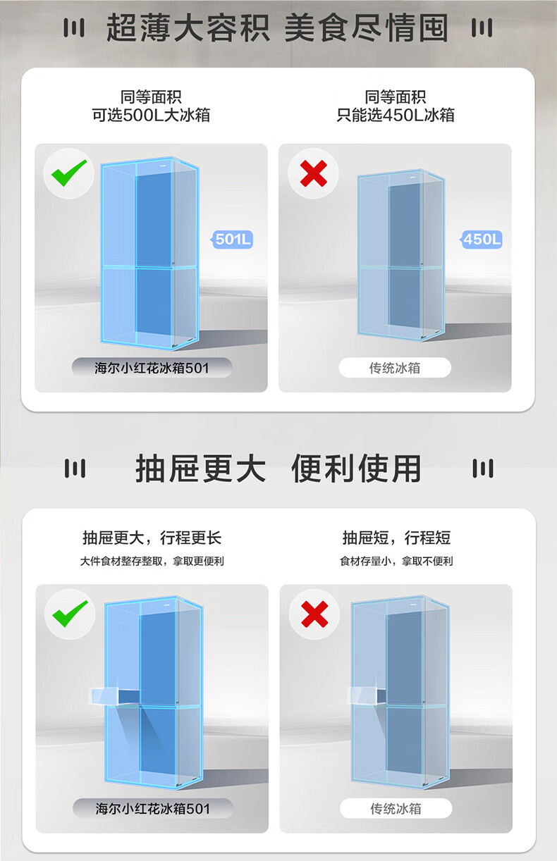 海尔(Haier)冰箱「小红花2.0升级款」501升双系统双循环超薄十字四开门一级能效国家补贴家用嵌入式冰箱山茶花 501升双系统双循环丨594mm超薄丨全空间净化