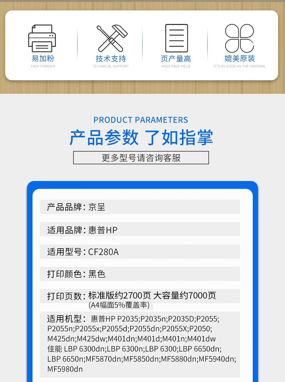 京呈CF280A硒鼓适用惠普400硒鼓 m401a m401n m401dn M401d m425dn m425dw p2055d打印机墨粉盒