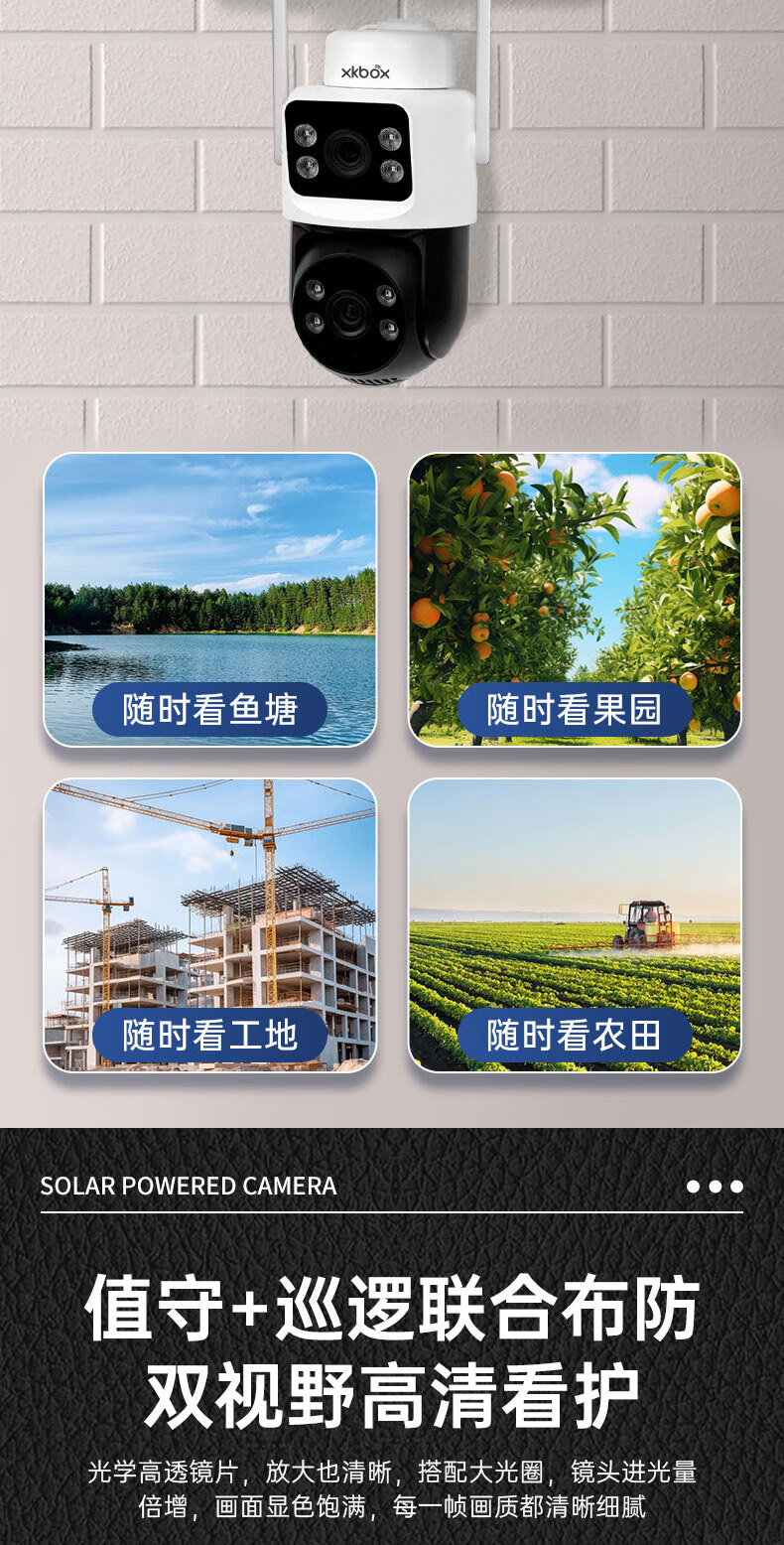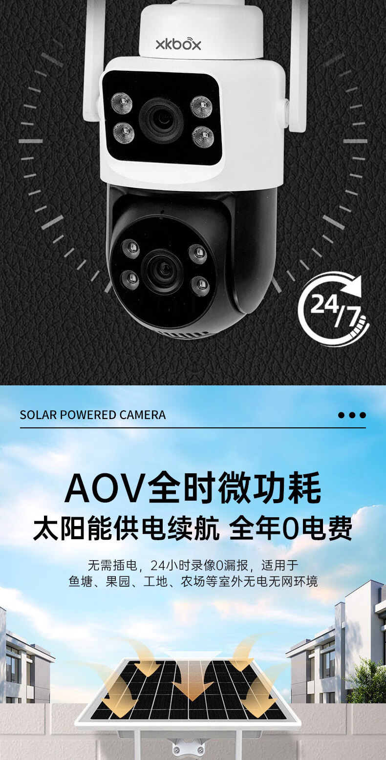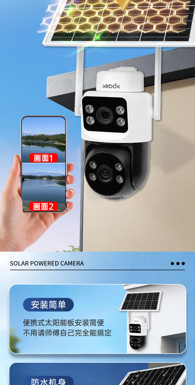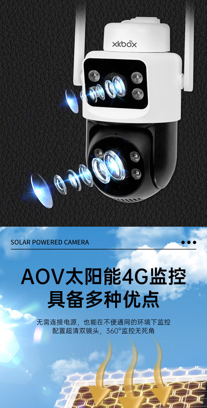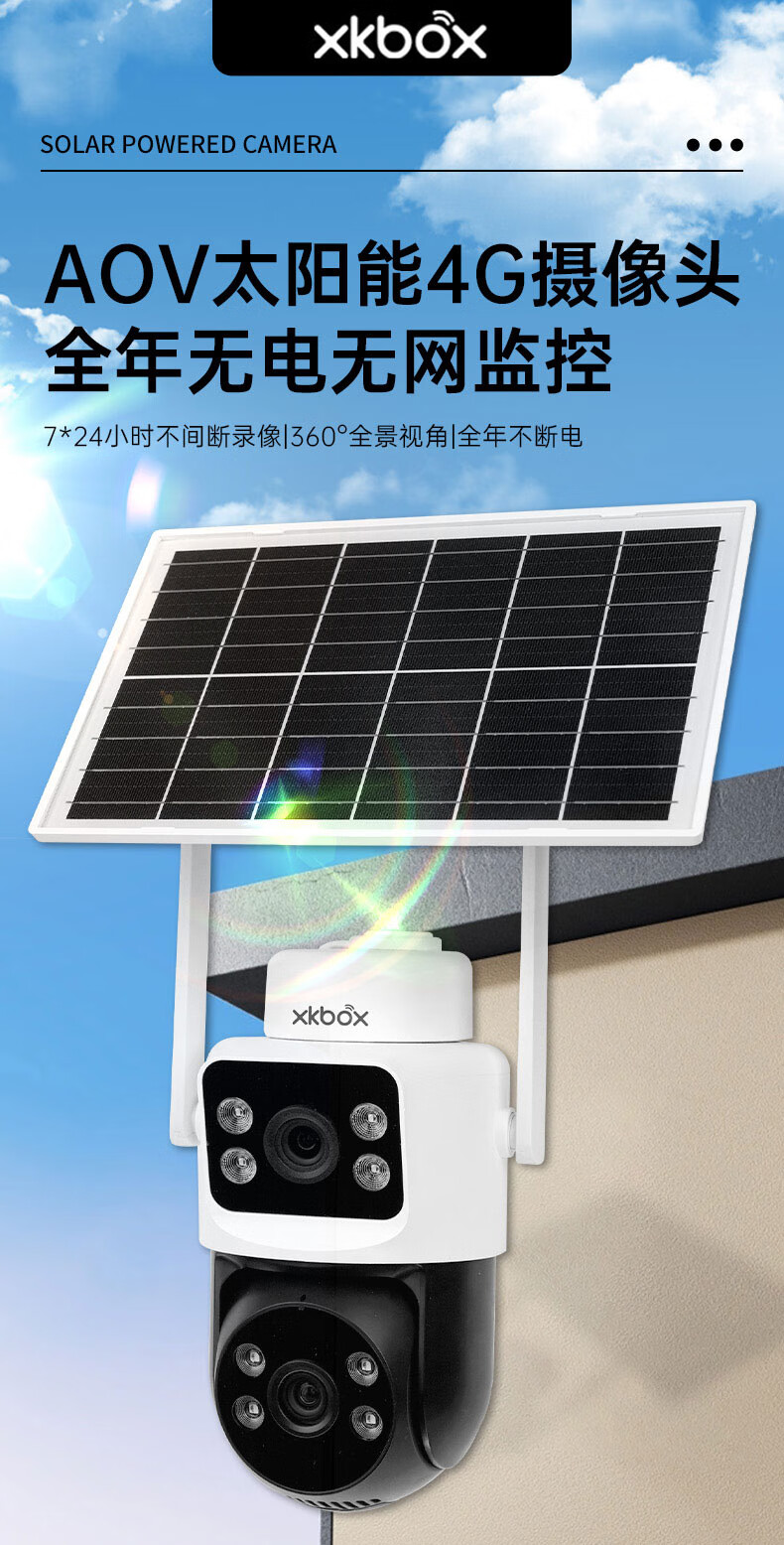 XKBOX4g太阳能摄像头室外无电无网终身免费流量免插电手机远程高清监控器家用户外360度无死角全景夜视