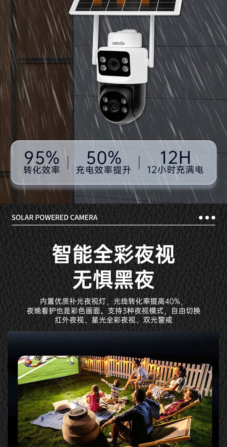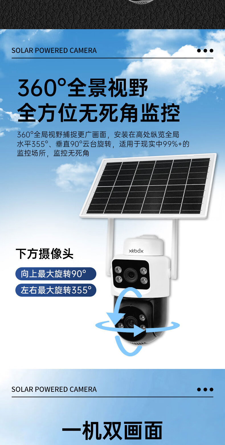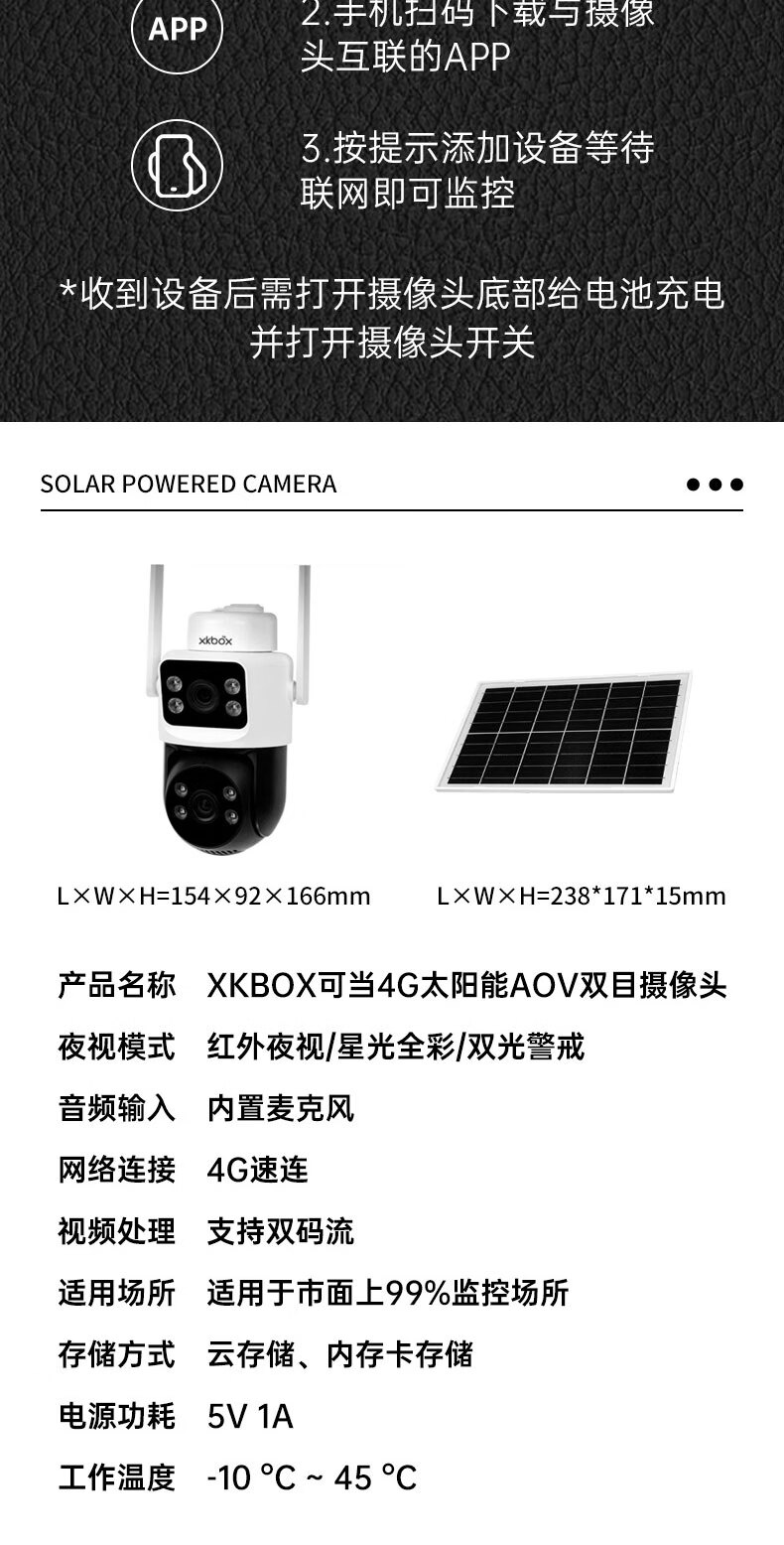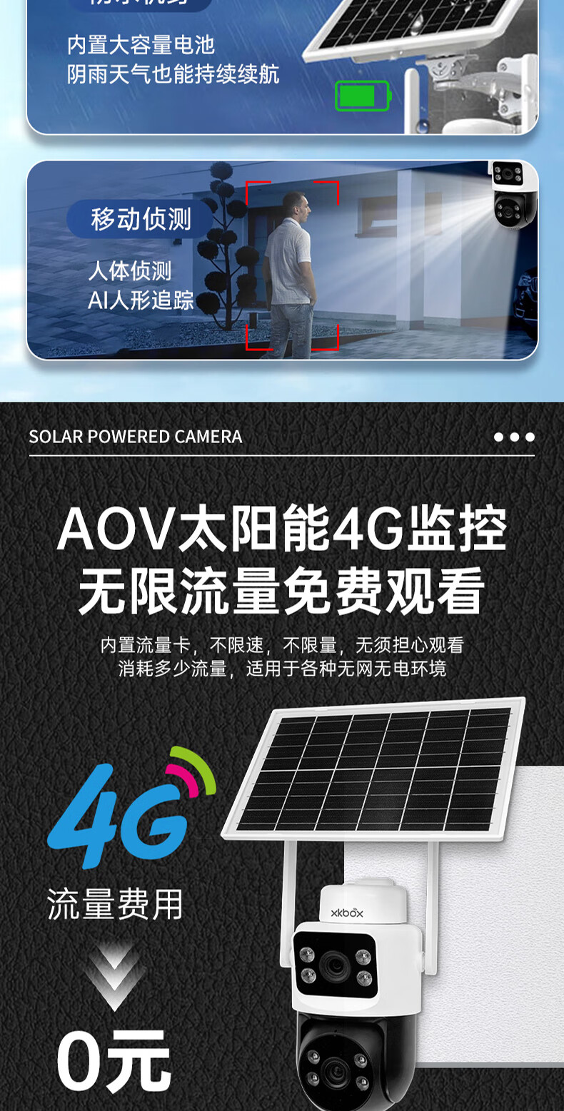 XKBOX4g太阳能摄像头室外无电无网终身免费流量免插电手机远程高清监控器家用户外360度无死角全景夜视