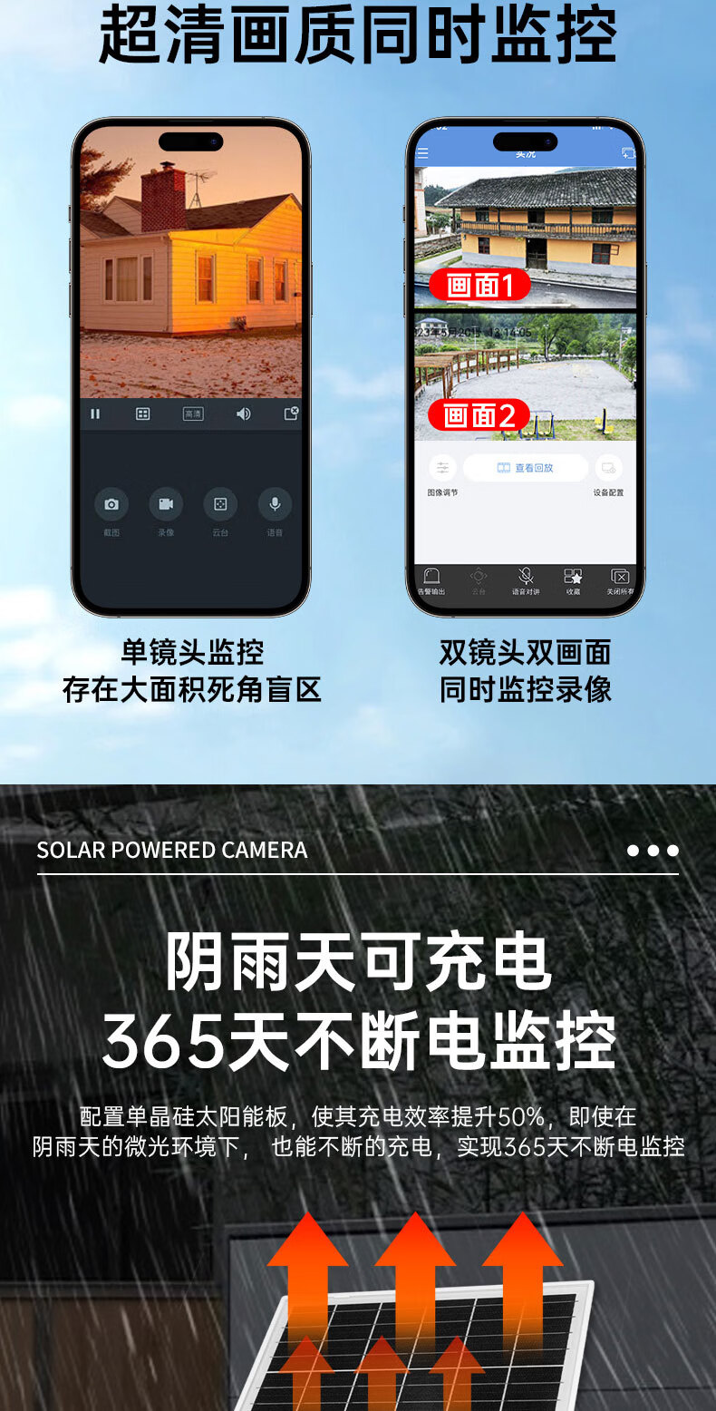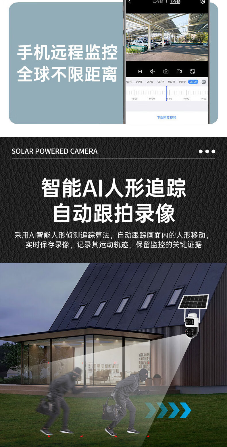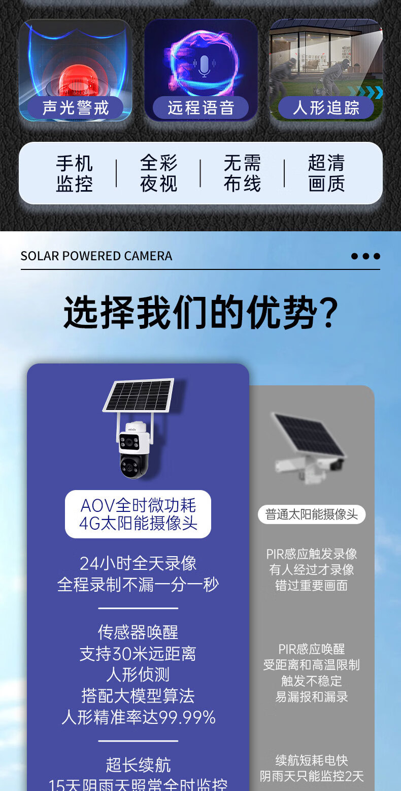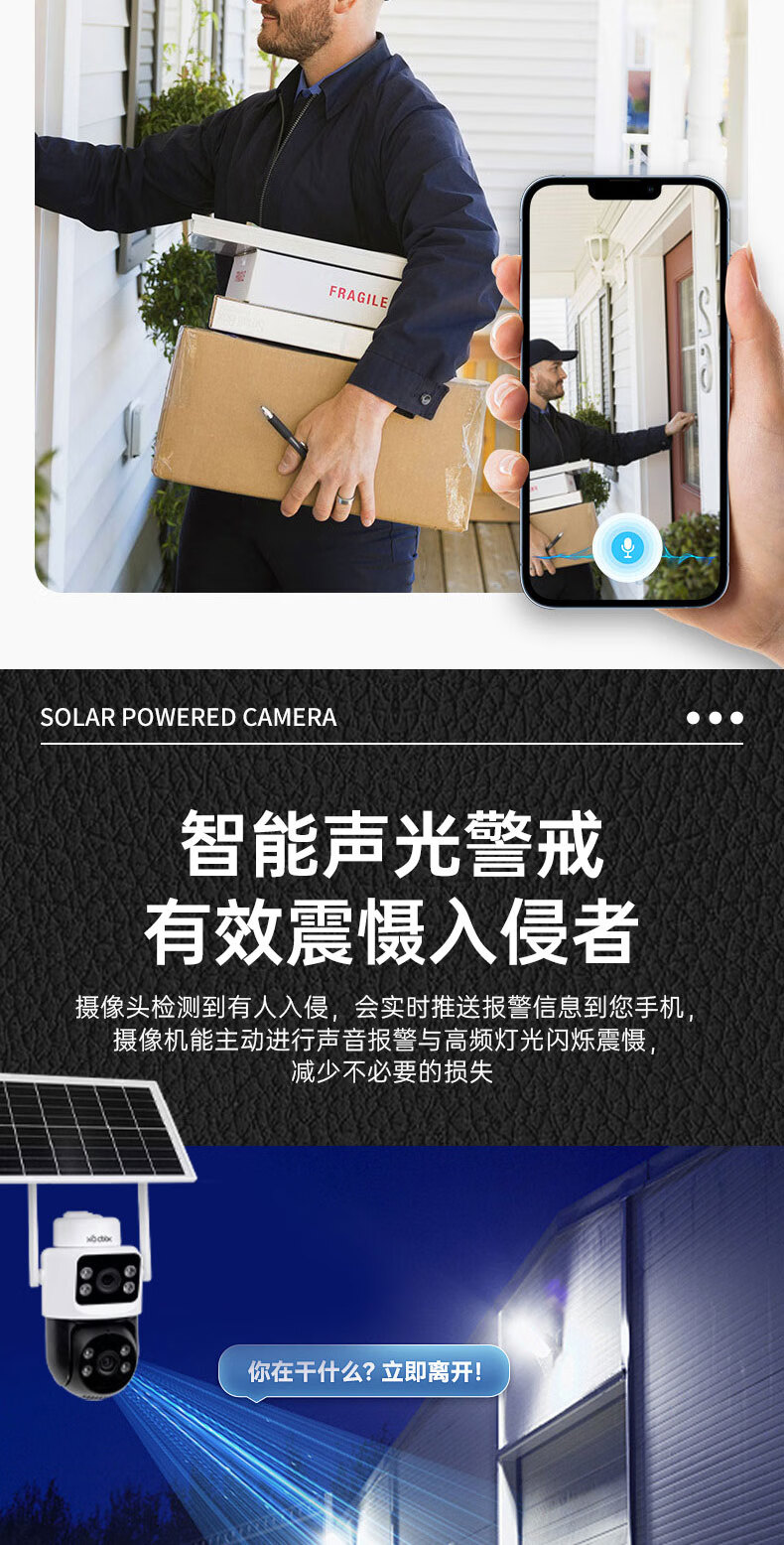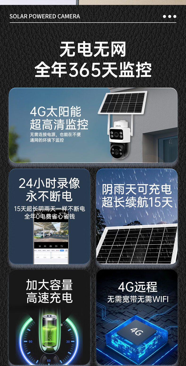 XKBOX4g太阳能摄像头室外无电无网终身免费流量免插电手机远程高清监控器家用户外360度无死角全景夜视