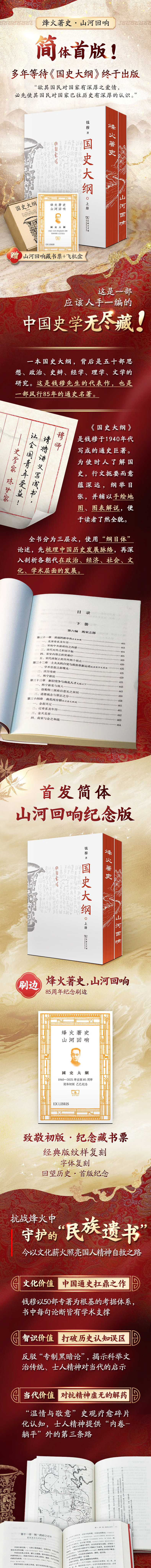 【新华正版包邮】国史大纲简体刷边版 横排 商务印书馆 钱穆 著 赠纪念藏书票+飞机盒+宅兹中国帆布书衣 中国通史扛鼎之作 钱穆真正的国之脊梁 图书