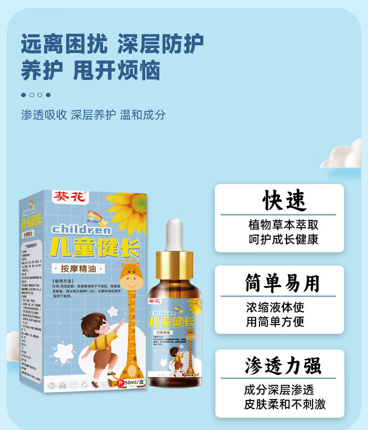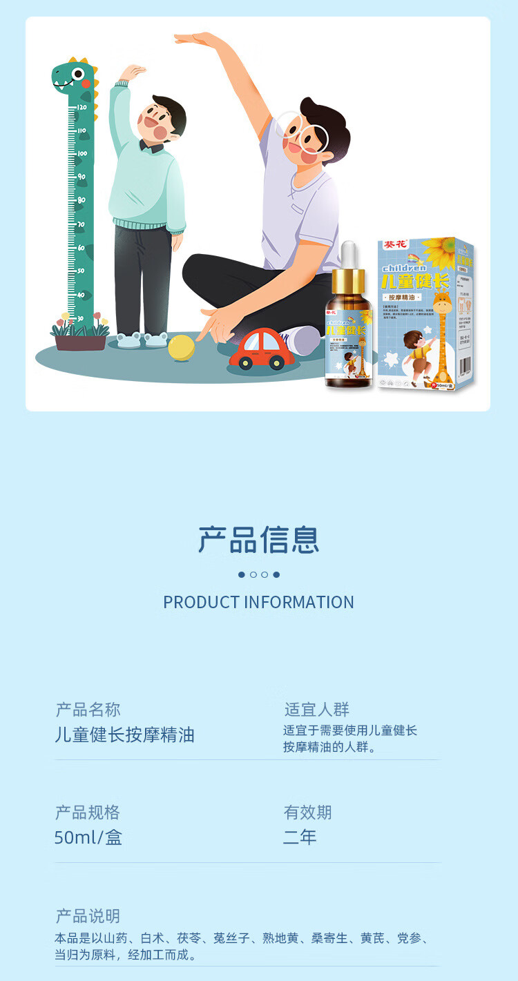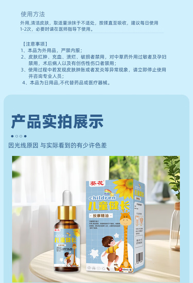 葵花儿童健长小儿推拿按摩精油青少年儿童助长增高生长专用温通健脾油 2瓶*100ML【突破新高度】