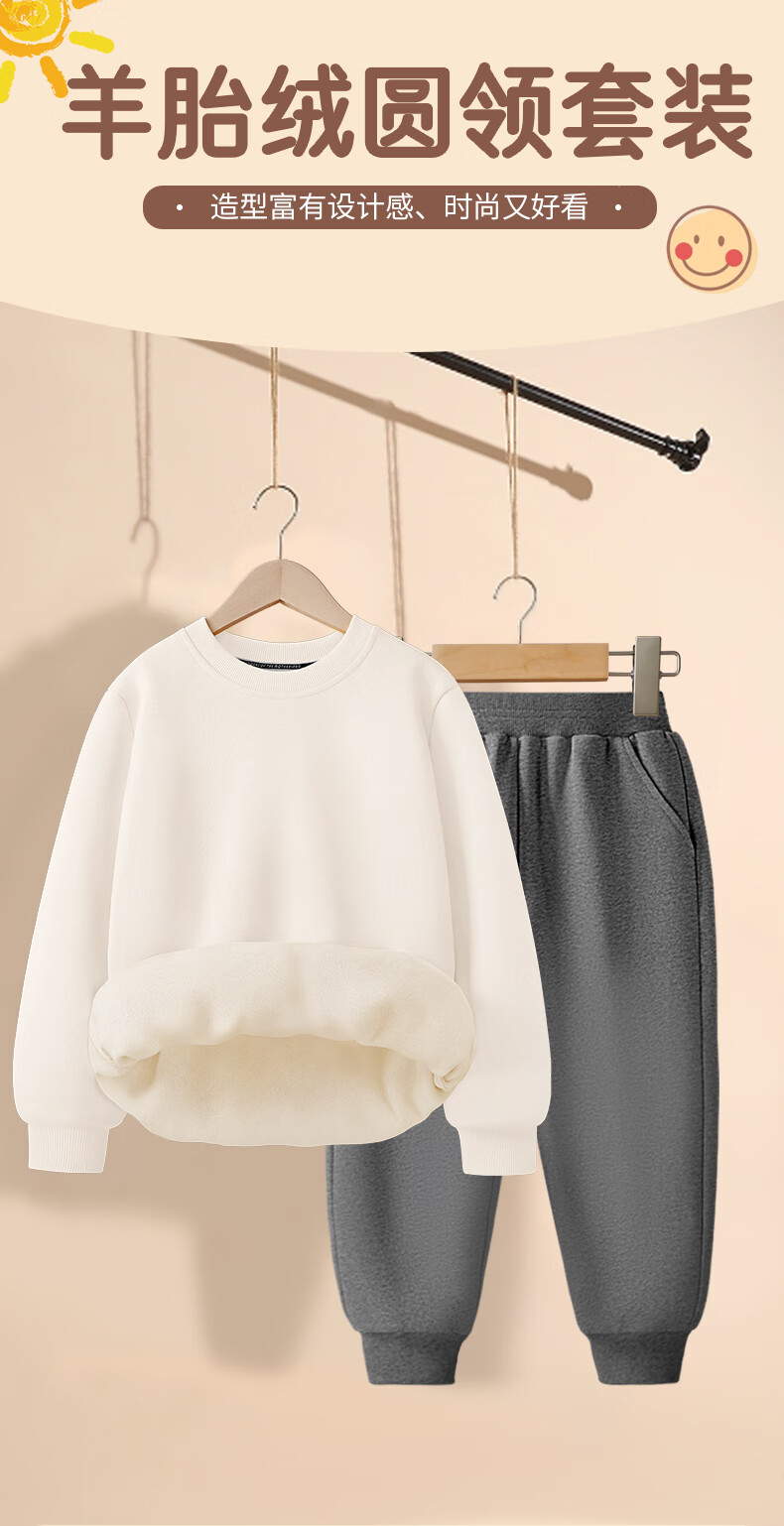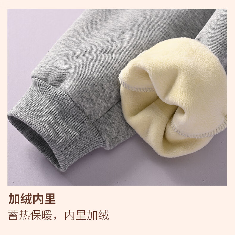 MARK FAIRWHALE2025冬季新款男女童加绒保暖羊胎绒·卫衣休闲舒适宽松卫裤套装 M潮流紫色+纯色花灰 110