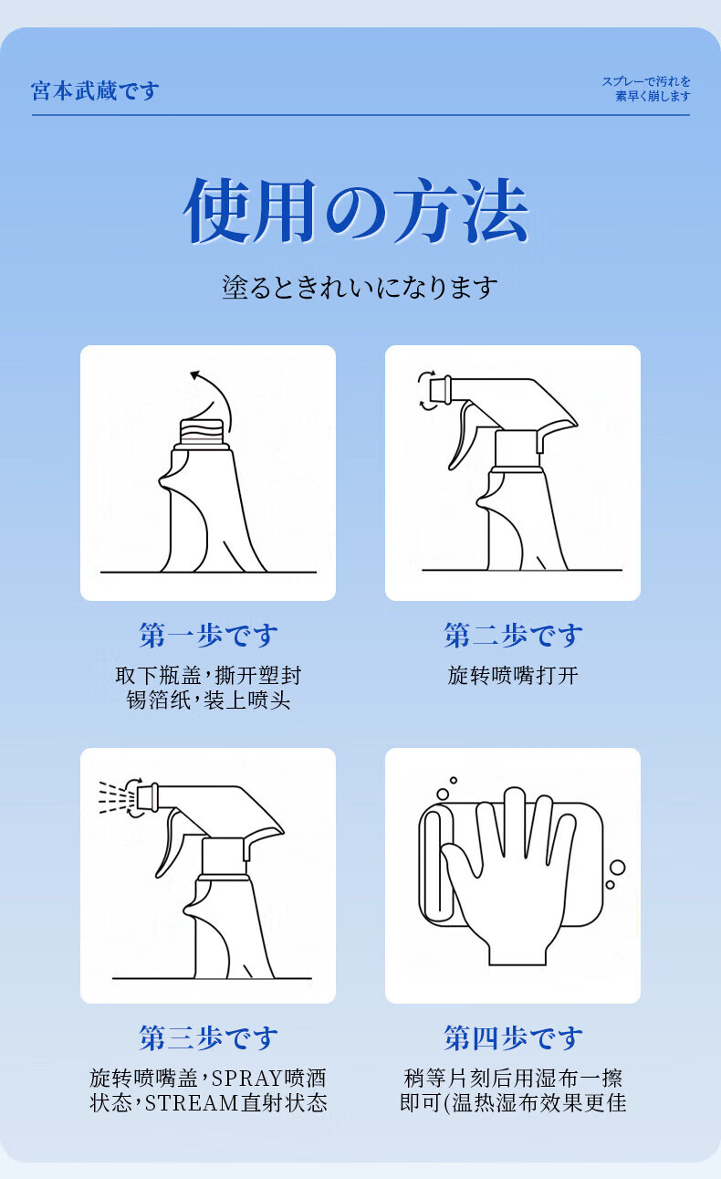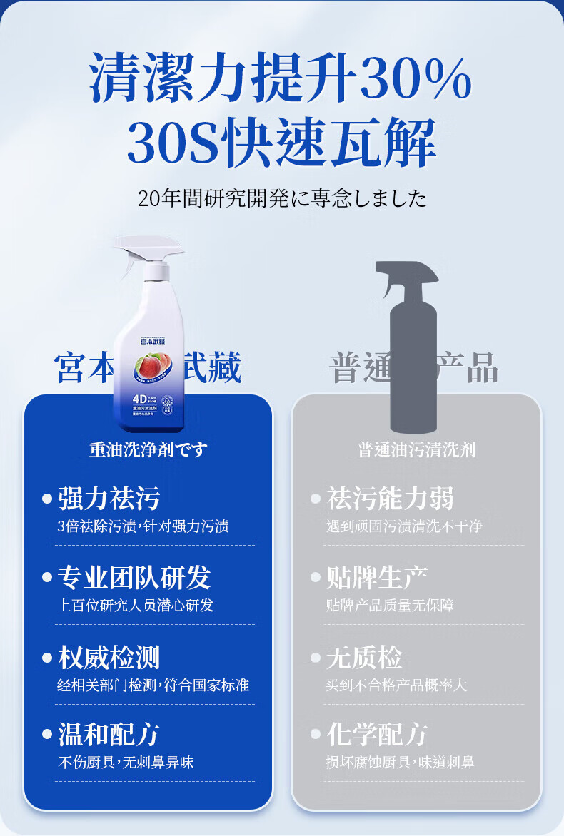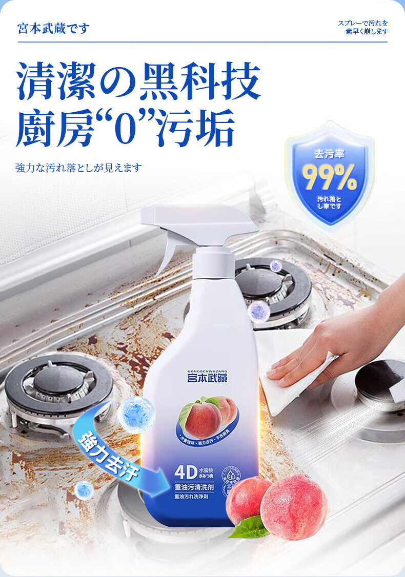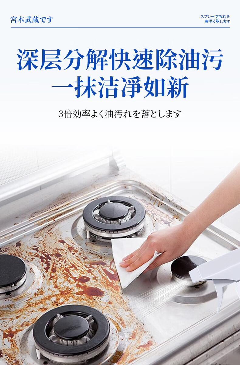 宫本武藏厨房清洁剂强力去重油污净多功能抽油烟机灶台喷雾清洗剂泡沫除垢 【油污克星】瓦解重油污450ml 1瓶