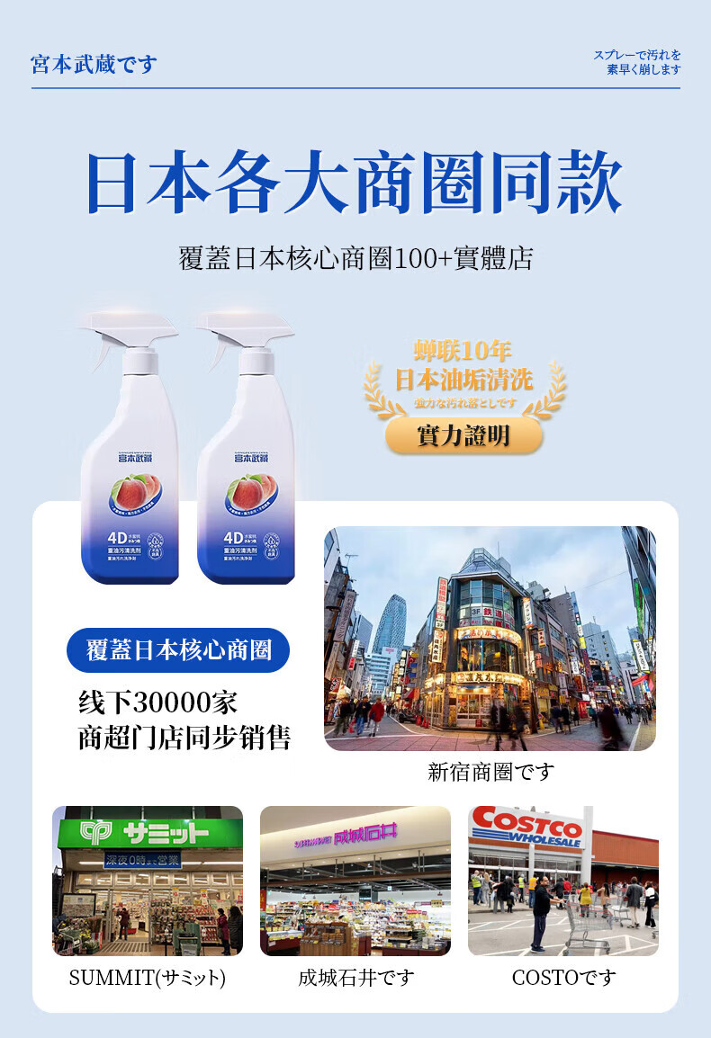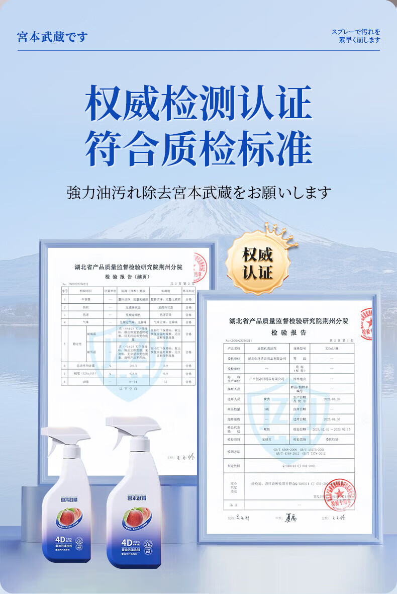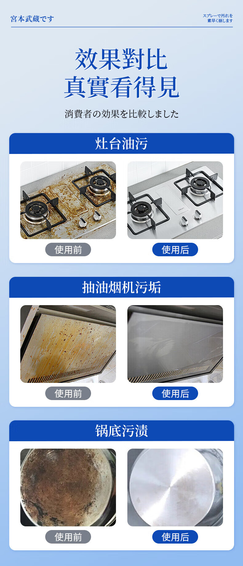 宫本武藏厨房清洁剂强力去重油污净多功能抽油烟机灶台喷雾清洗剂泡沫除垢 【油污克星】瓦解重油污450ml 1瓶