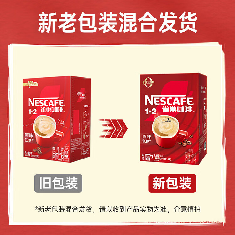 雀巢咖啡1+2原味三合一速溶咖啡粉醇香官方正品熬夜开车办公休闲 【100条】原味90+10条同款-礼袋款