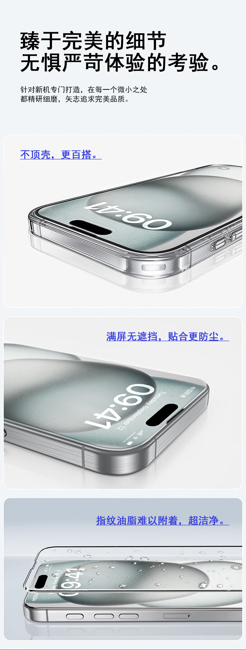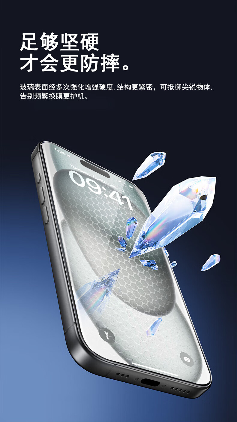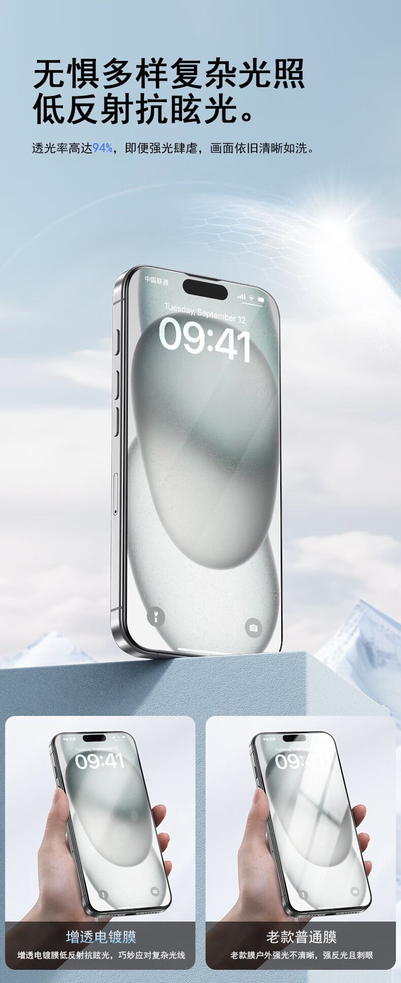 ALittleFlower【AR增透抗反光】适用iPhone15钢化膜苹果15手机膜AR增透全屏覆盖防摔防指纹高清保护贴膜2片+神器