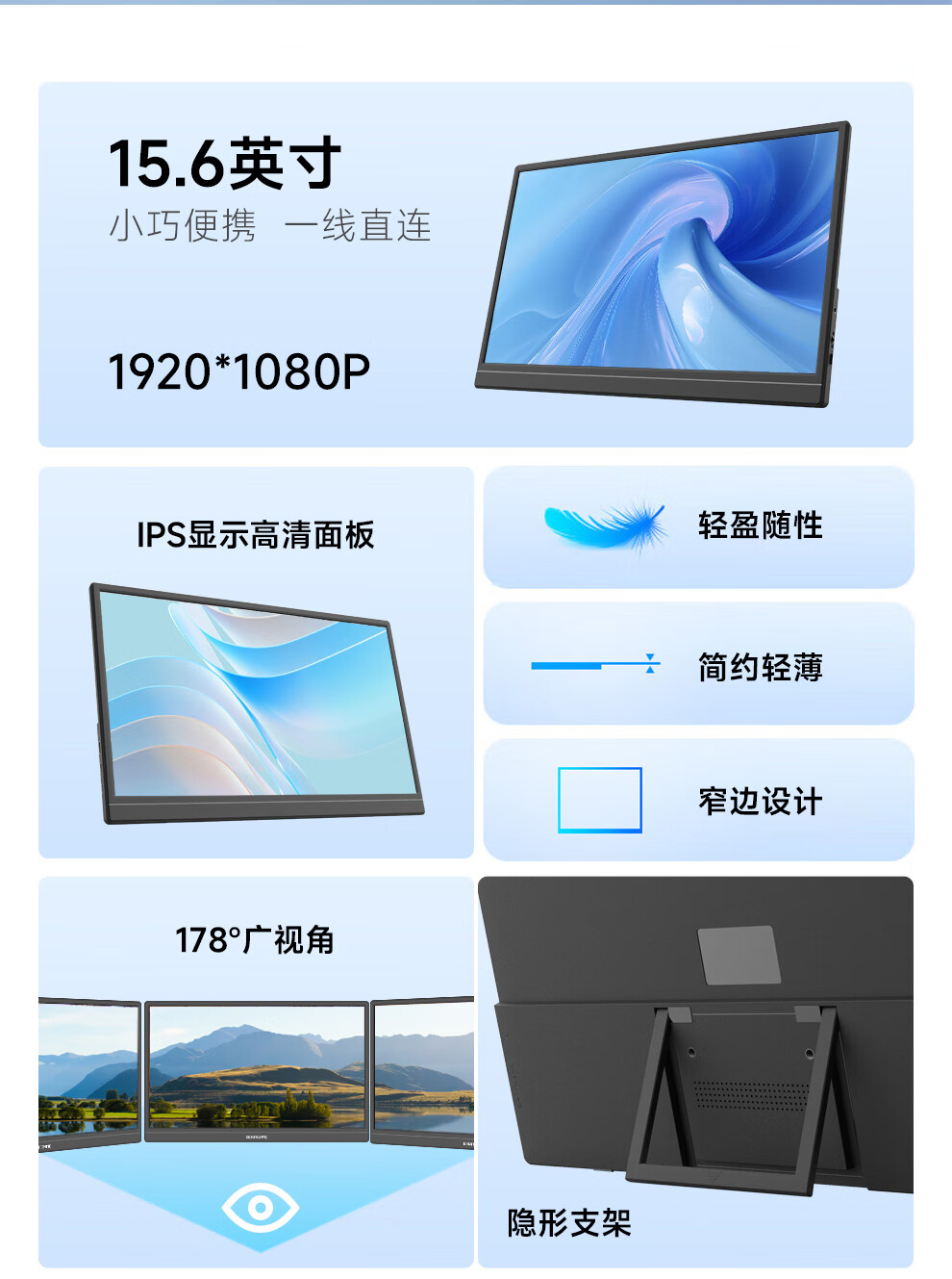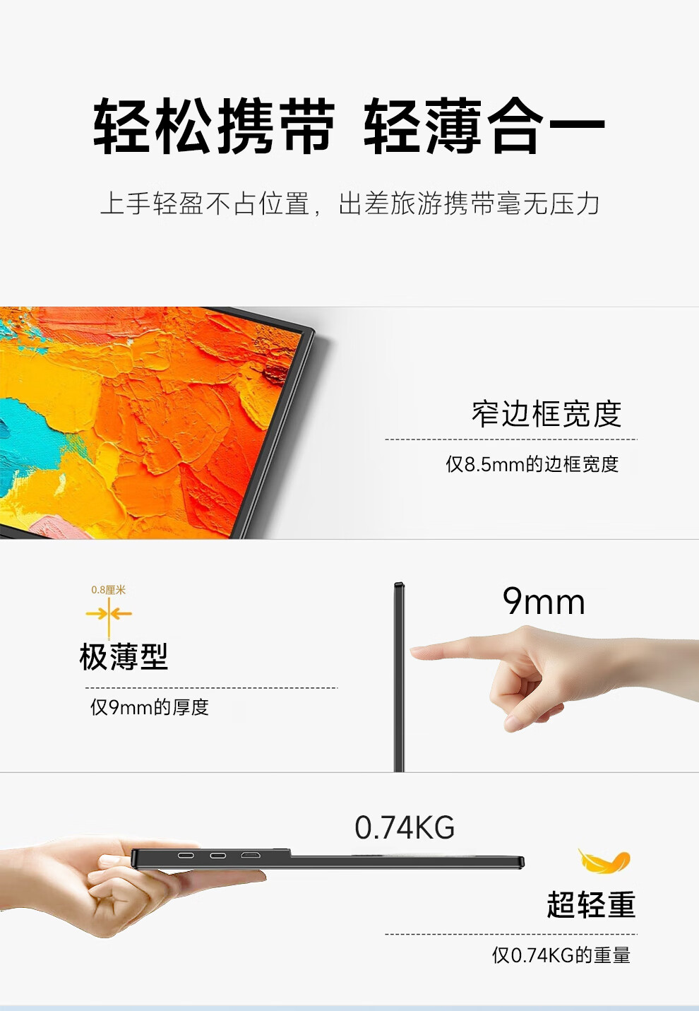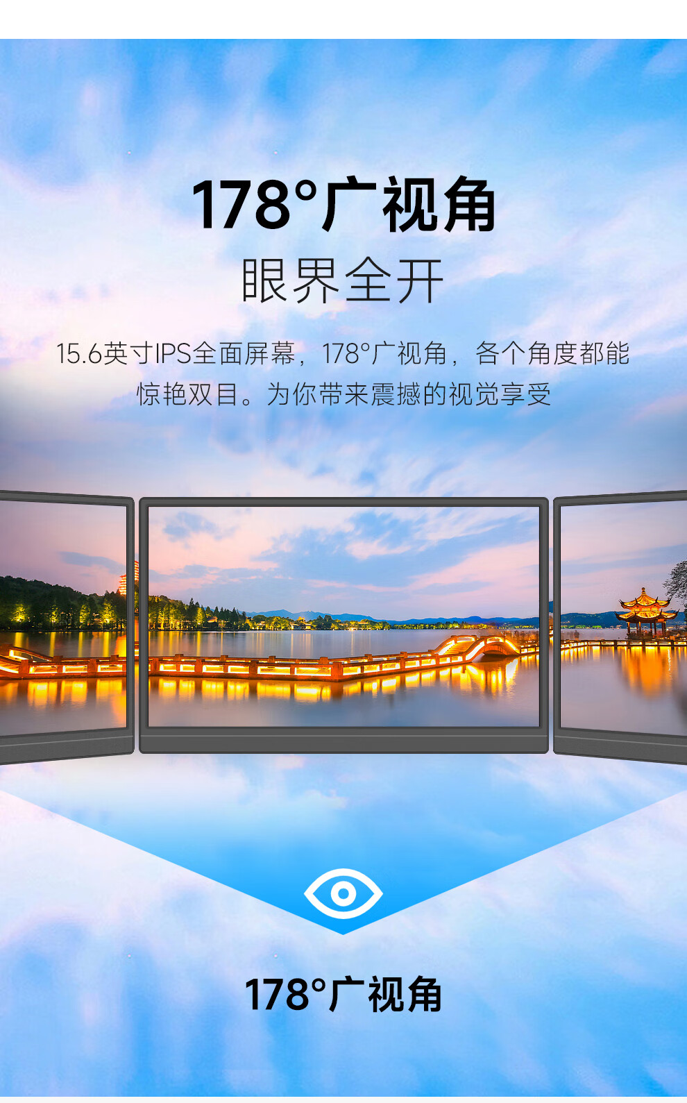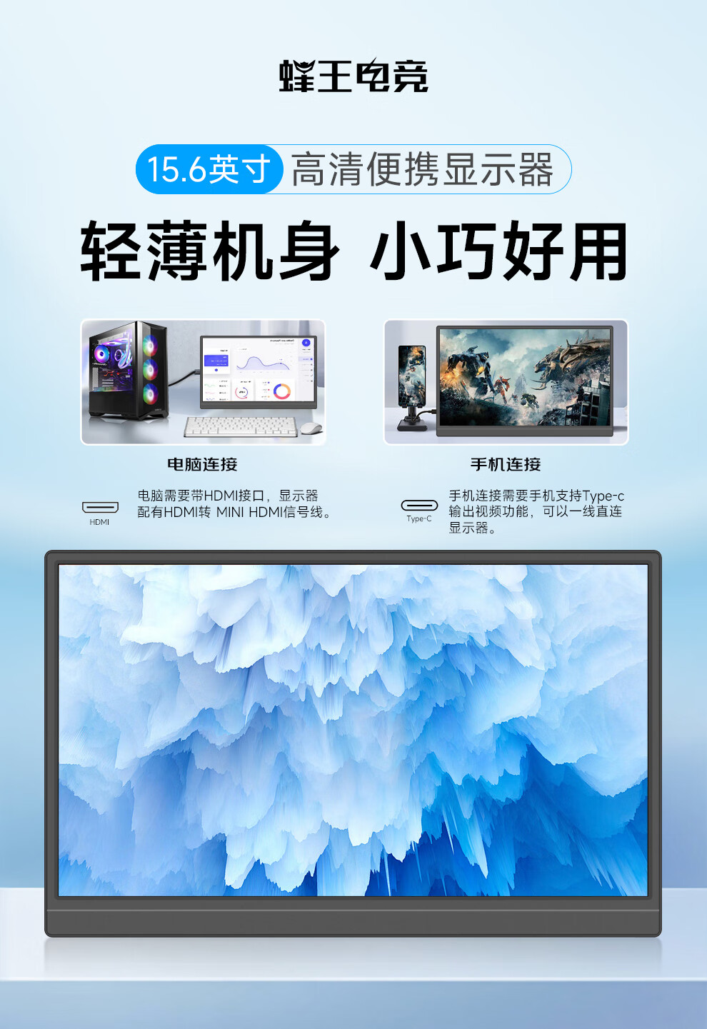 蜂王电竞便携显示器15.6英寸IPS办公高清显示屏电脑手机笔记本外接副屏扩展屏PS4/5 Switch Type-c接口