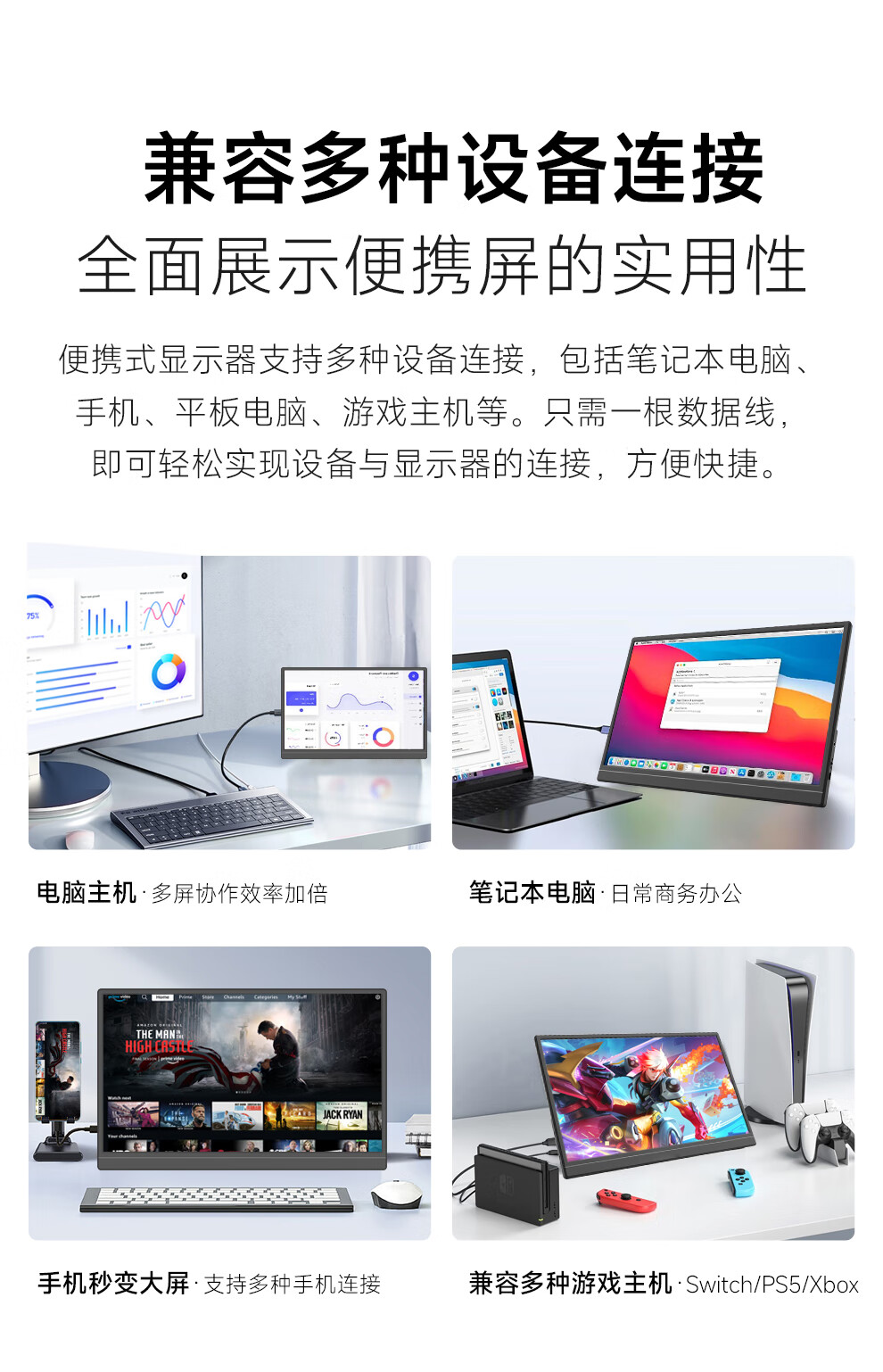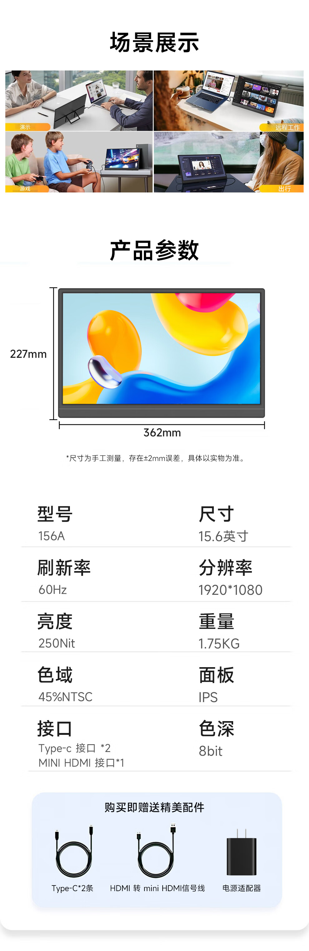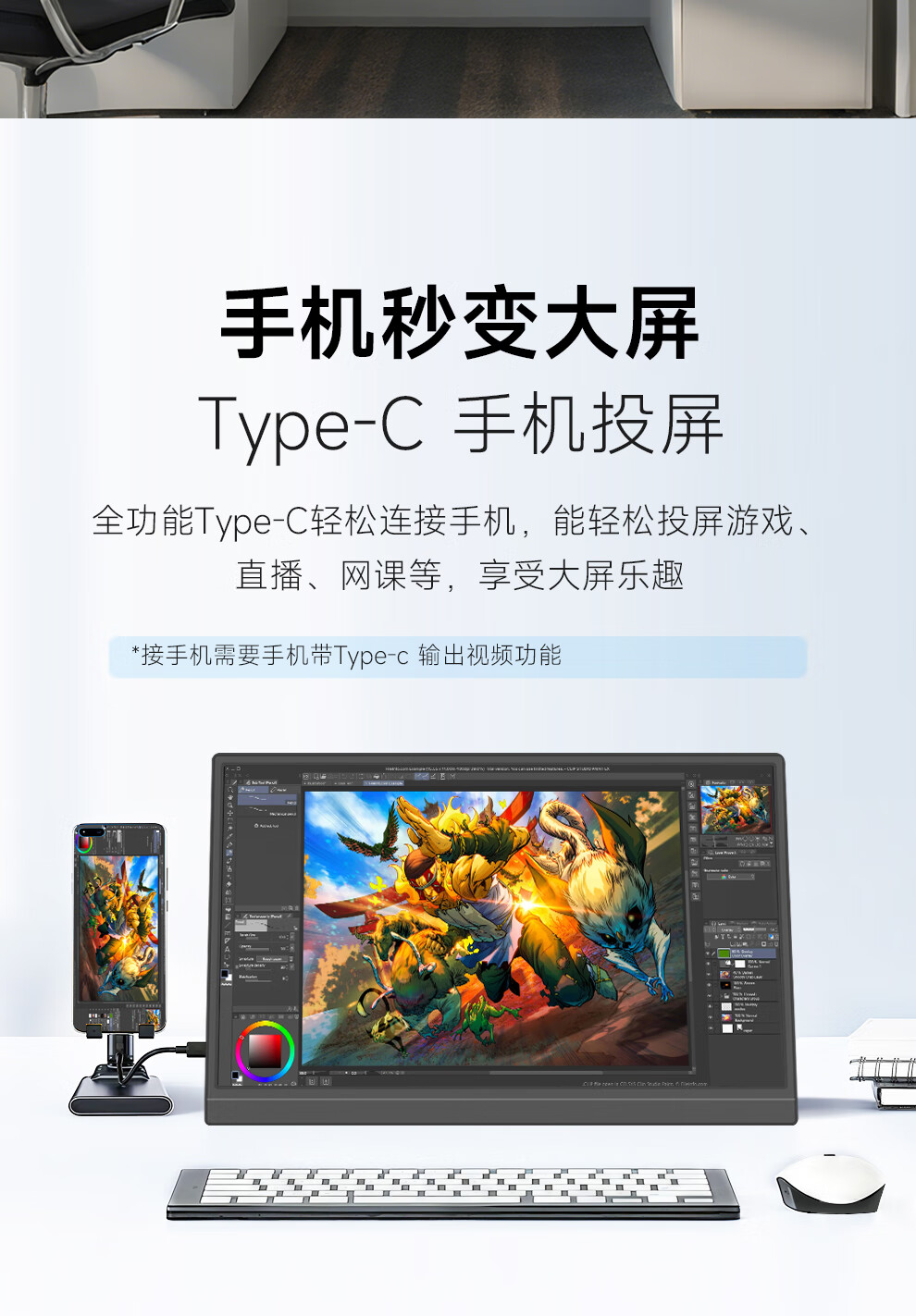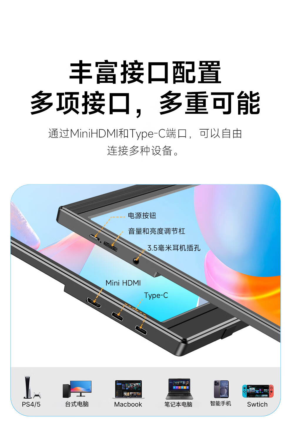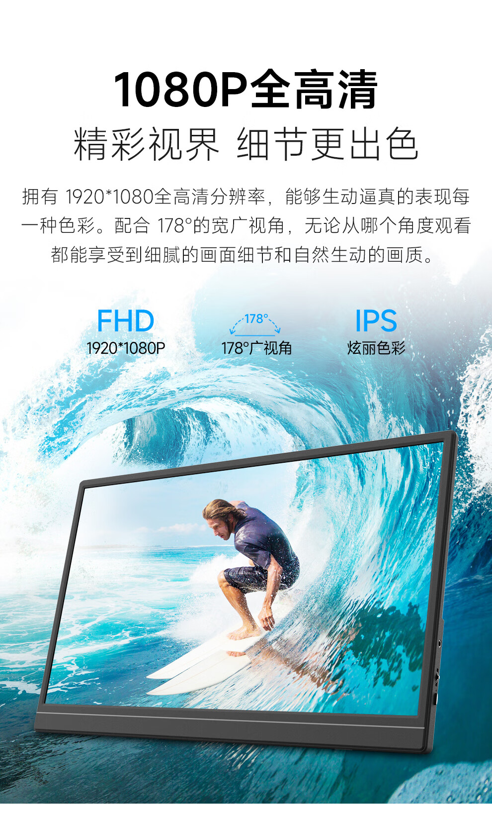 蜂王电竞便携显示器15.6英寸IPS办公高清显示屏电脑手机笔记本外接副屏扩展屏PS4/5 Switch Type-c接口