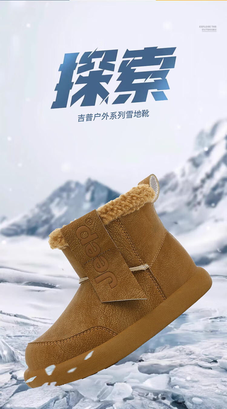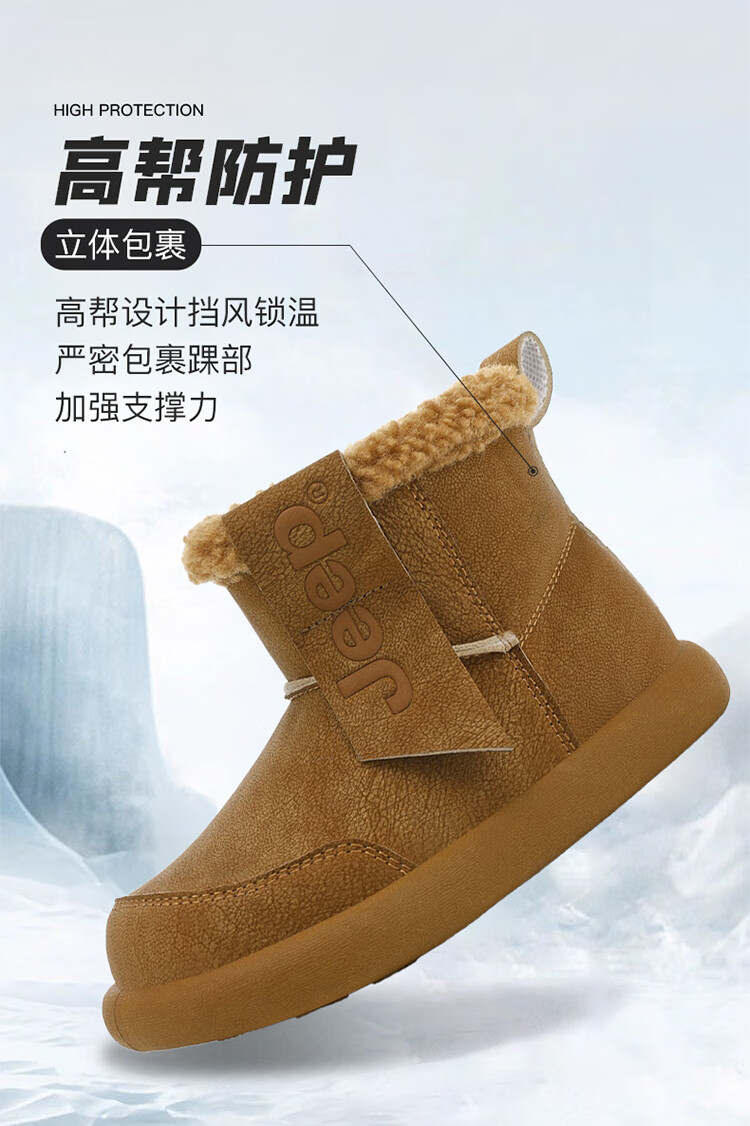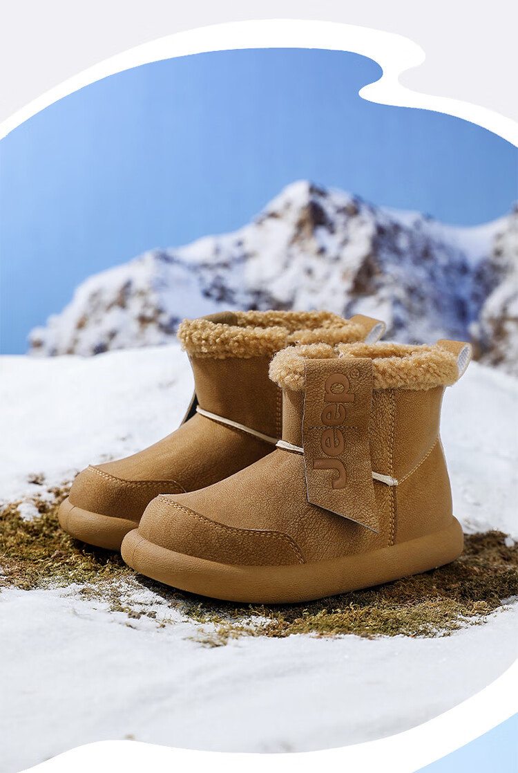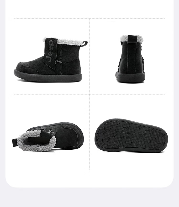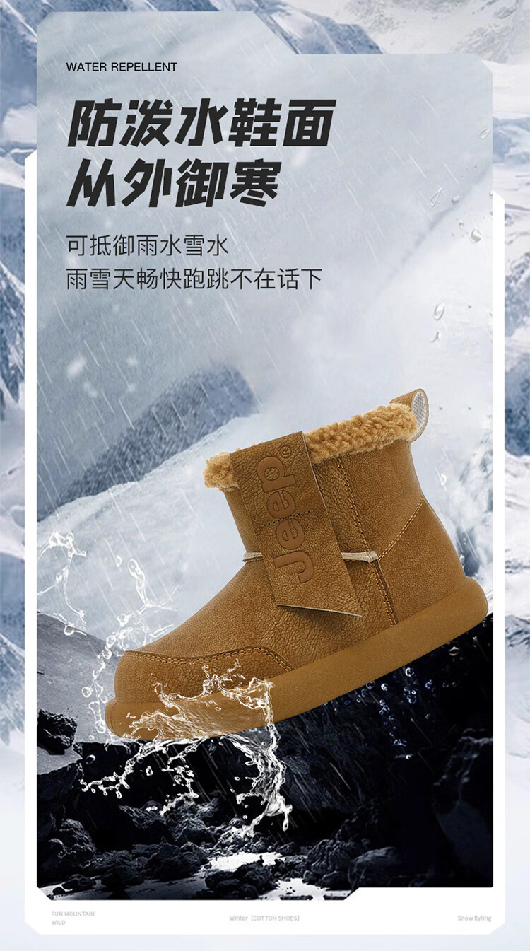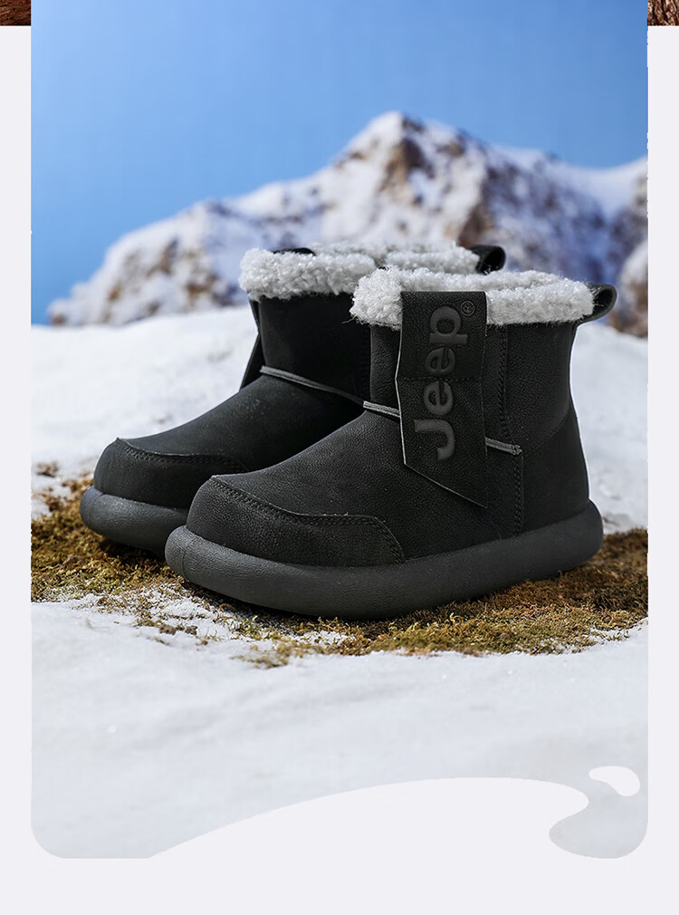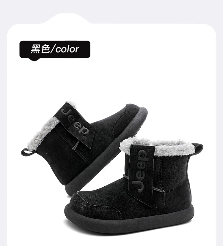 JEEP儿童雪地靴2025新款冬男童加绒棉靴子防滑加厚保暖东北大棉鞋 黑色 32