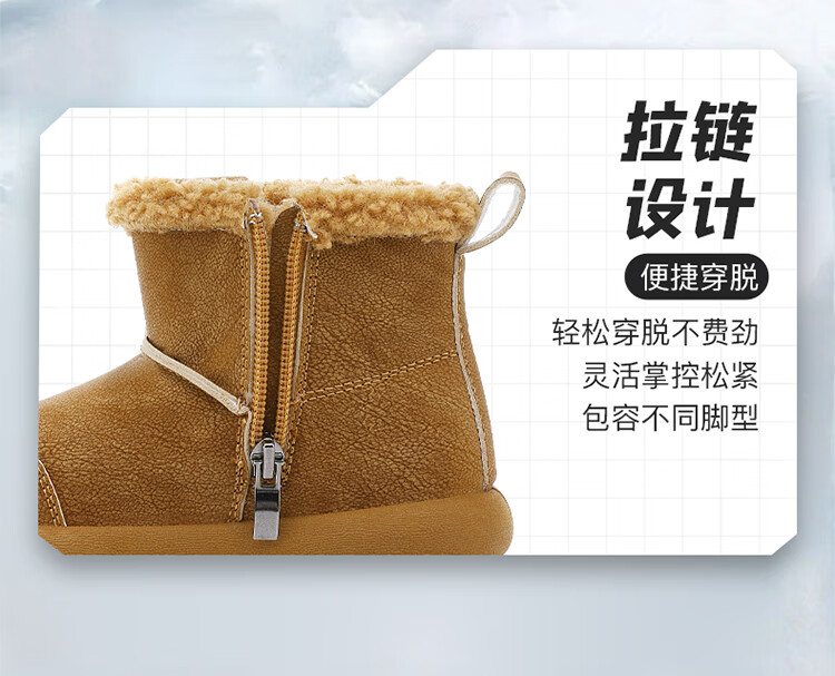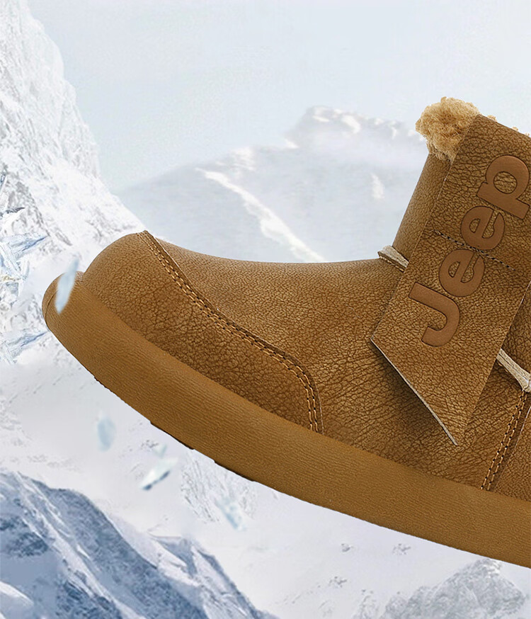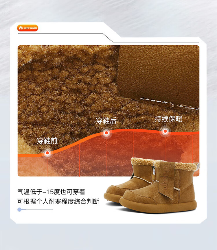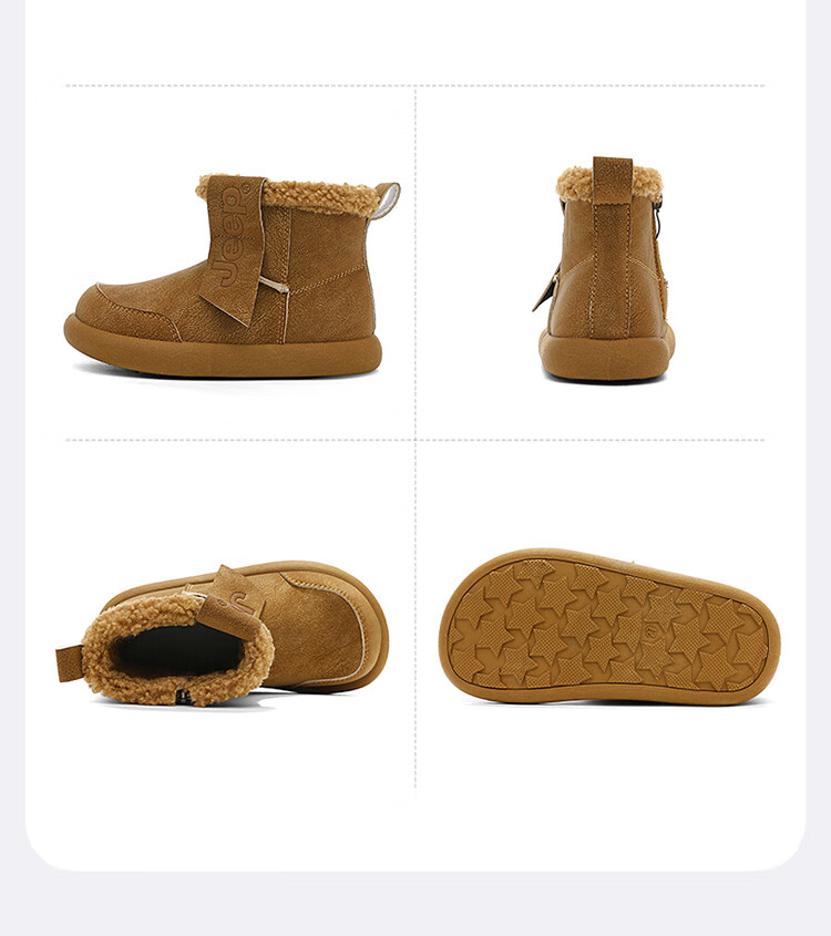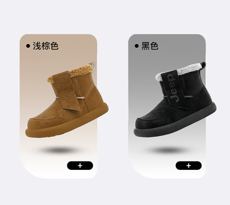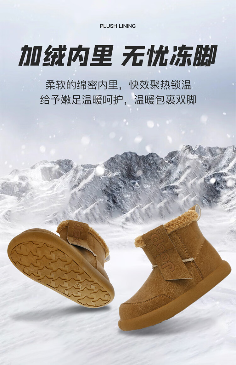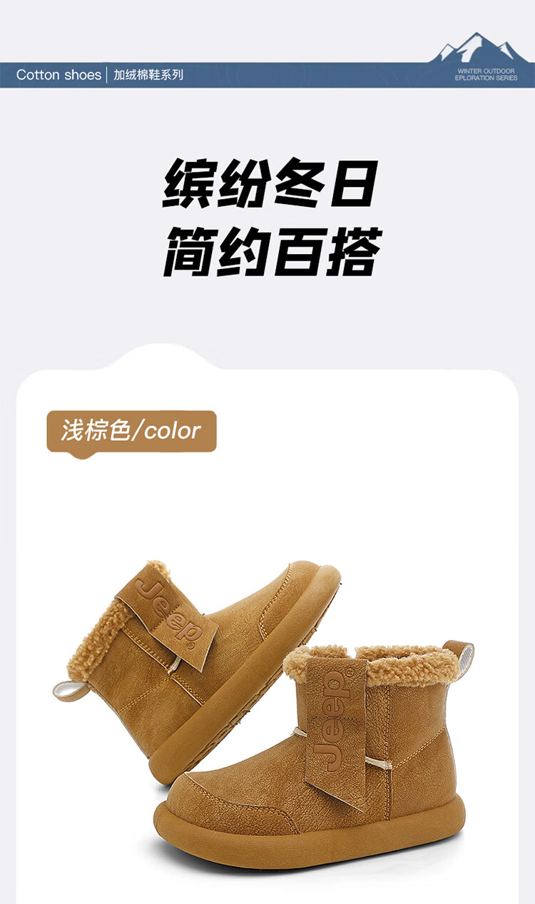JEEP儿童雪地靴2025新款冬男童加绒棉靴子防滑加厚保暖东北大棉鞋 黑色 32