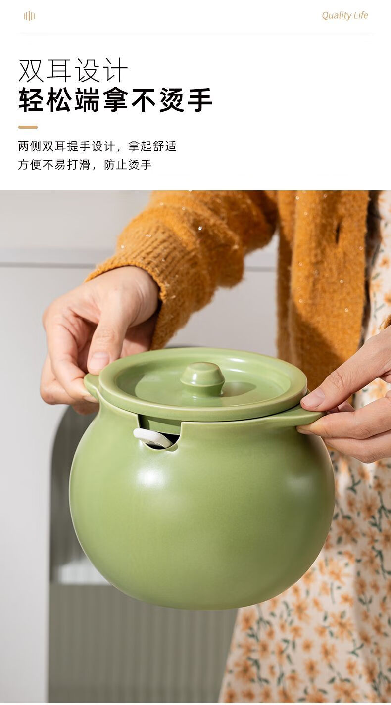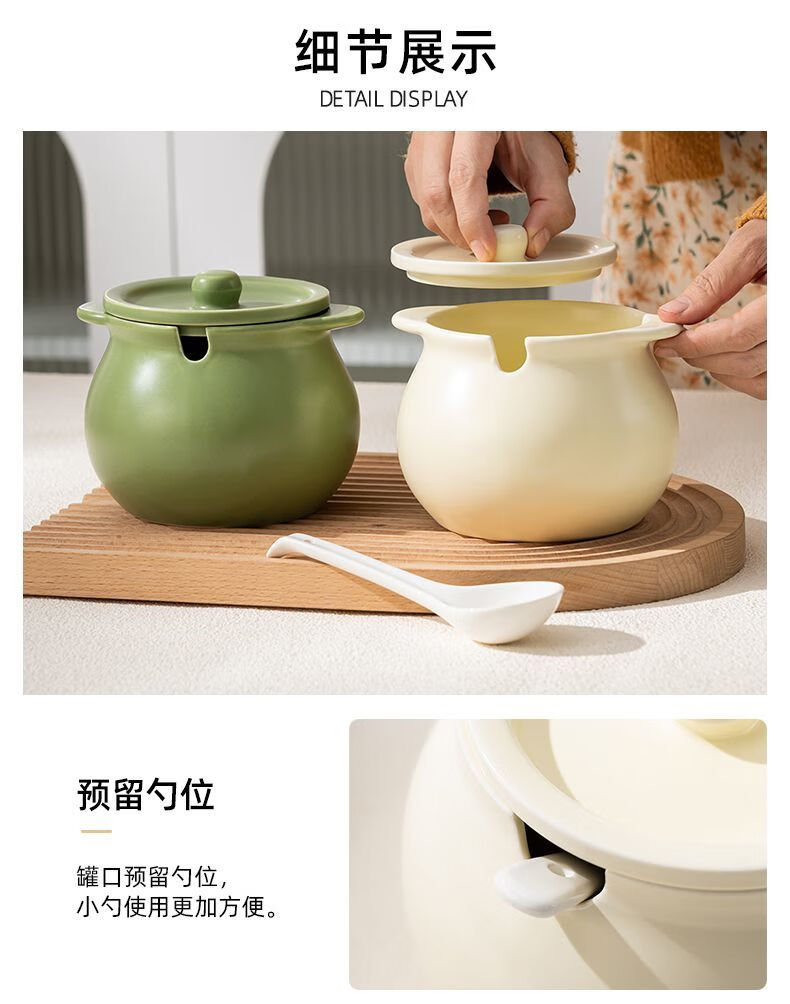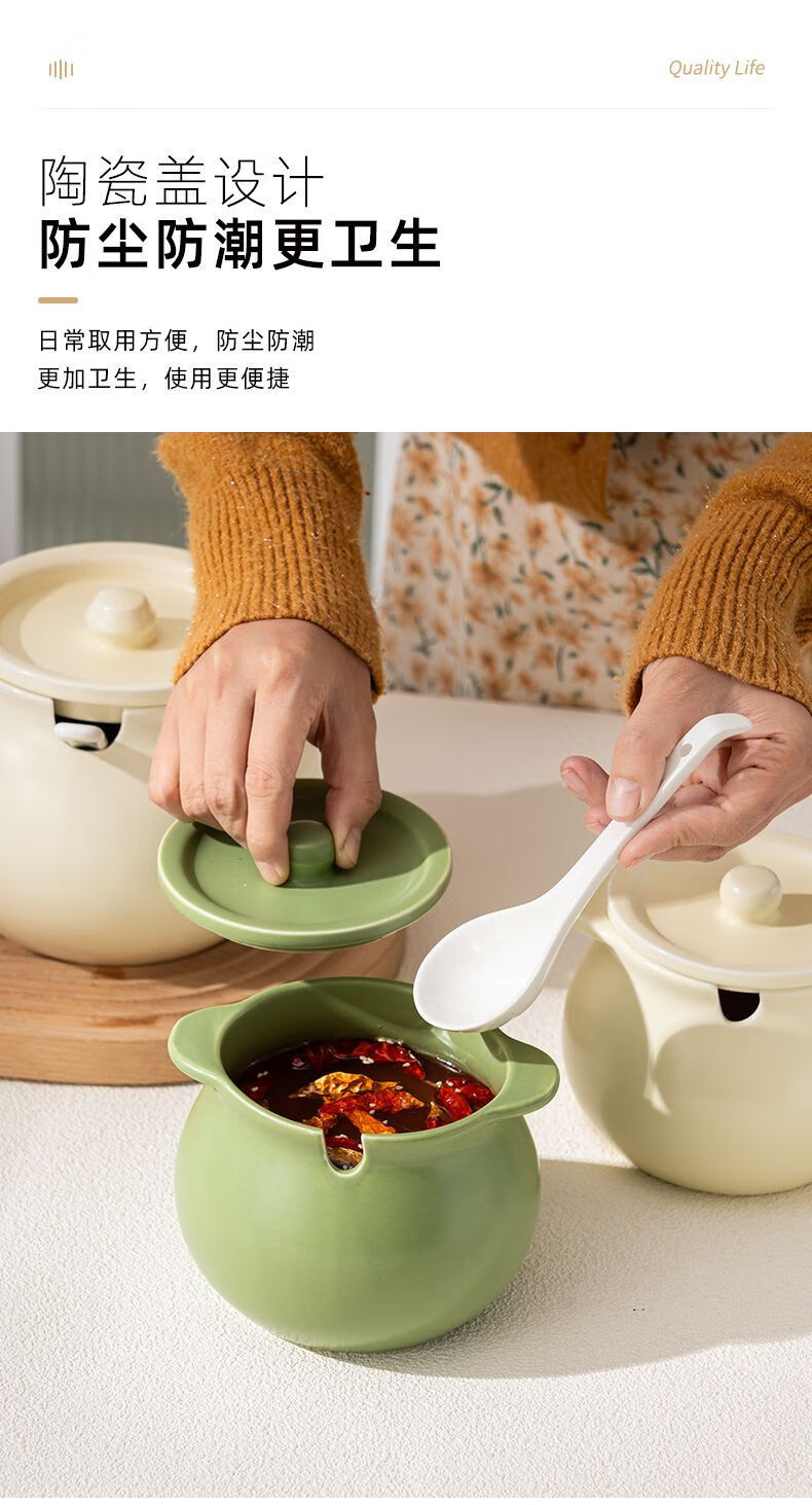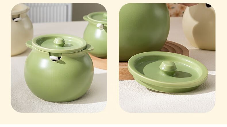 咏夏陶瓷猪油罐家用耐高温带盖荤油罐盆厨房装油罐的容器辣椒罐专用罐 奶油绿-小号/750毫升(微瑕)