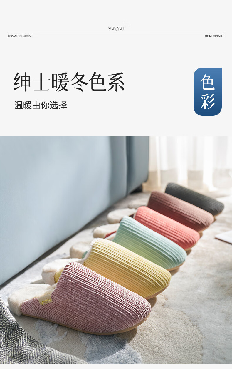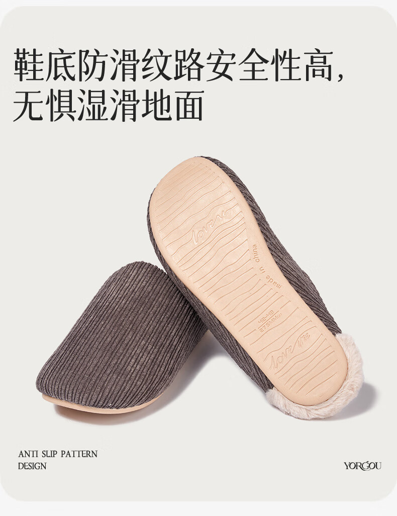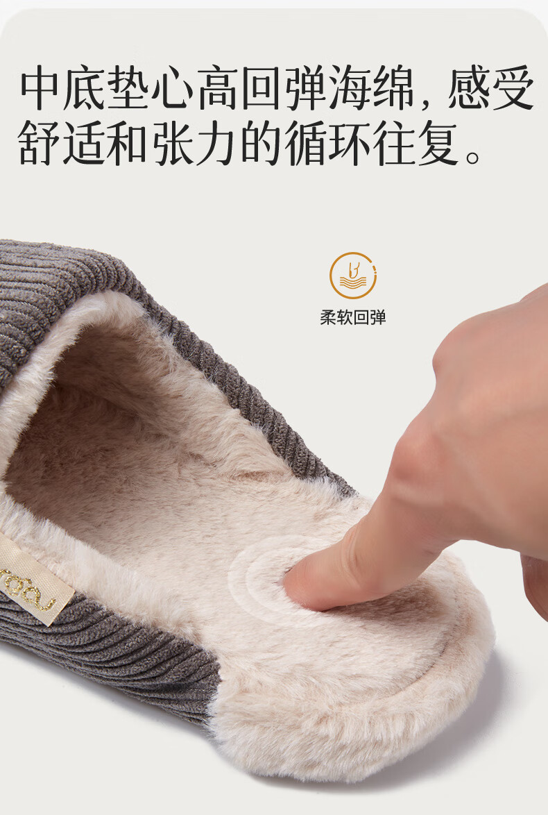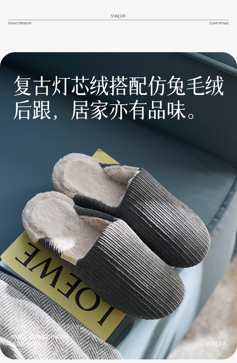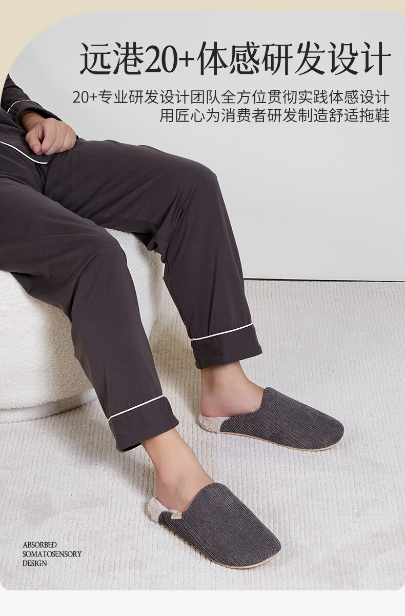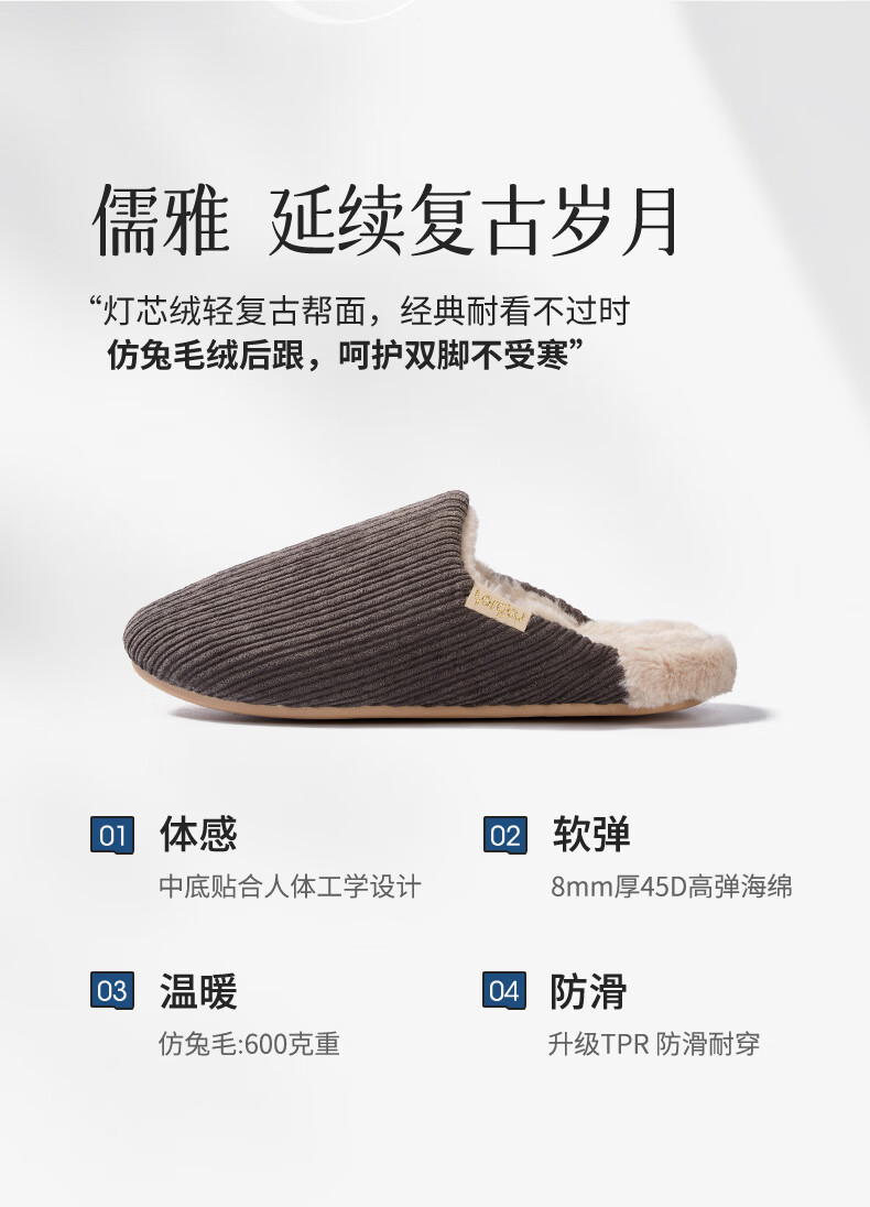 AILUKI日本男士灯芯绒棉拖鞋秋冬季保暖室内大码家居家用防滑毛绒男冬天 深空灰 40-41 (适合脚39-40)