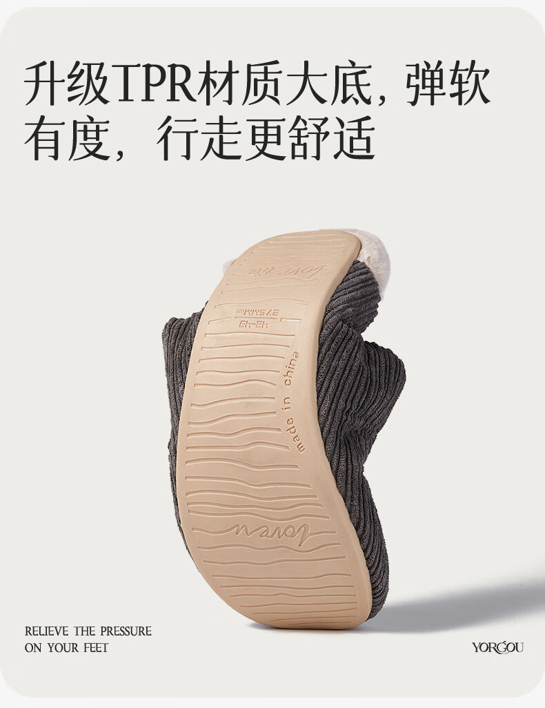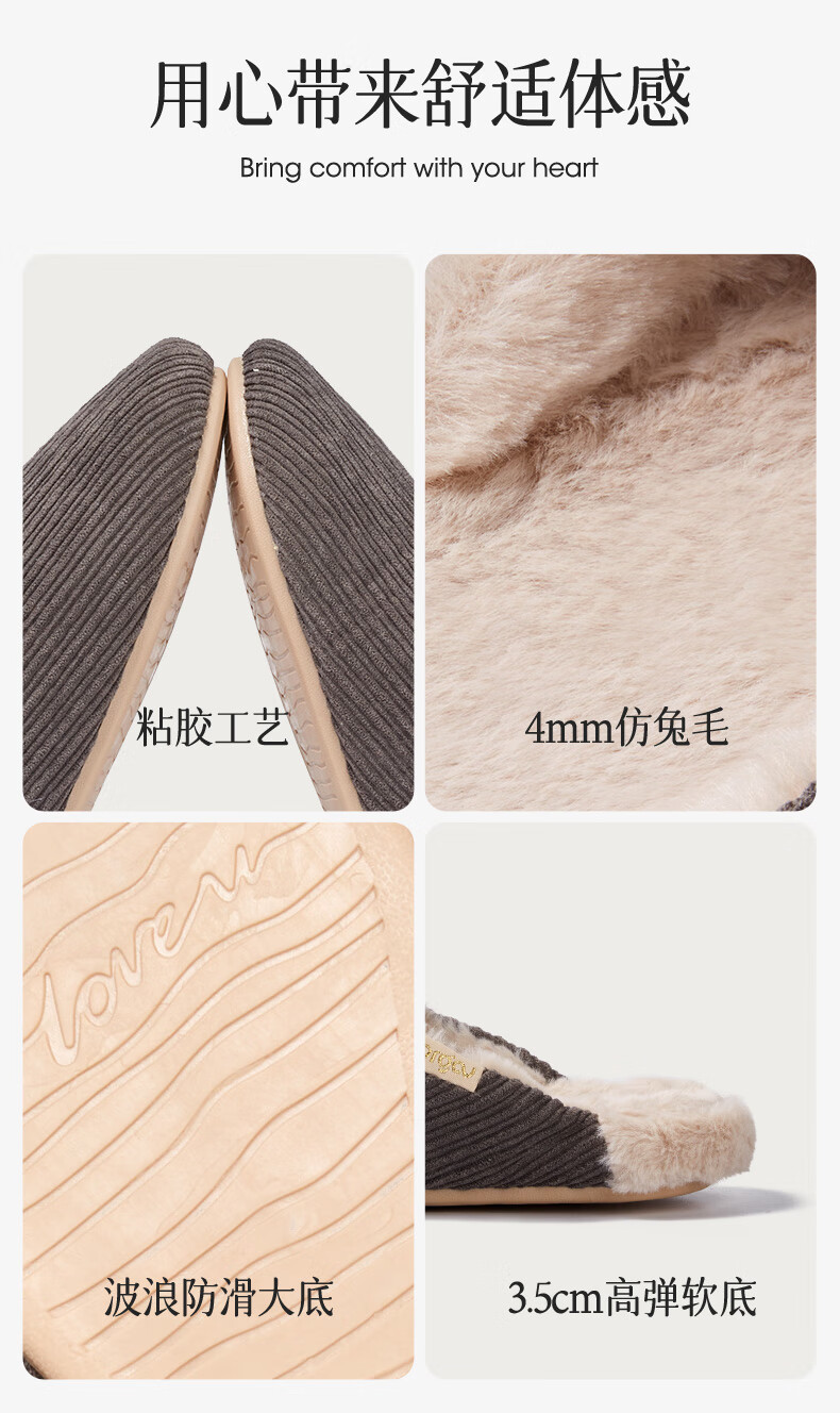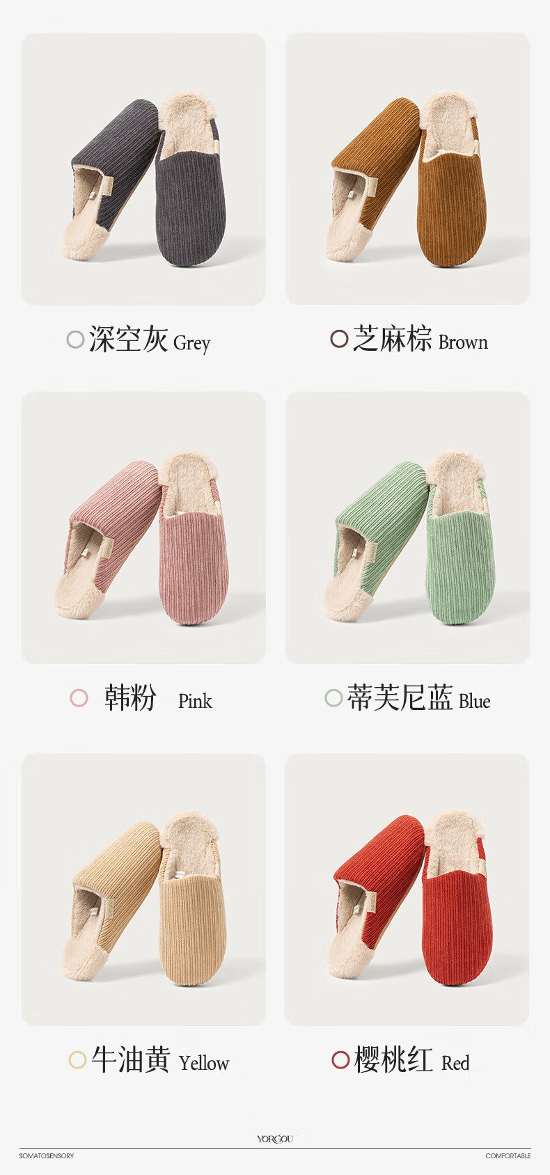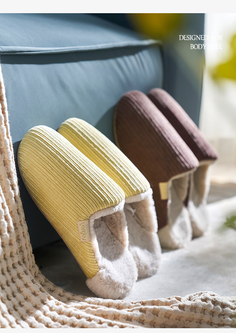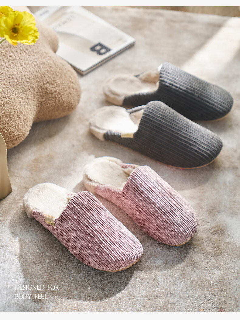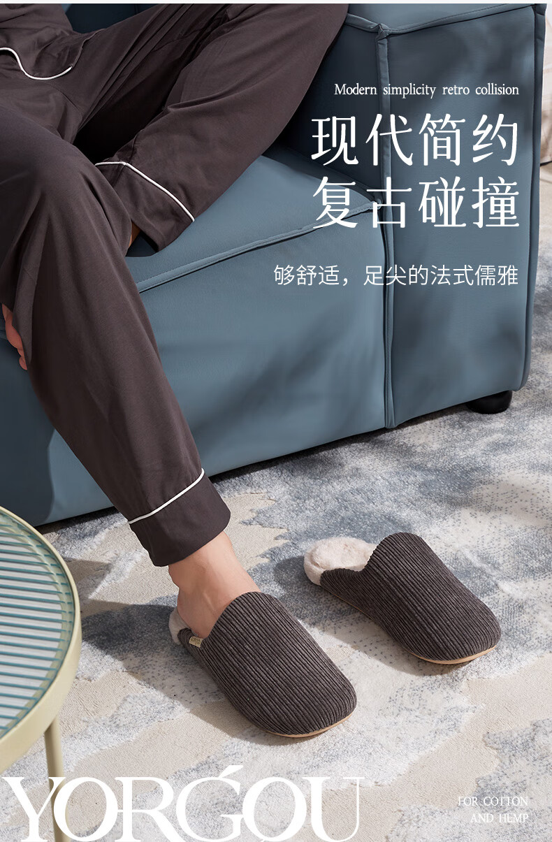 AILUKI日本男士灯芯绒棉拖鞋秋冬季保暖室内大码家居家用防滑毛绒男冬天 深空灰 40-41 (适合脚39-40)
