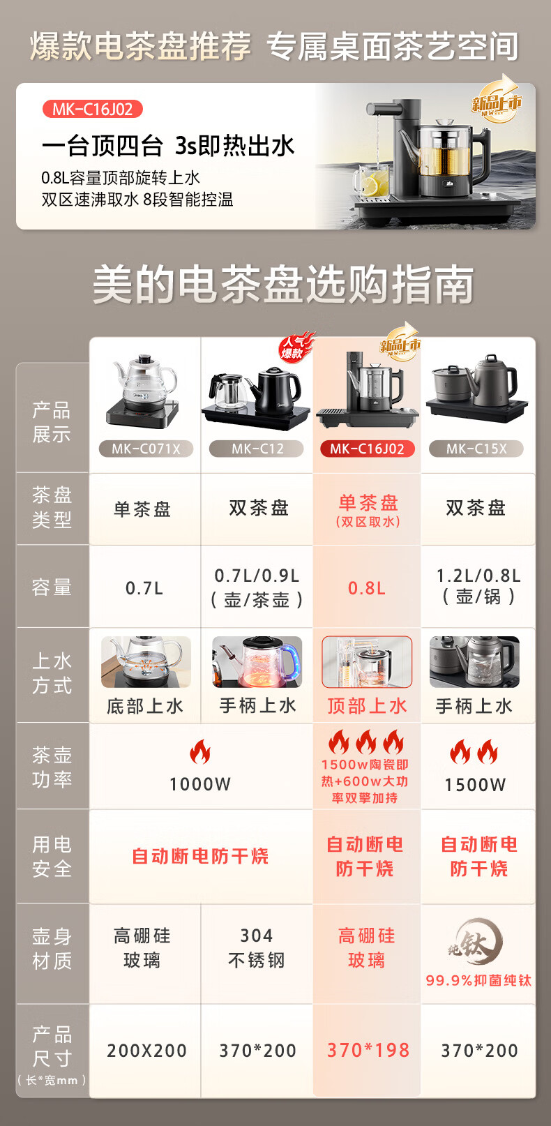 美的(Midea)煮茶器 智能自动上水电热水壶 家用烧水壶 泡茶 开水壶 电茶炉 茶具 自动断电茶台MK-C071X
