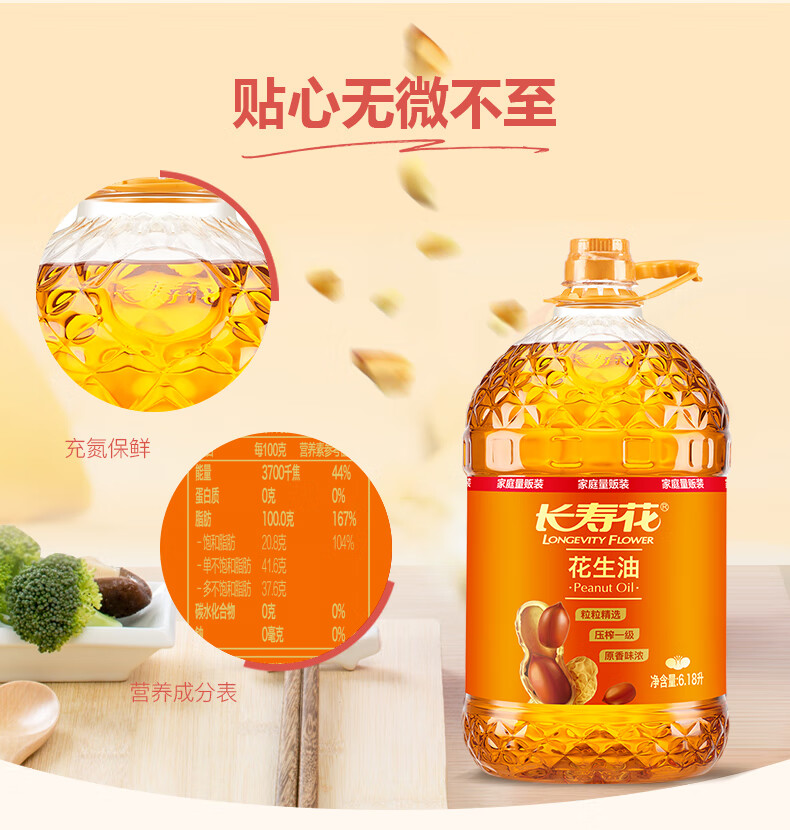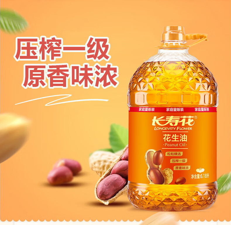 长寿花【保真花生油】花生油6.18L 食用油 压榨一级热门商品