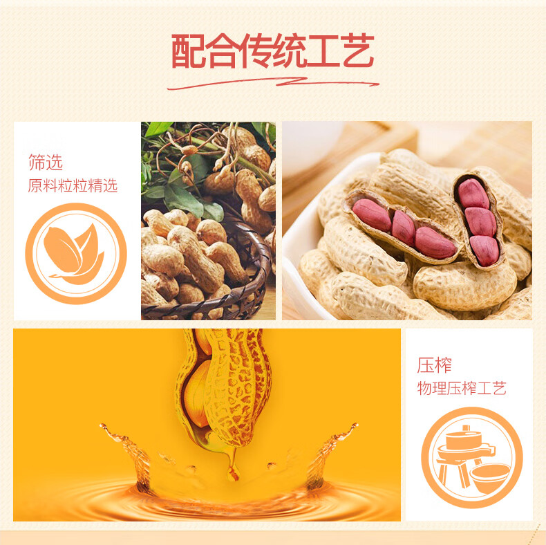 胡姬花古法小榨花生油4.632L组合(4L+158ml*4) 大桶装一级压榨食用油 4L*1桶 +158ml*4瓶