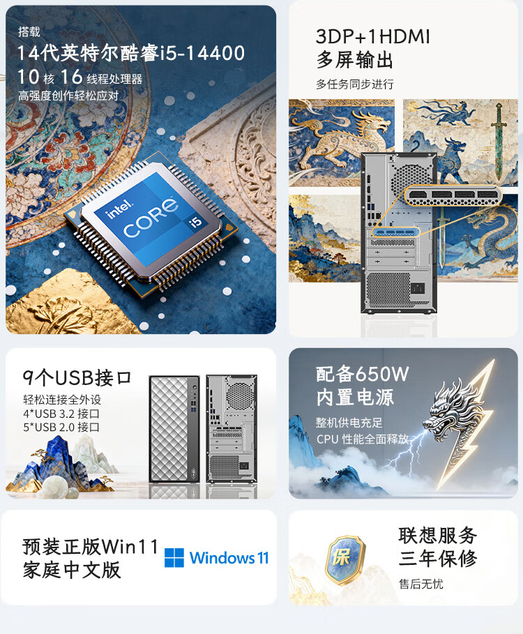 联想瑞天900 设计师台式电脑游戏主机(14代i5-14400 RTX5060 8G显卡 32G DDR5 1TB SSD Win11)国家补贴