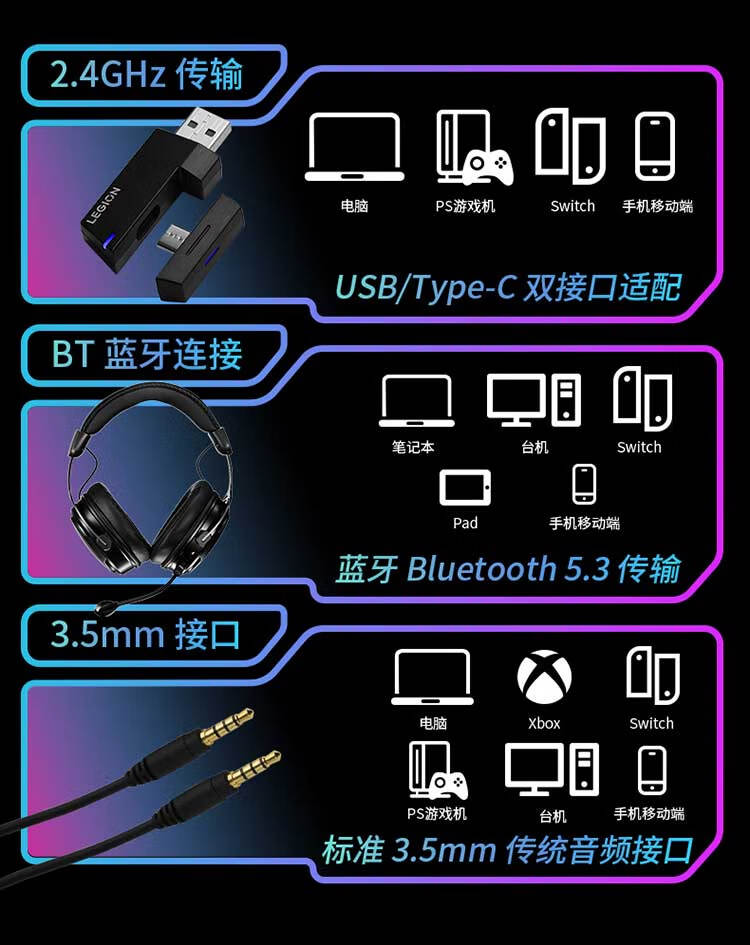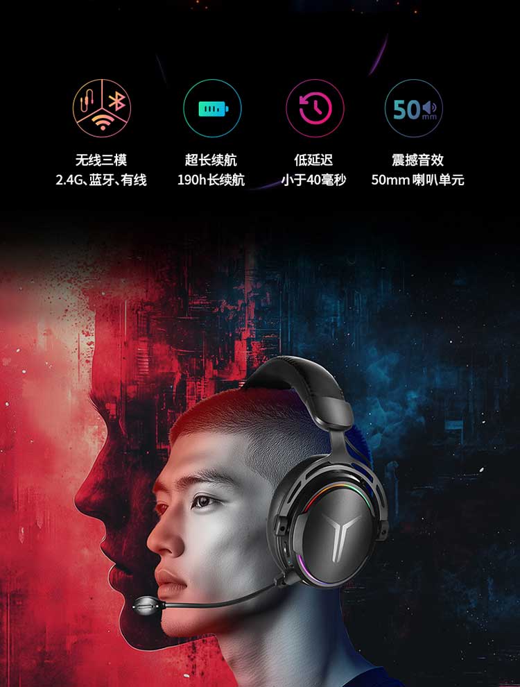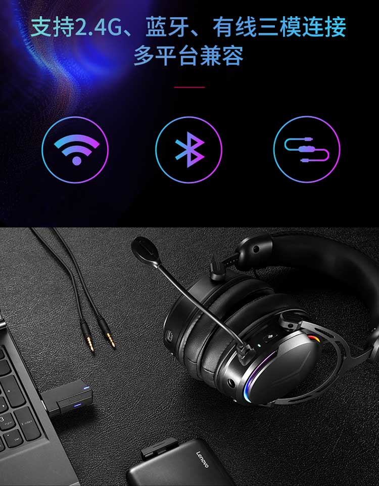 联想(Lenovo)拯救者无线蓝牙游戏耳机Y370 2.4G有线无线蓝牙游戏耳机三模头戴式游戏电脑耳麦畅玩LOL黑神话悟空