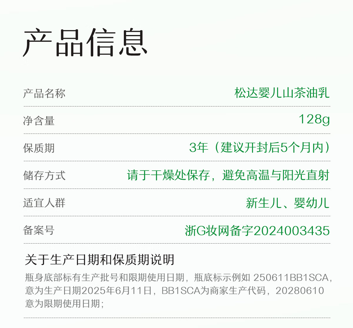 松达婴儿身体乳儿童护肤山茶油润肤乳保湿补水秋冬季宝宝身体乳面霜 【热卖爆款】乳液128g