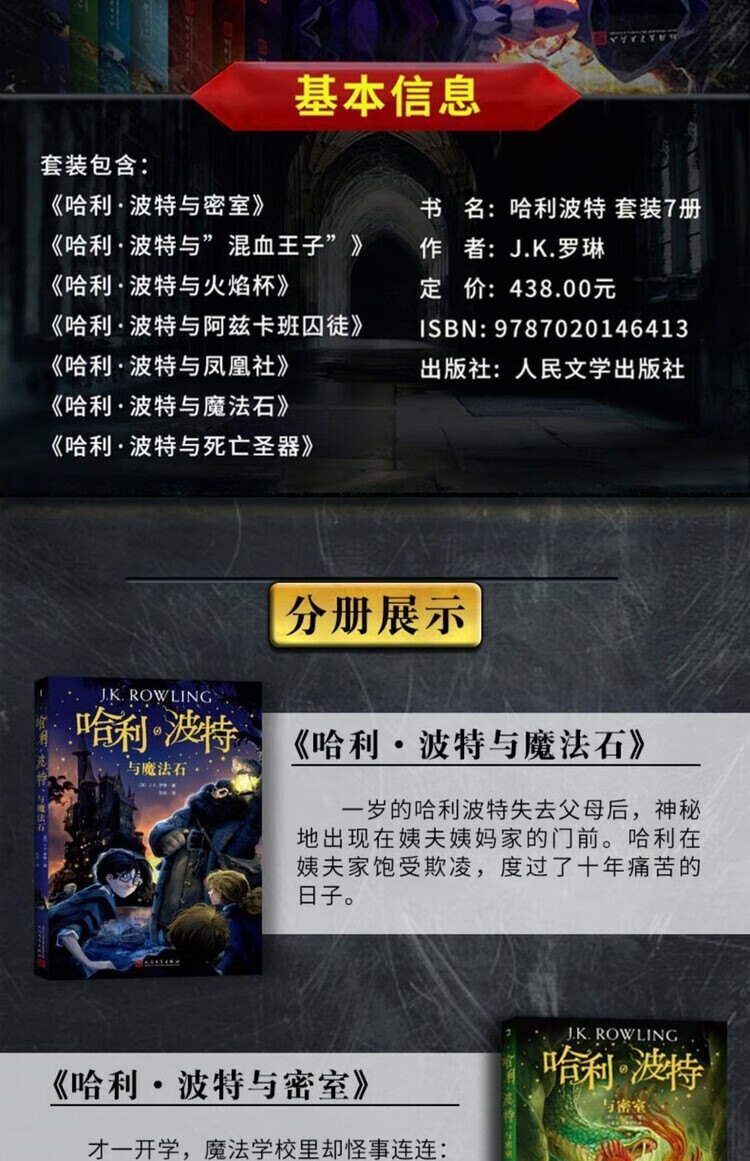 哈利波特全套1-8册中文版哈利波特8册哈利波特书全套 哈利波特1-8册全套 哈利波特中文版1-8册无礼盒