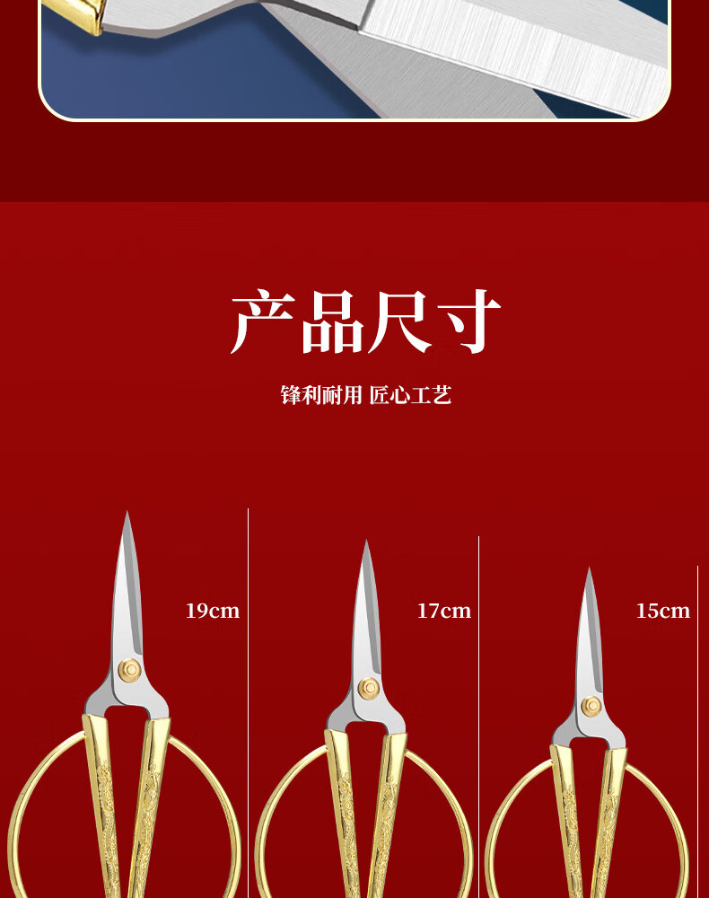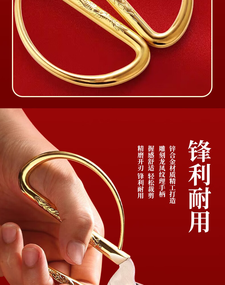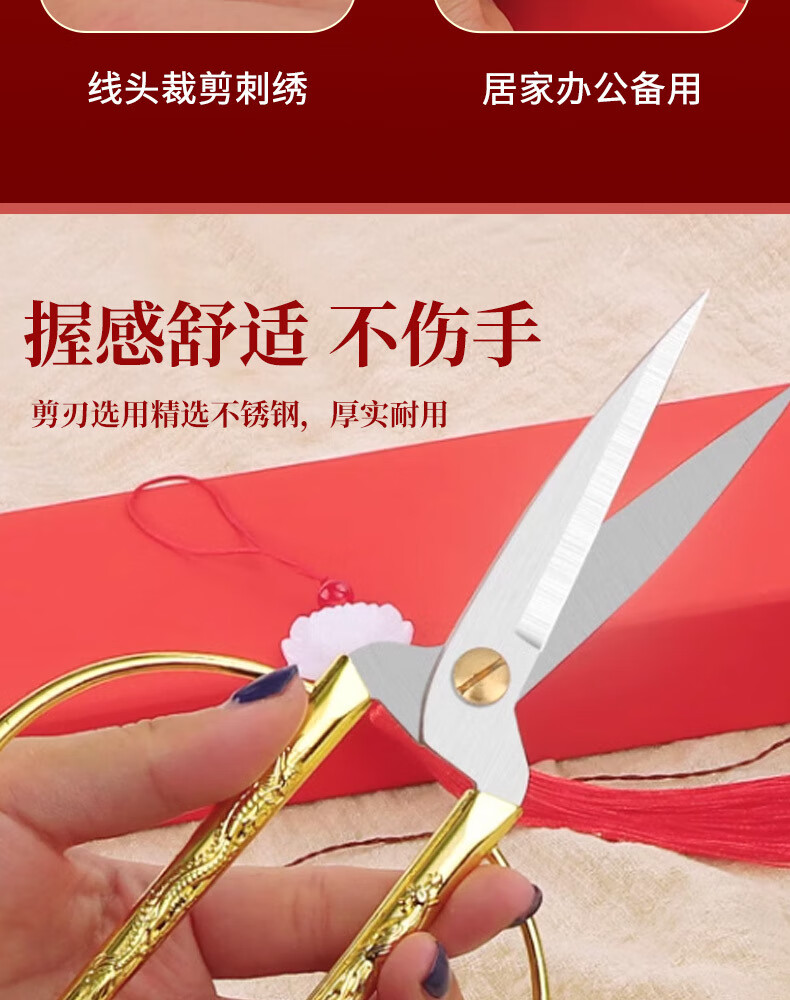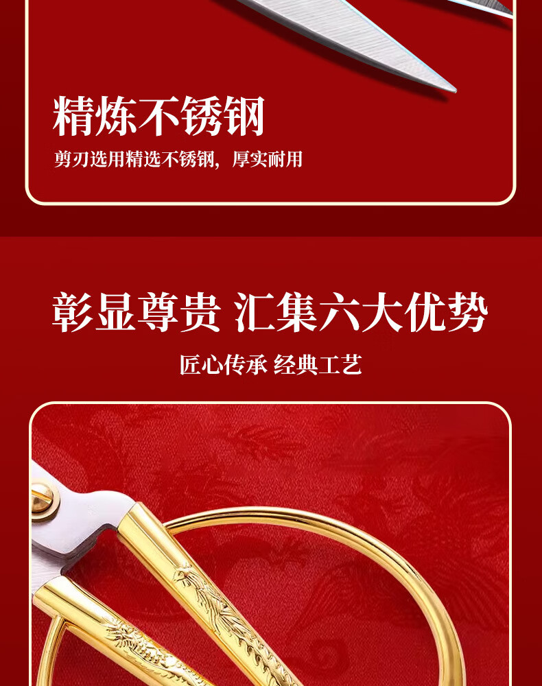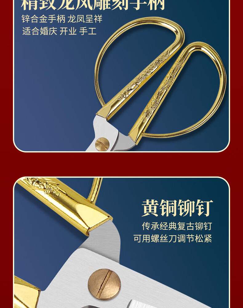 不锈钢龙凤剪刀家用缝纫裁缝复古小剪刀开业剪彩喜庆合金龙凤剪子 大号-龙凤剪