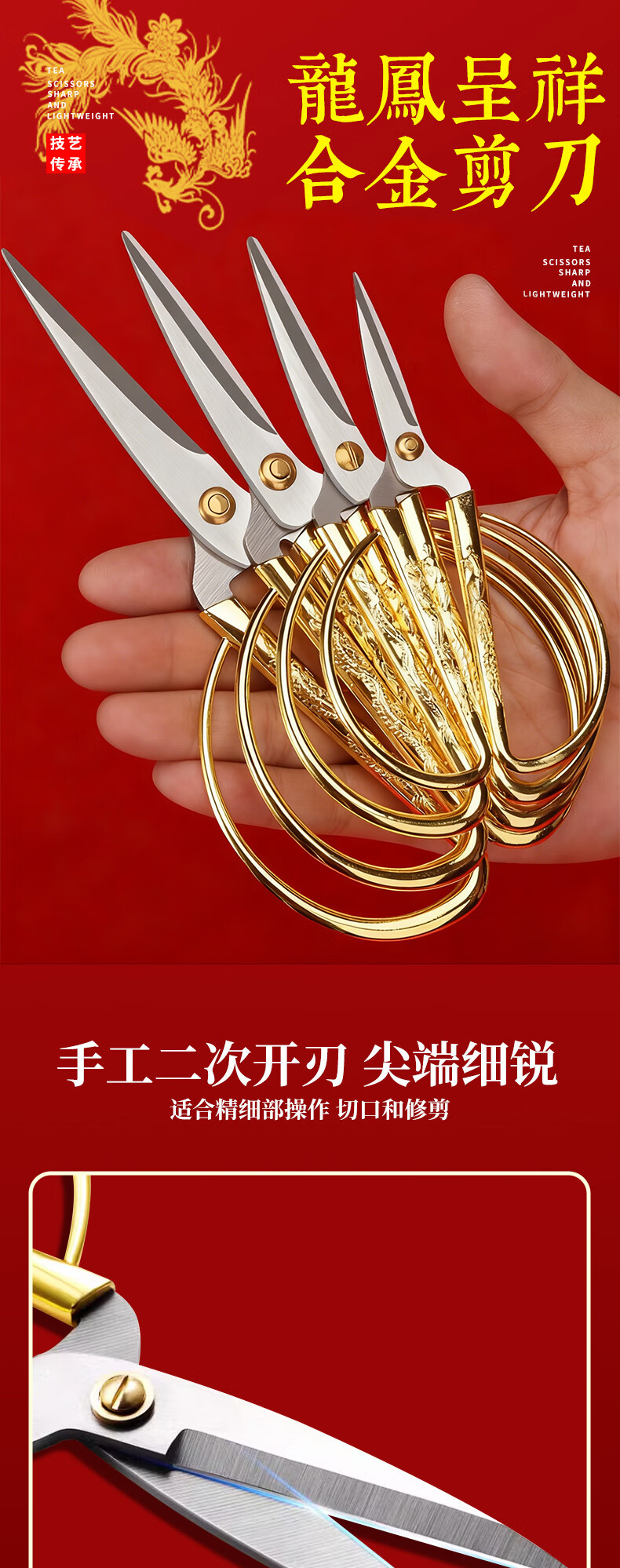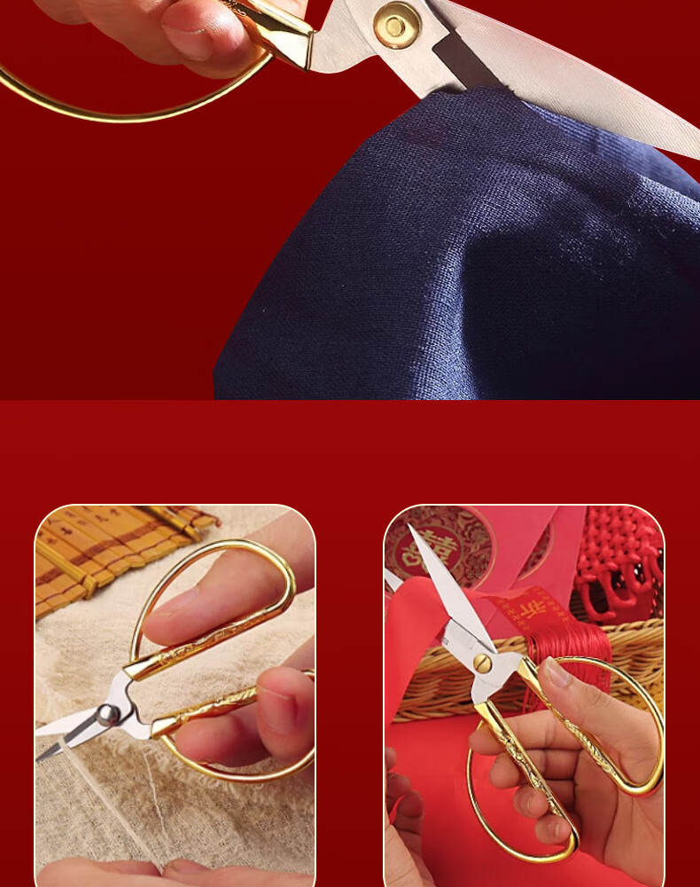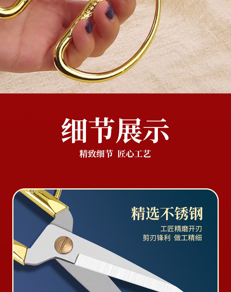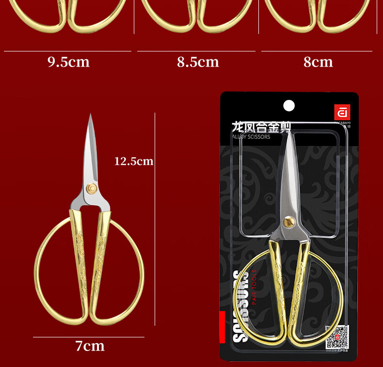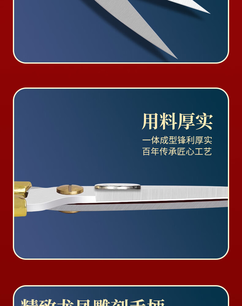 不锈钢龙凤剪刀家用缝纫裁缝复古小剪刀开业剪彩喜庆合金龙凤剪子 大号-龙凤剪