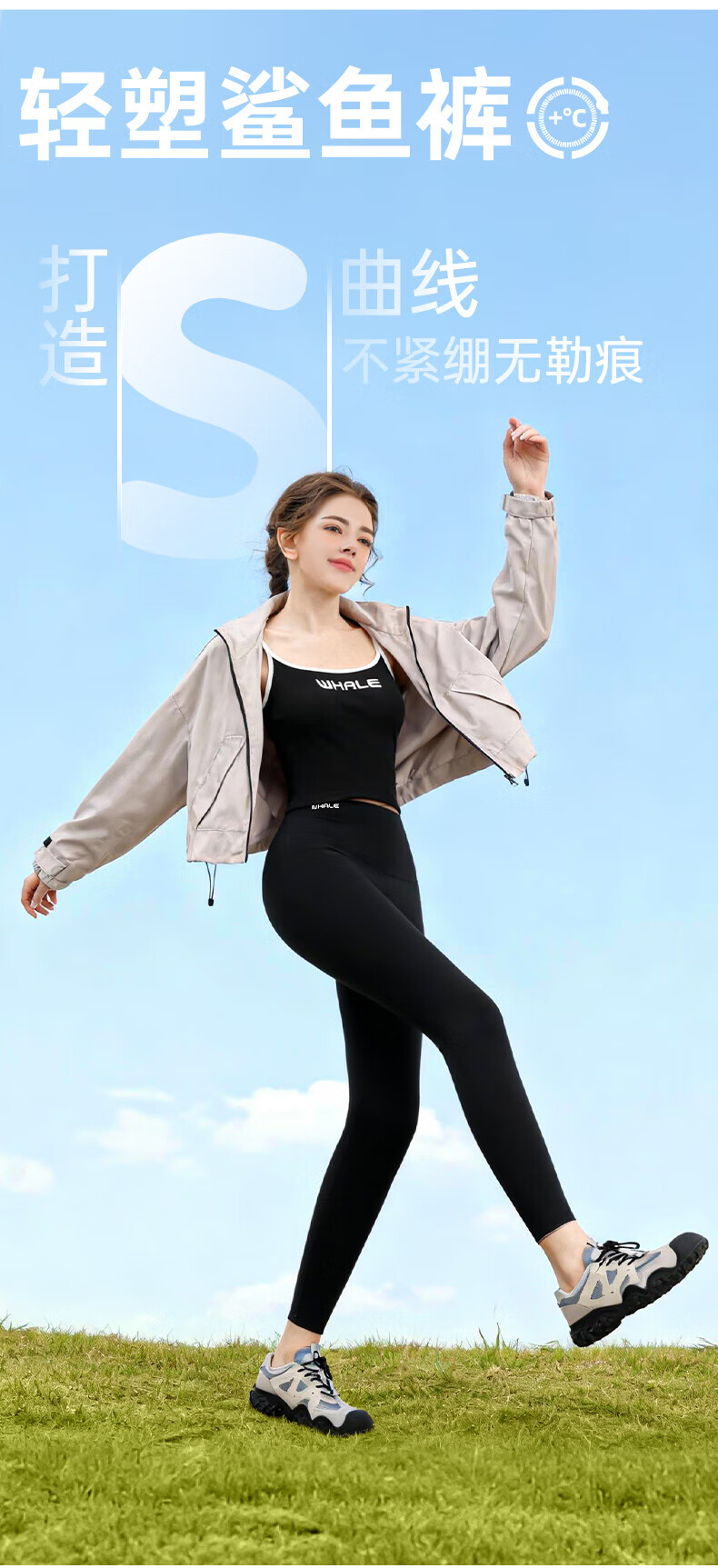 鲸鱼秋冬季厚款鲨鱼裤打底裤保暖瑜伽裤 运动休闲高弹紧身塑性提臀 女款打底裤-薄绒款 2XL