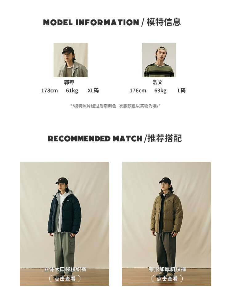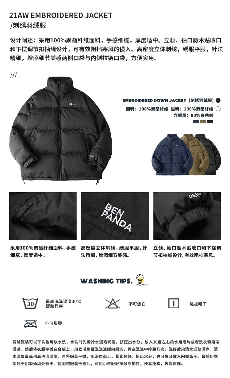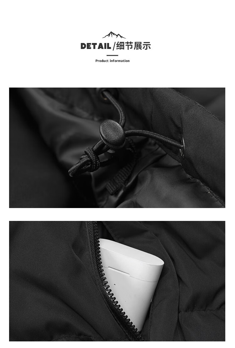 熊猫·本(ben.panda)工装羽绒服男潮流时尚立领加厚保暖户外休闲上衣多穿外套 黑色(防泼水面料) M