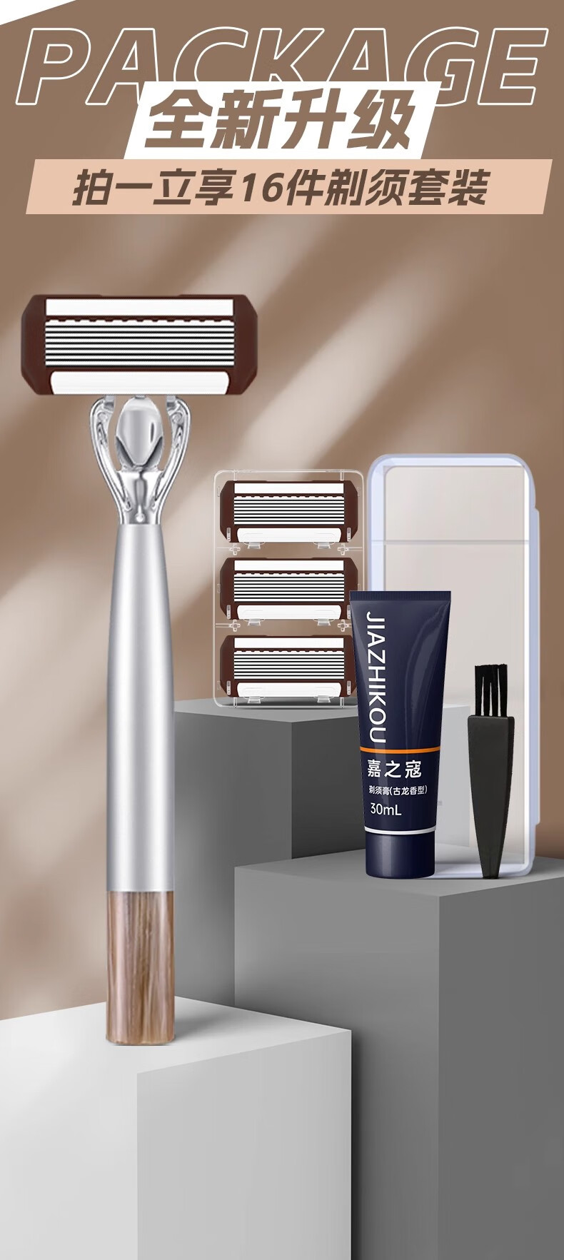 嘉之寇八层手动剃须刀进口加宽刀片防刮伤老式刮胡刀全新八层刀片原装新 18个刀头【没刀架】