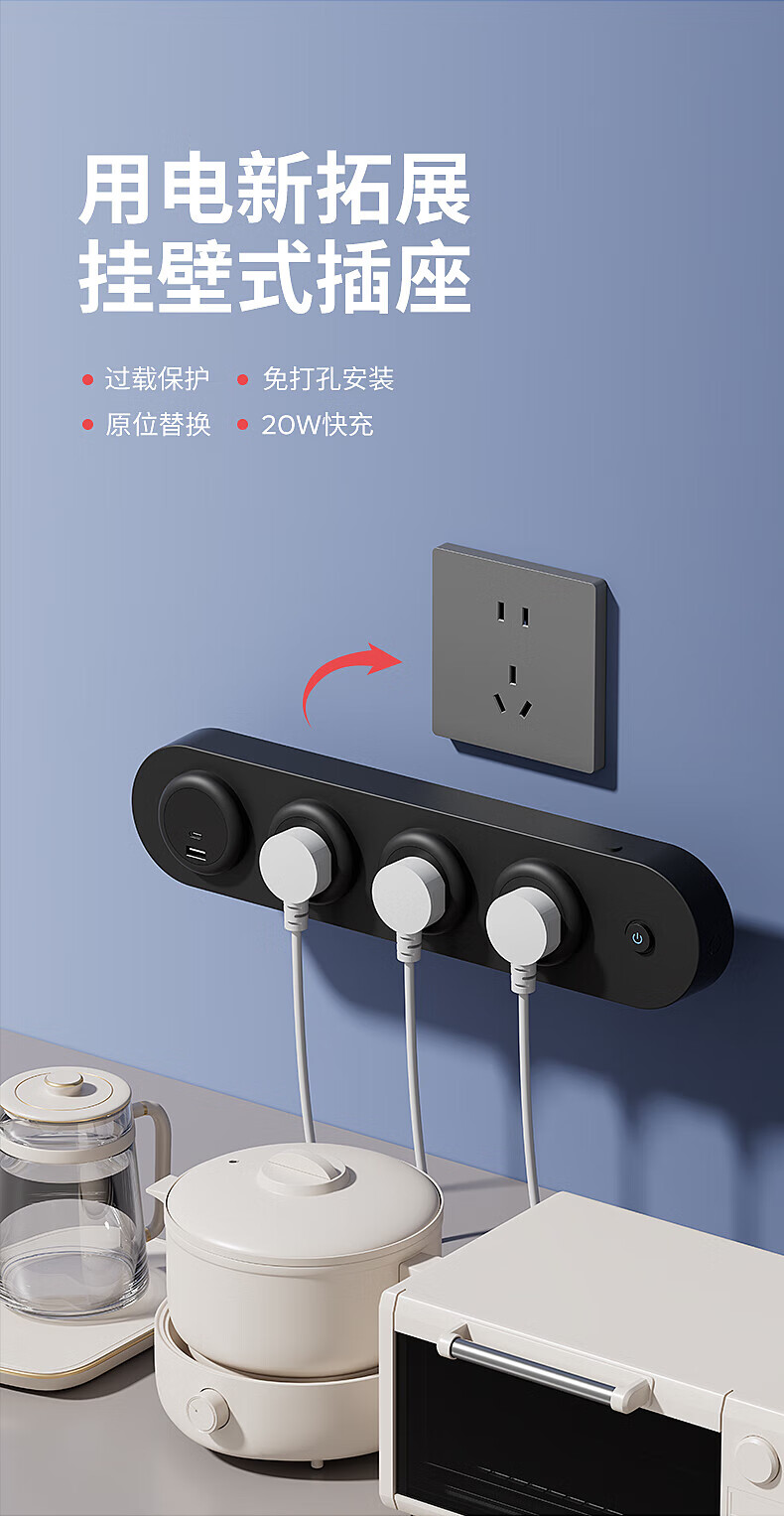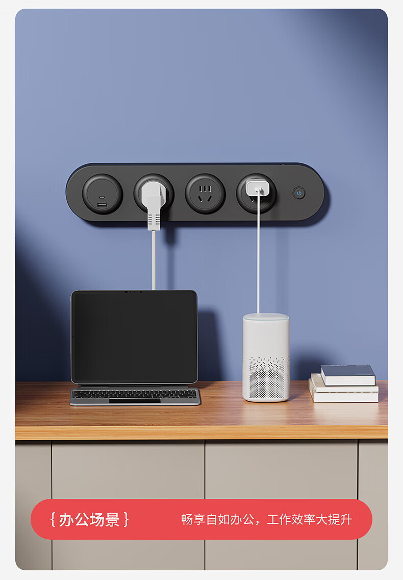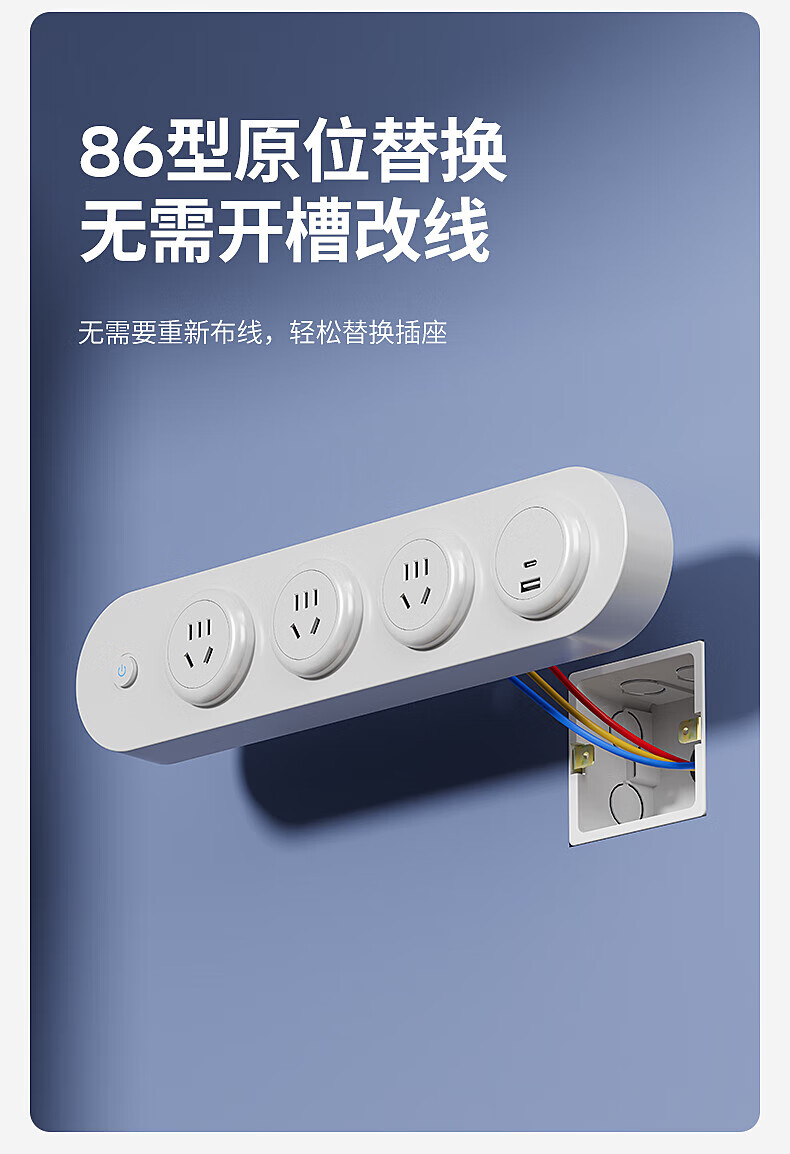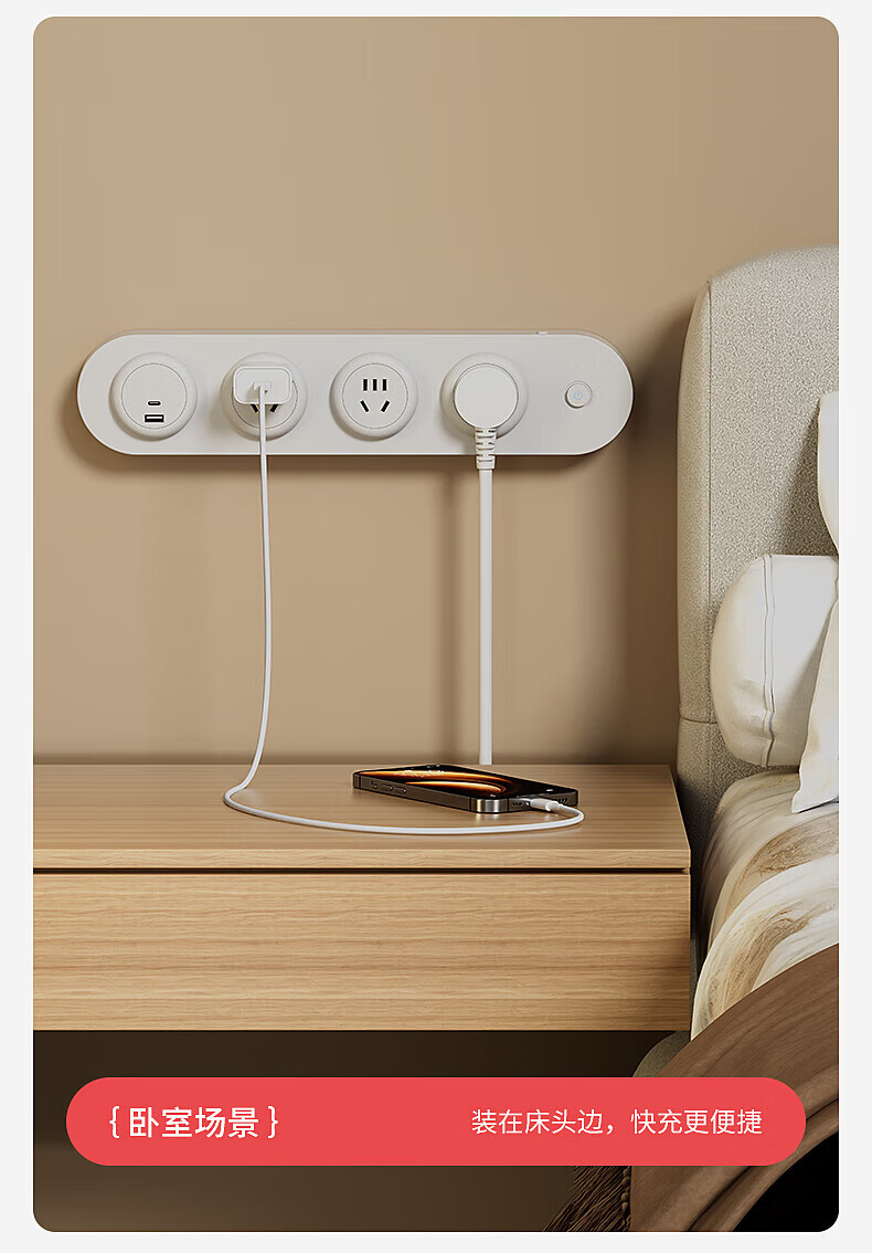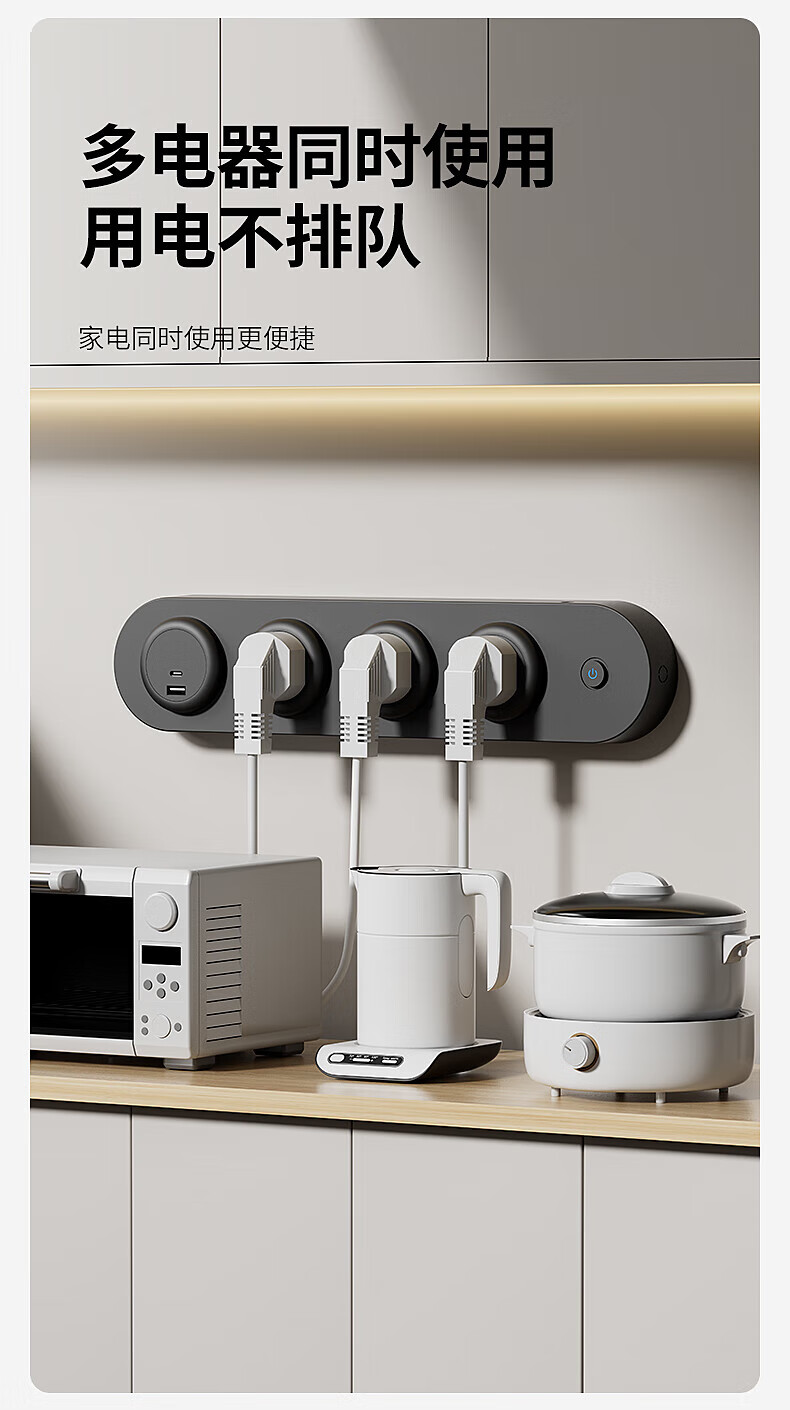 国际电工拓展扩展插座家用厨房挂壁式排插USB快充墙壁原位替换轨道插排 黑色四位五孔【一键控制】